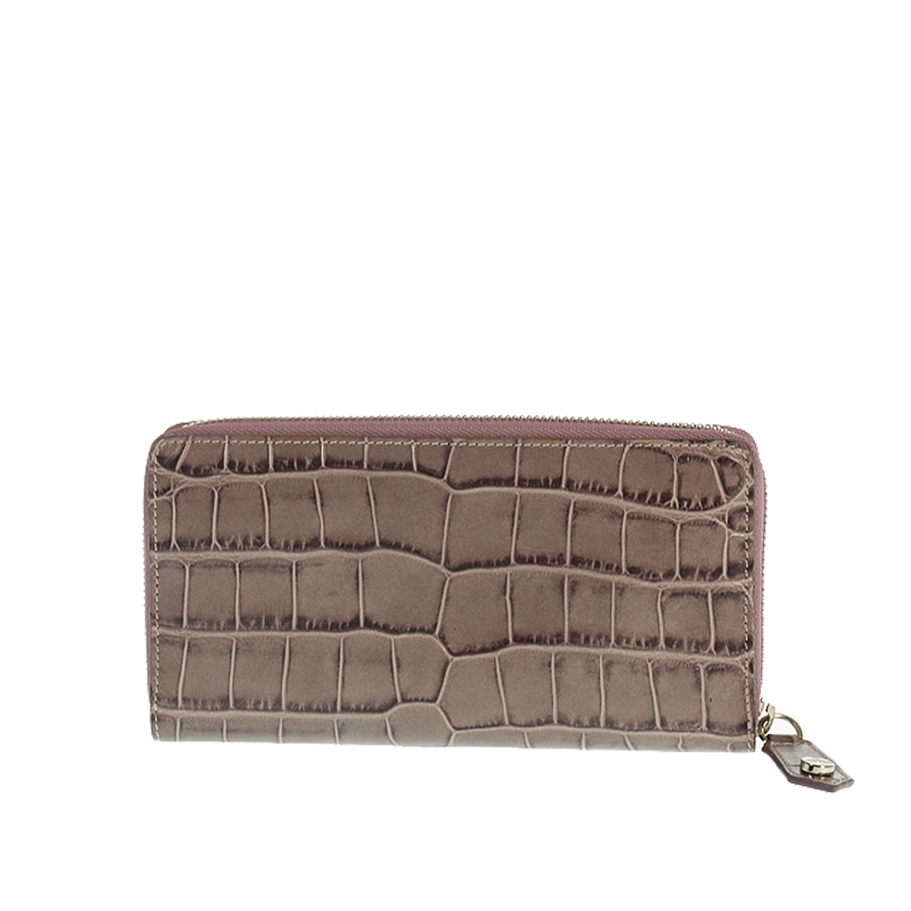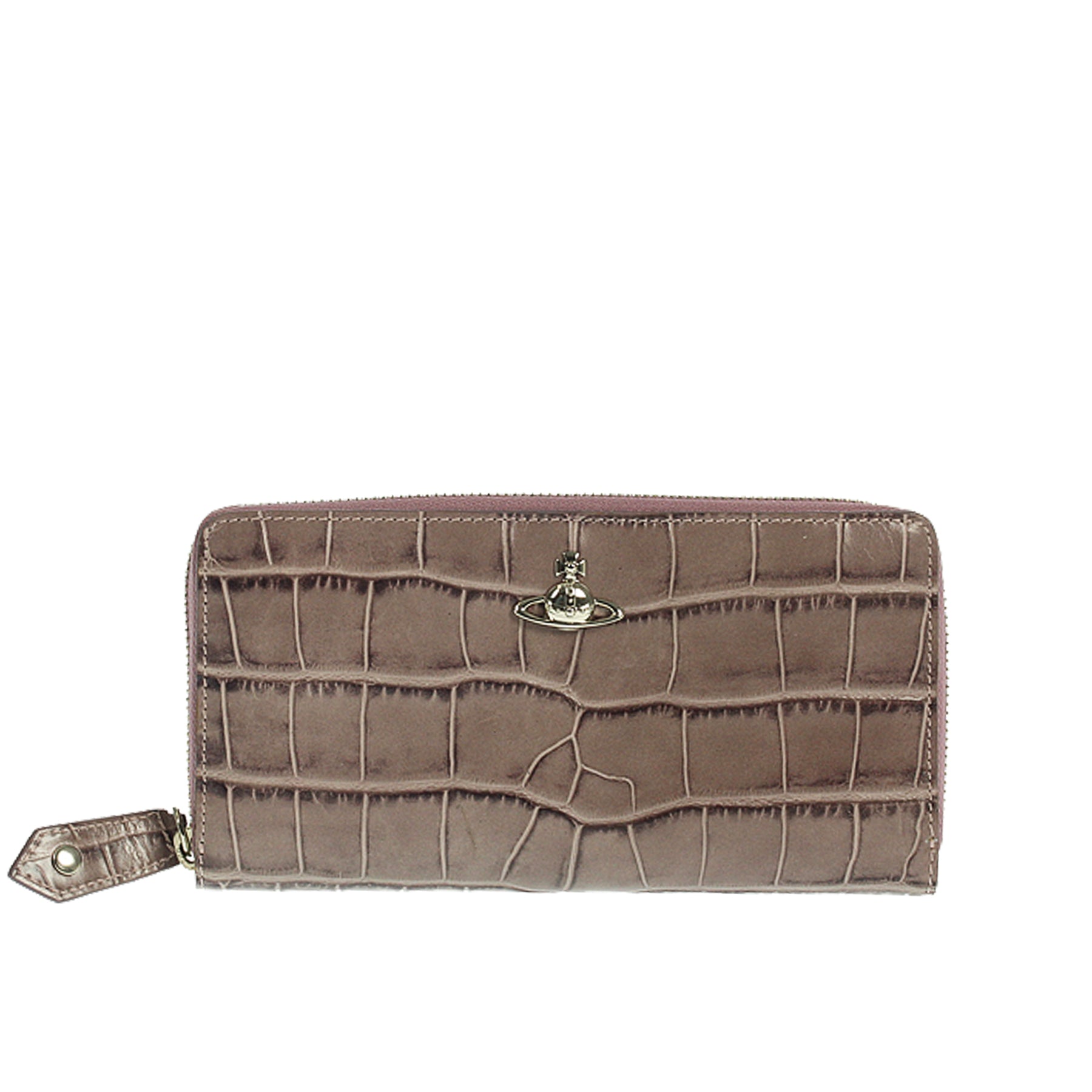 Portafoglio Vivienne Westwood, in pelle, effetto cocco, colore marrone, logo applicato, chiusura con cerniera, scomparti vari, tasca con cerniera, portadocumenti e portacarte, lunghezza cm 20, retail € 320,00