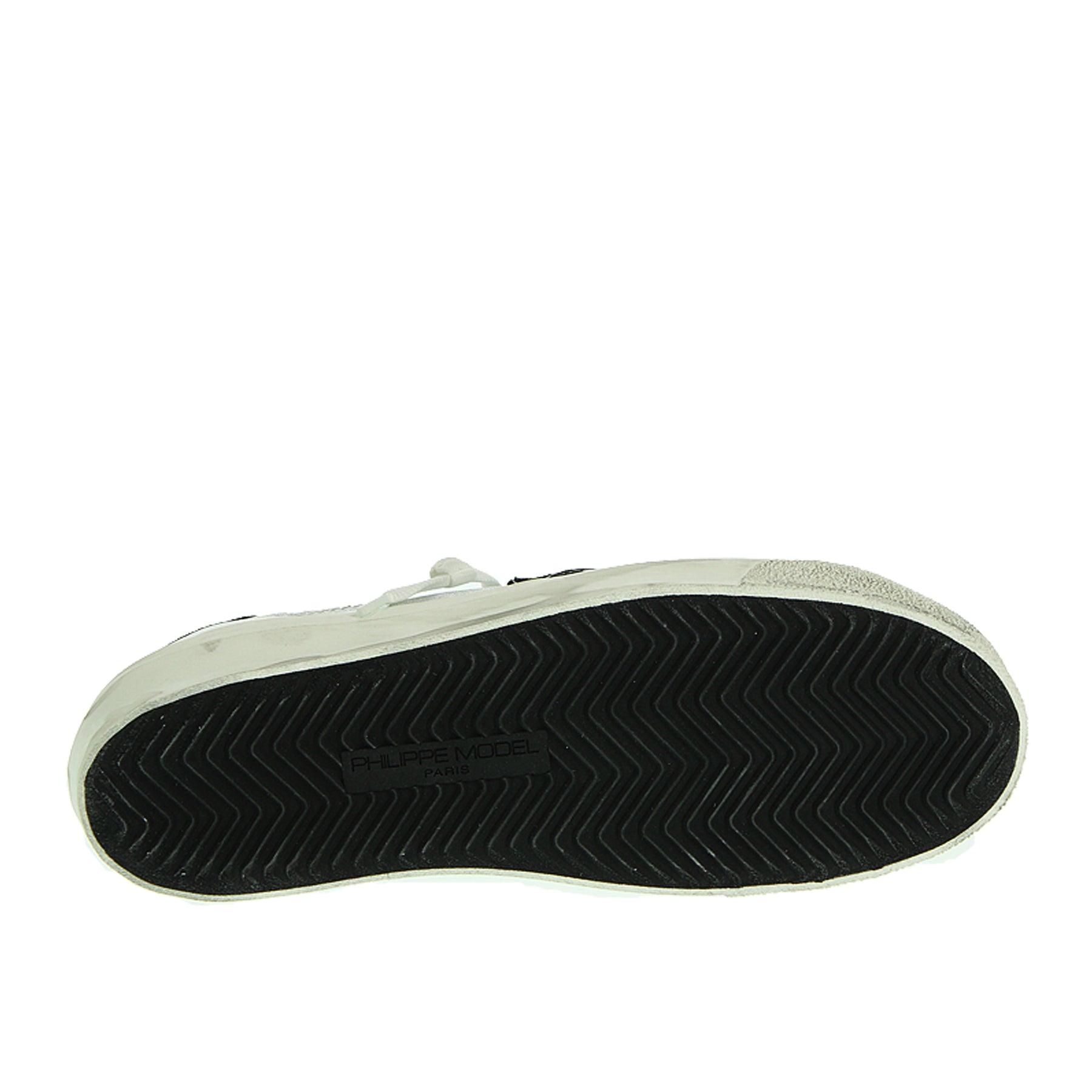 Philippe Model sneakers, in metallic effect leather, silver, worn effect, with high sole, rubber sole