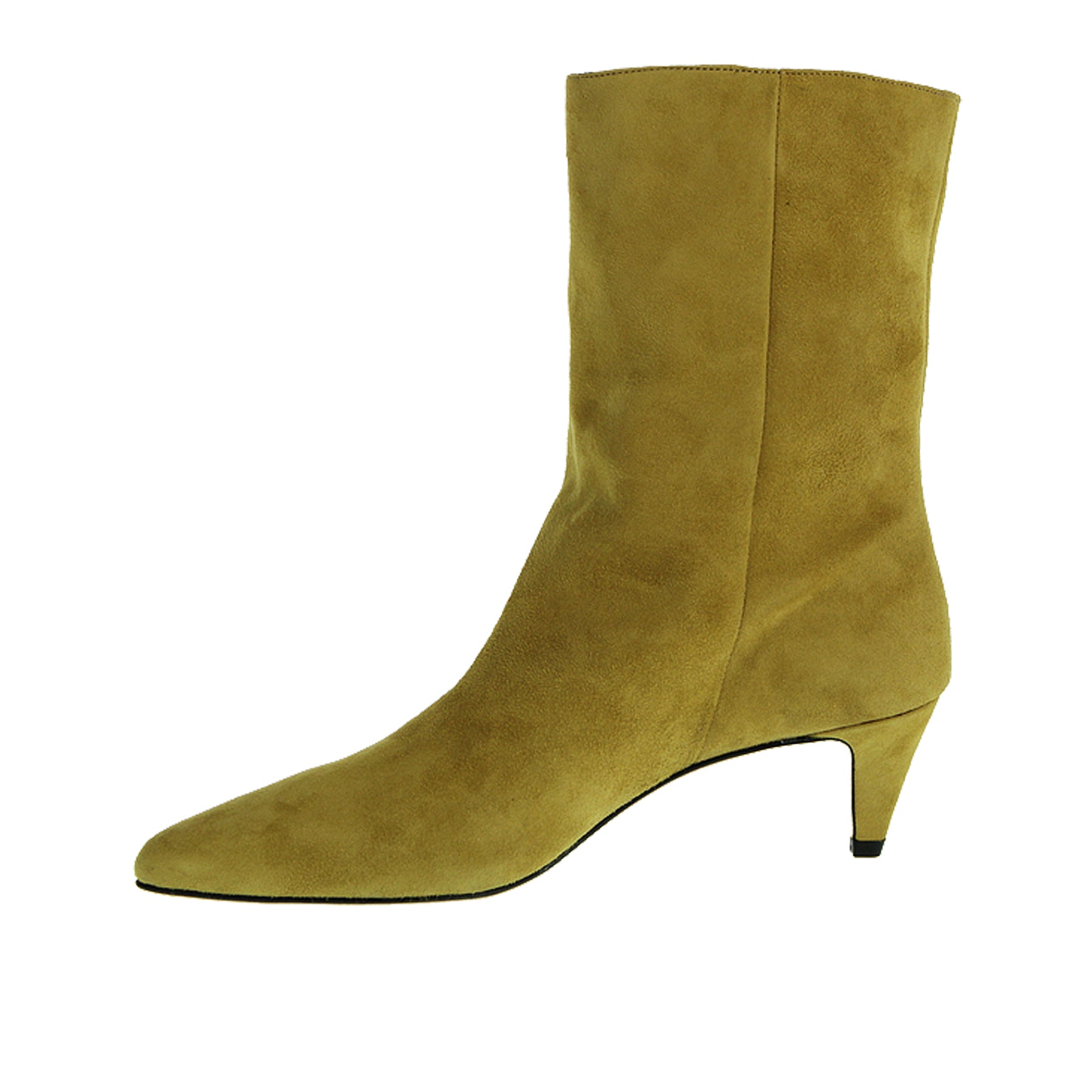 By Far ankle boot, in suede, yellow color, pointed toe, leather sole, heel height 6 cm