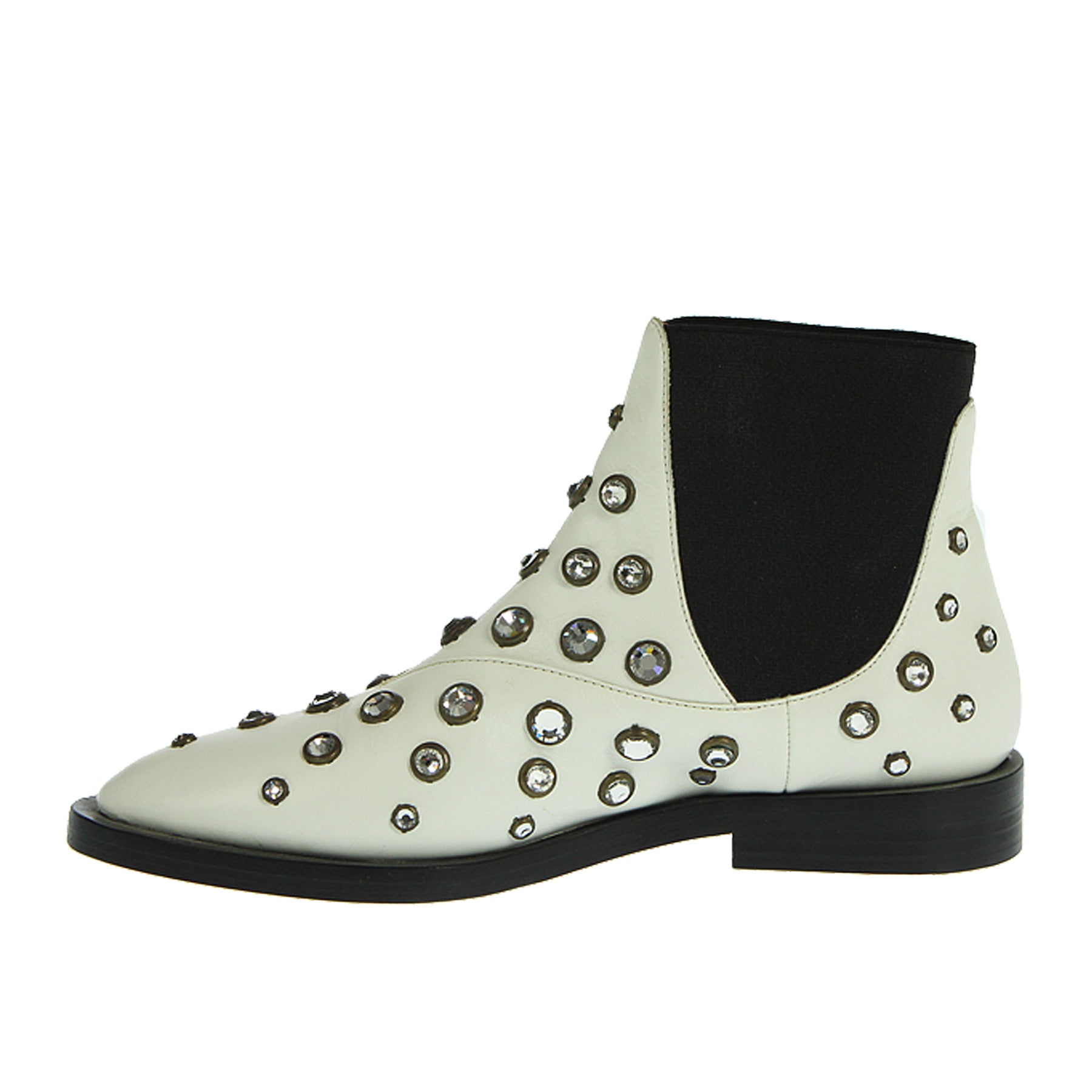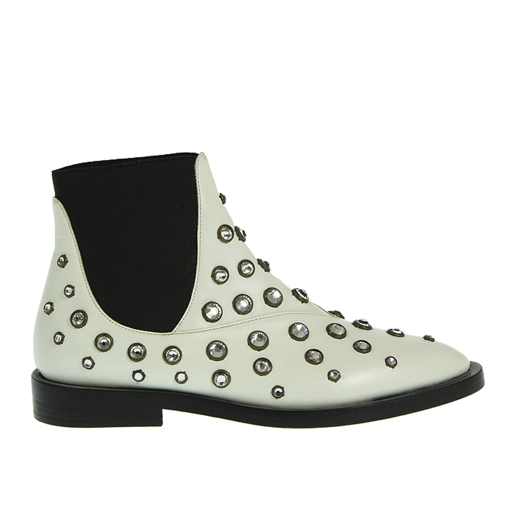 Tronchetto Samuele Failli, in pelle, colore bianco, con strass applicati allover, con bande elastiche laterali