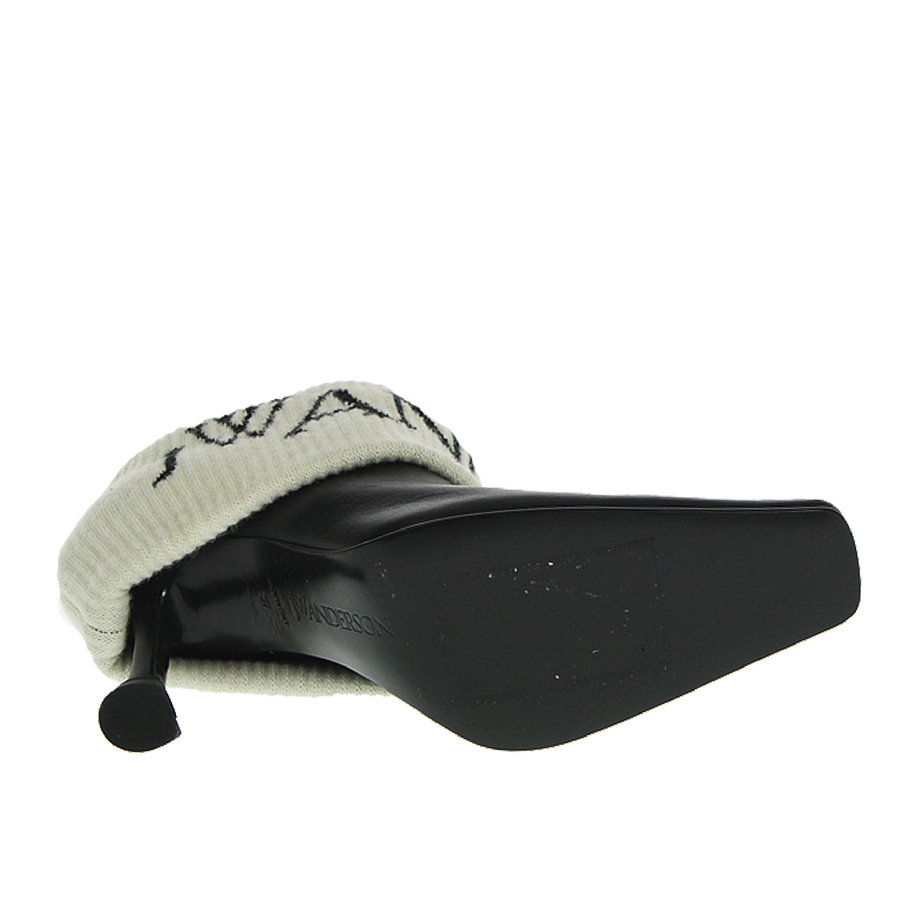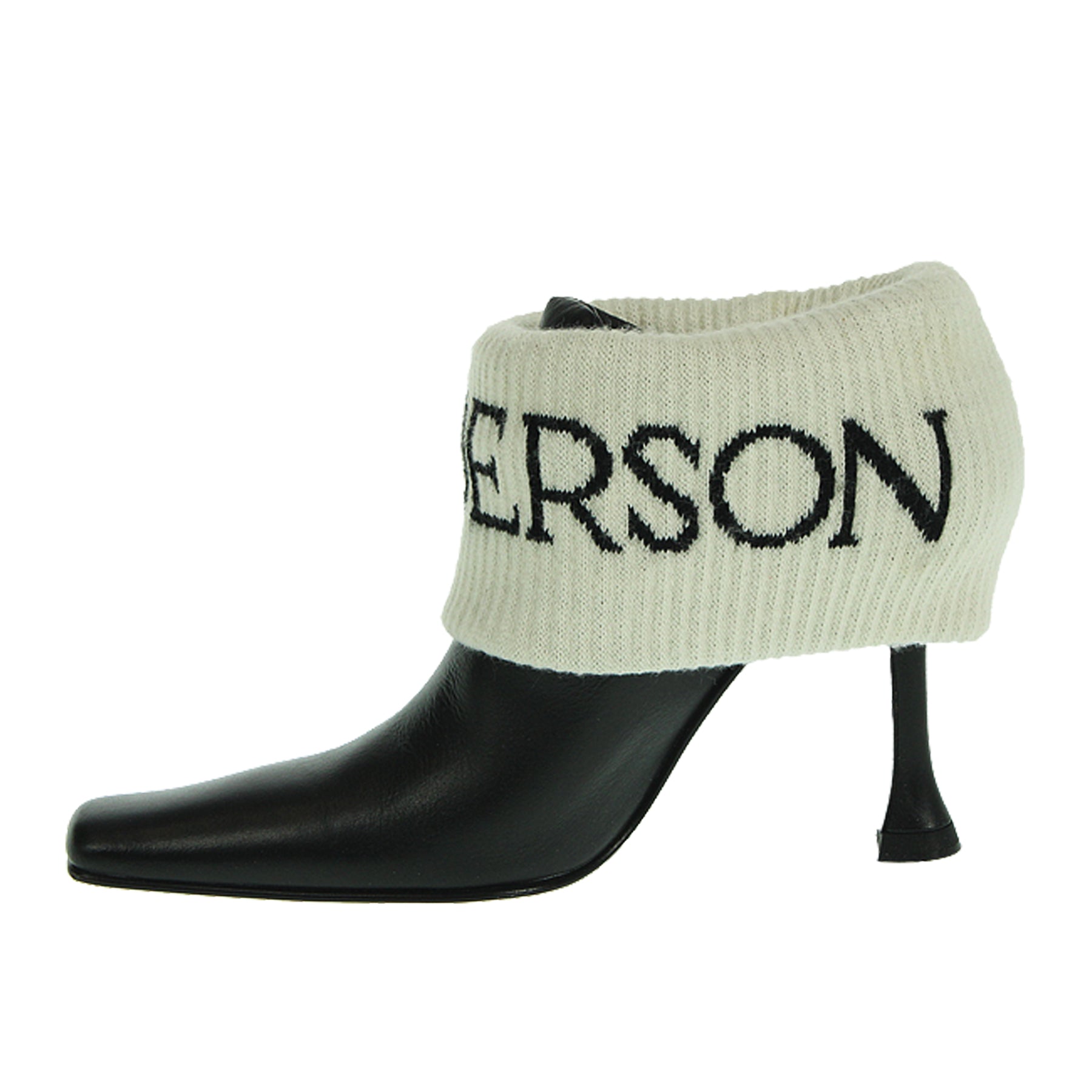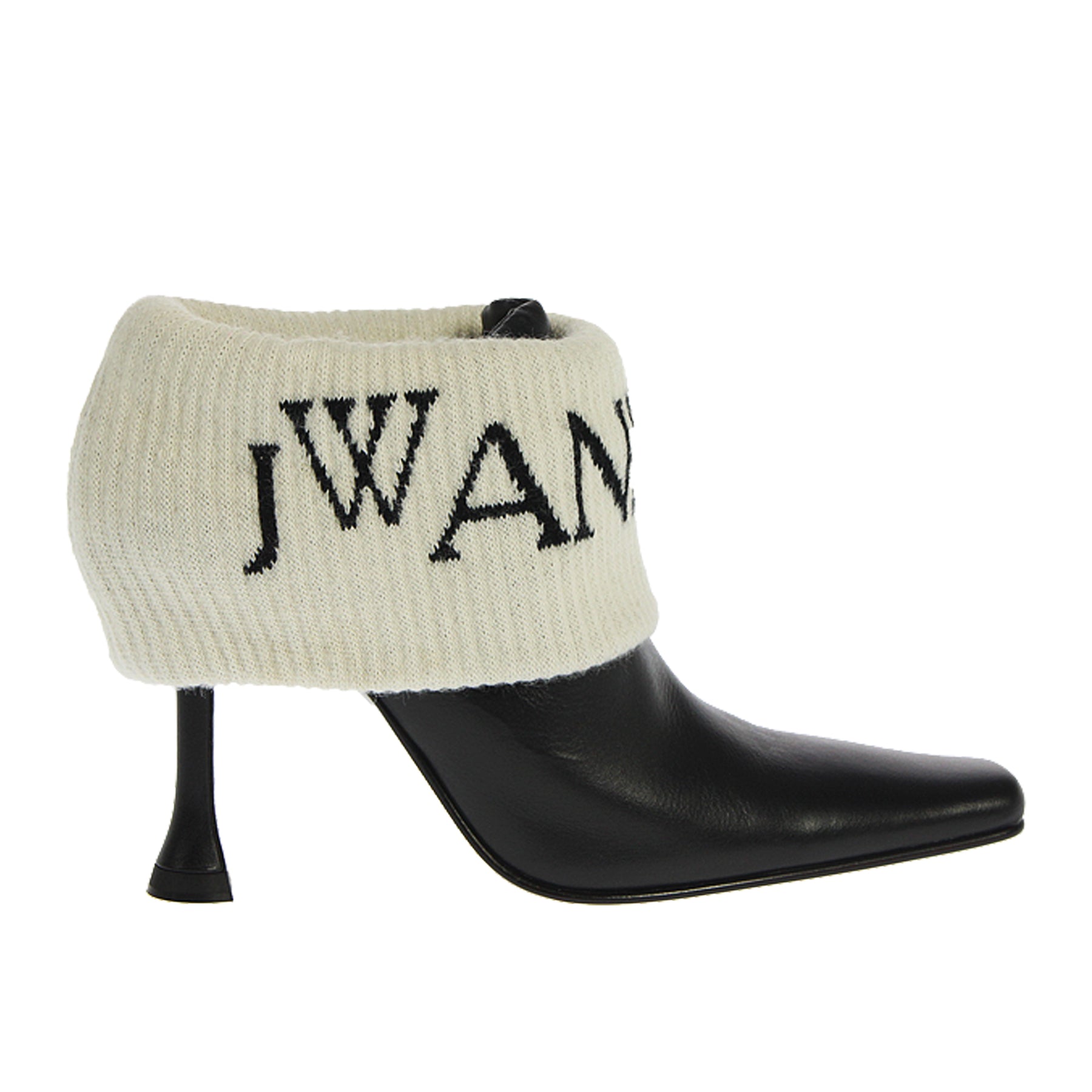 Tronchetto JW Anderson, in pelle, colore nero, con bordo ripiegato in lana, con logo, altezzatacco 10 cm, suola in cuoio