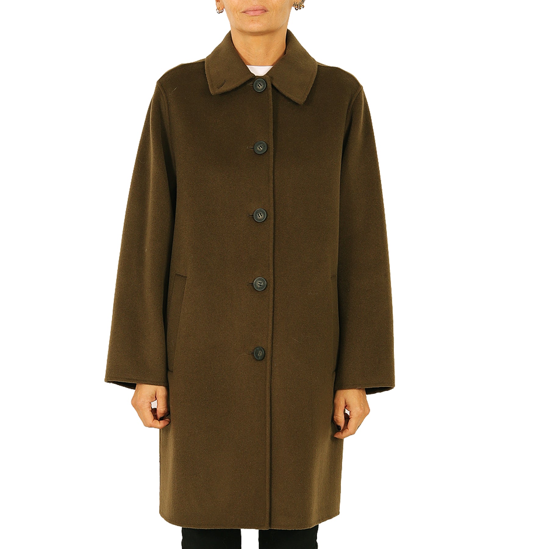 Cappotto Vanessa Bruno, verde militare, con tasche, in misto lana, chiusura con bottoni