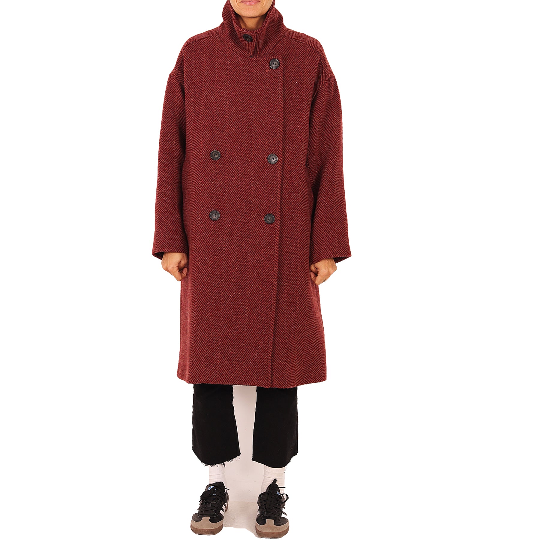 Cappotto Vanessa Bruno, spigato, colore bordeaux, a doppiopetto, con tasche, in misto lana