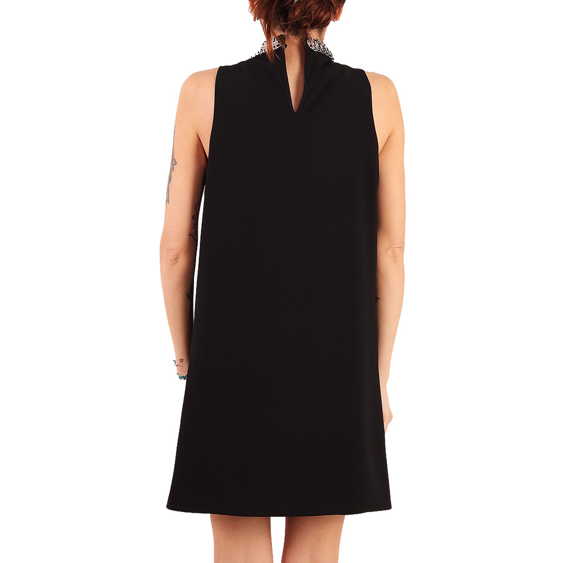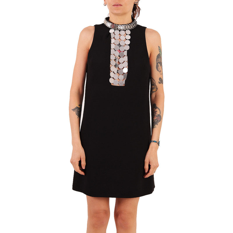 Dress, Amen, black, with mirror applications on the front, sleeveless, with buttons on the back and side zip, lined.