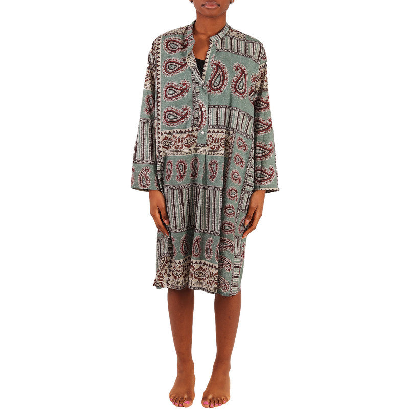 Diega dress, patterned, aqua green, in cotton, V-neck, with pockets.