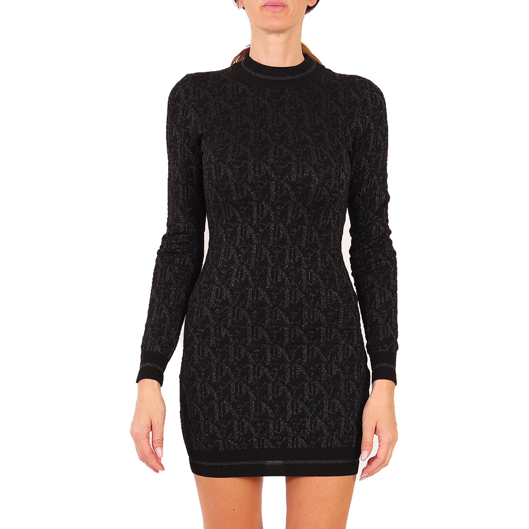 Palm Angels dress, black, long sleeves, with all-over logo, lurex inserts
