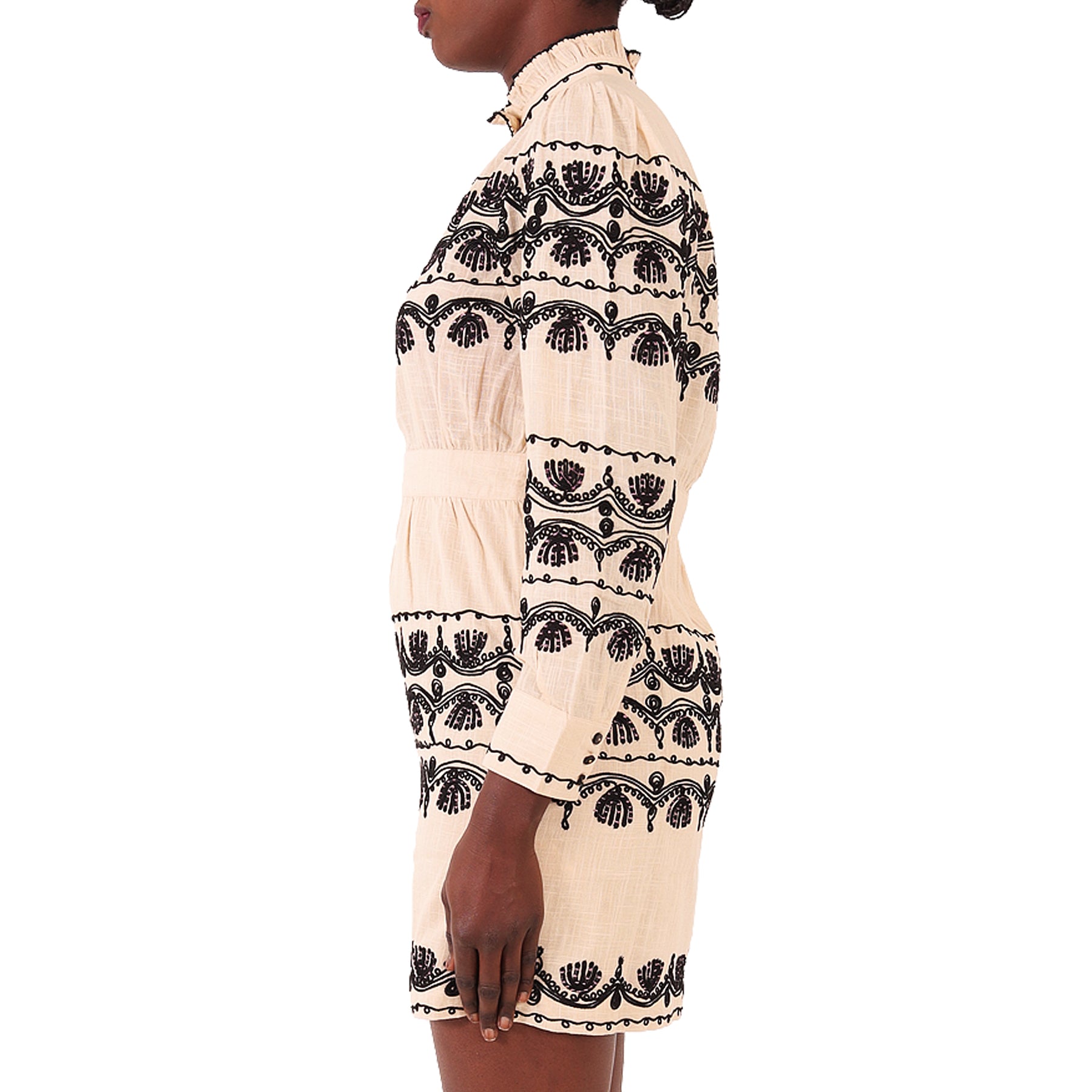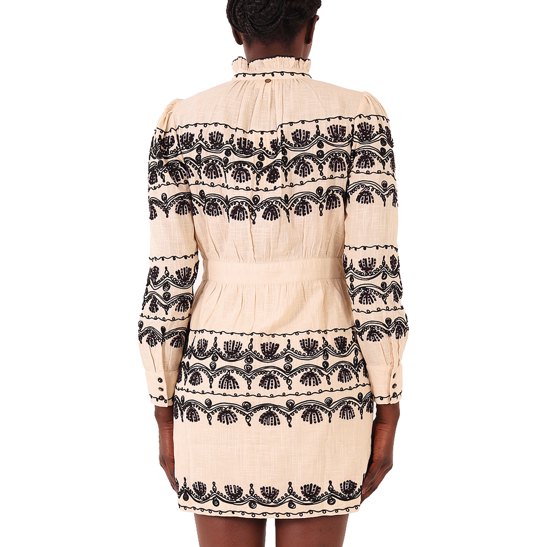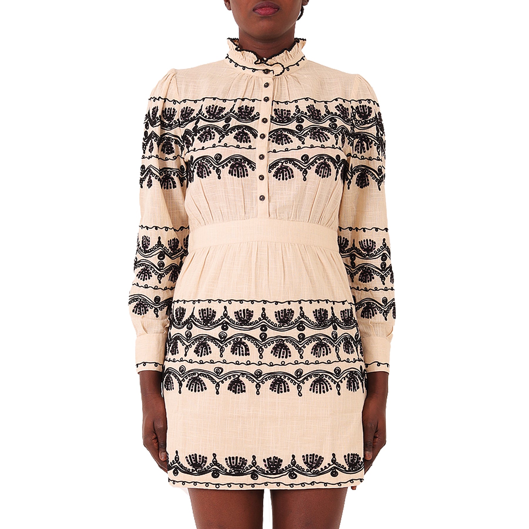 Antik Batik dress, cream, with black embroidery, with collar, lined skirt, with buttons, long sleeves