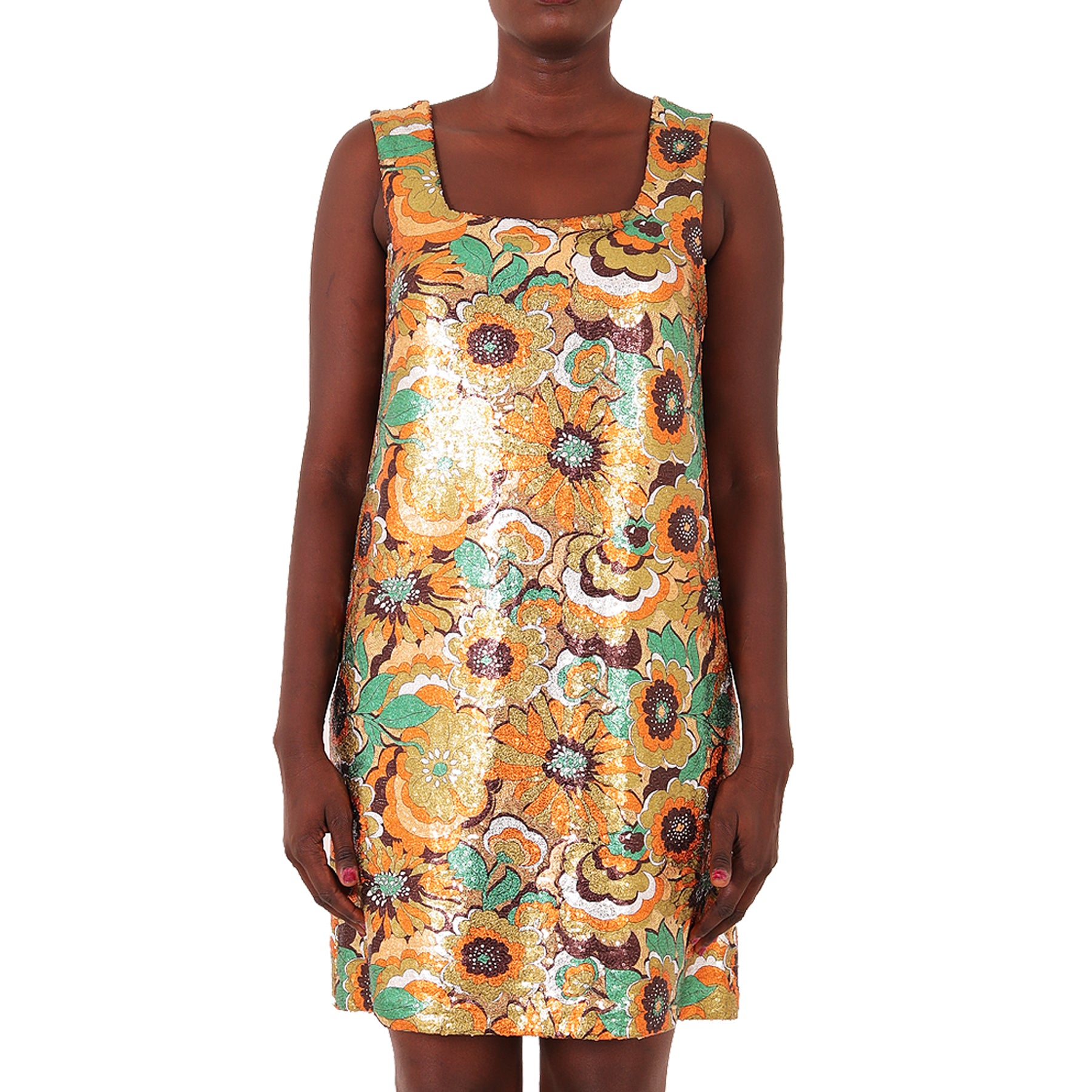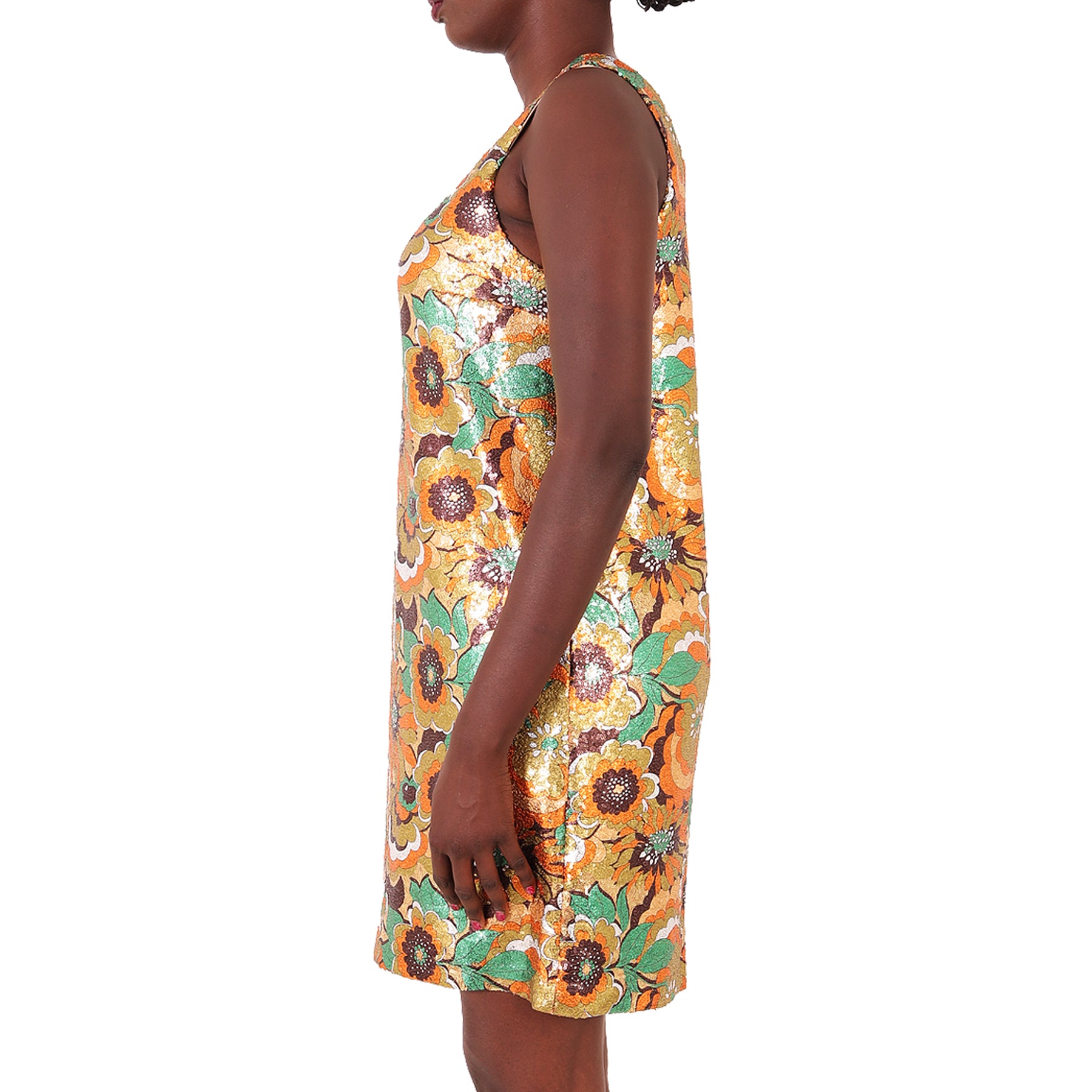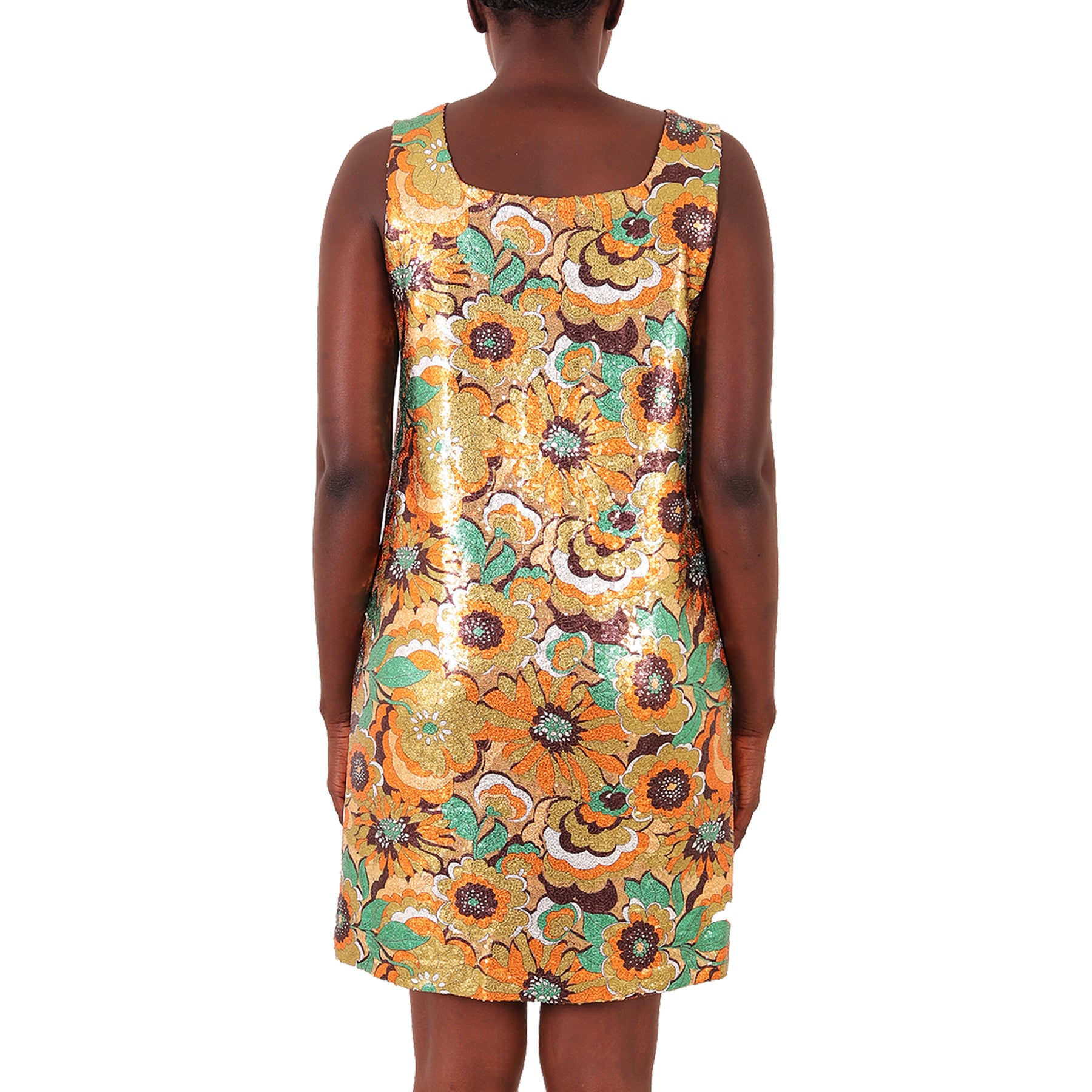 Manoush sequin dress with floral pattern, sleeveless, side zip, lined