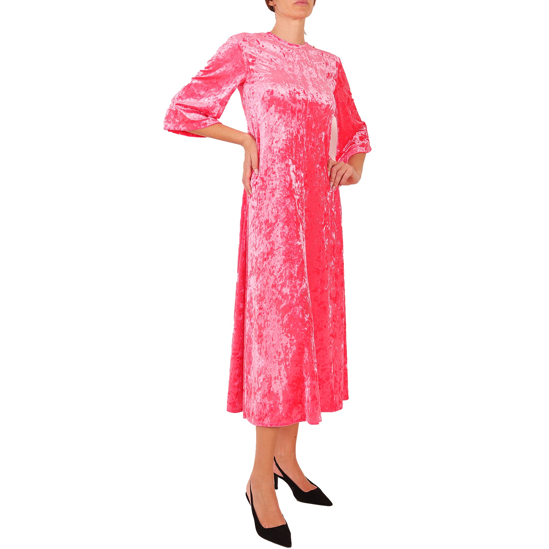Forte Forte dress, in velvet, pink, with long sleeves and a crew neck