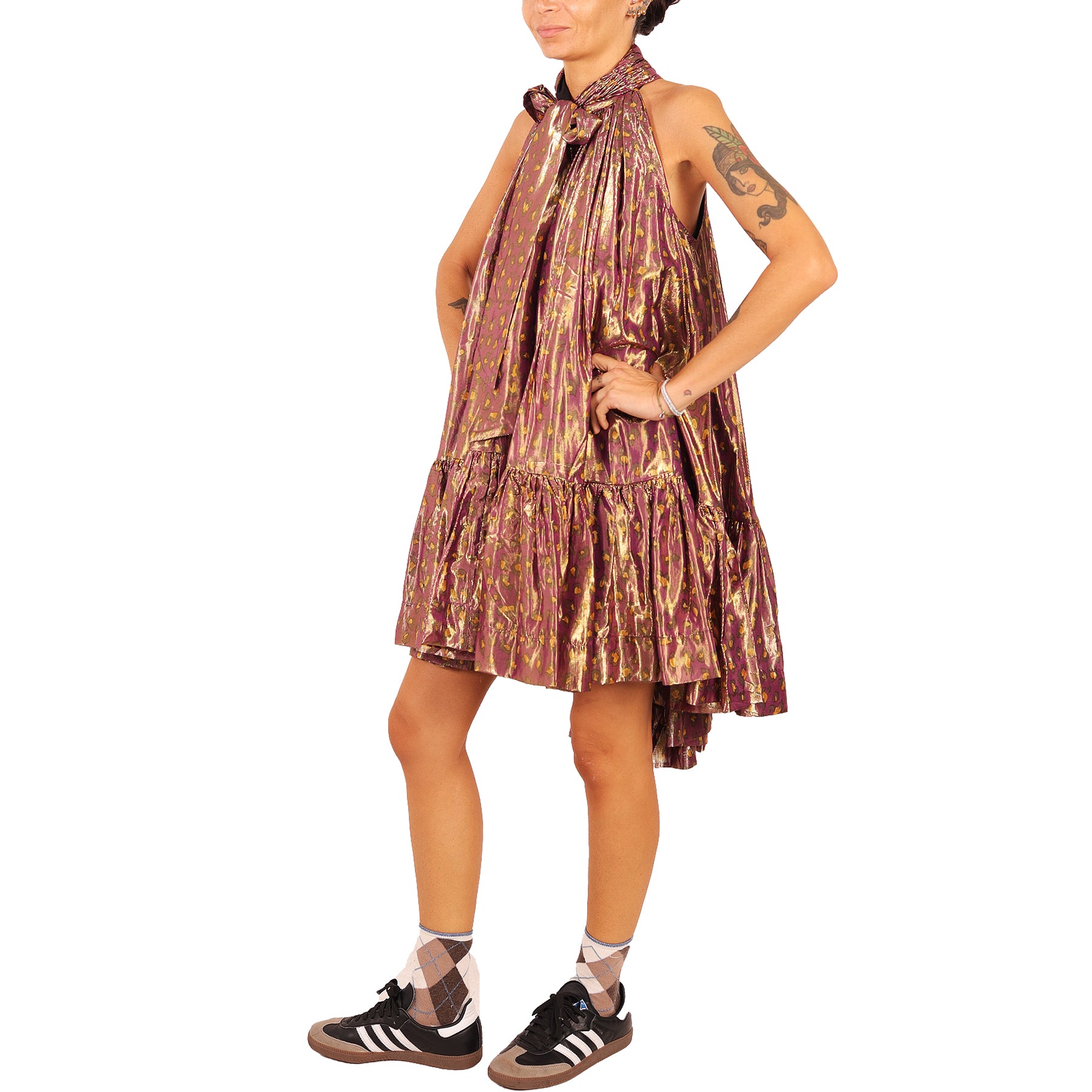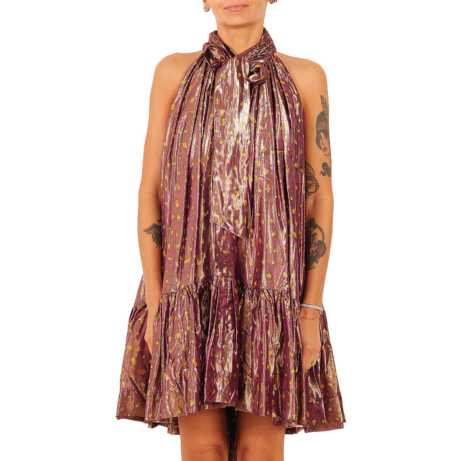 Abito lungo Mes Demoiselles, viola, a fantasia, senza maniche, allacciato al collo