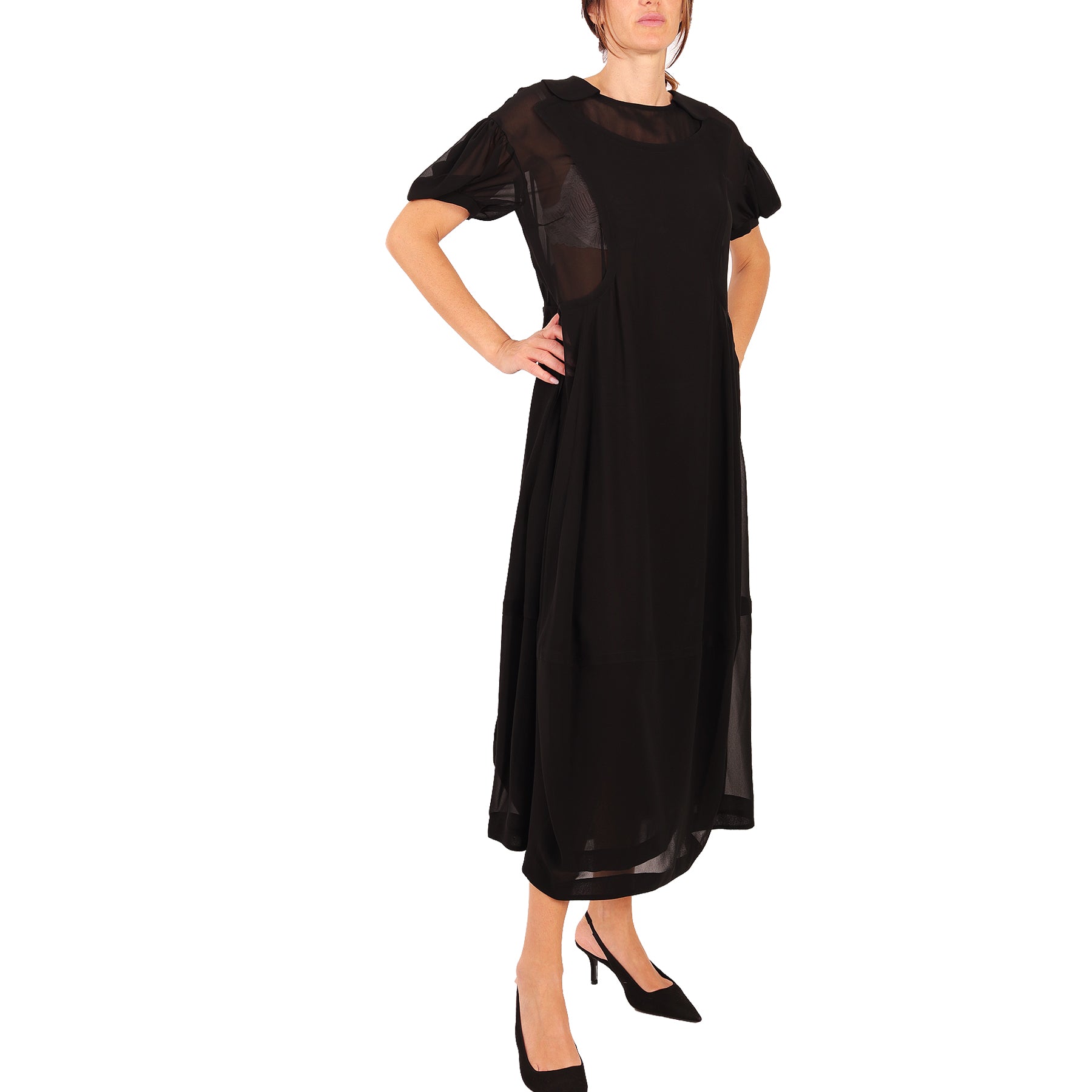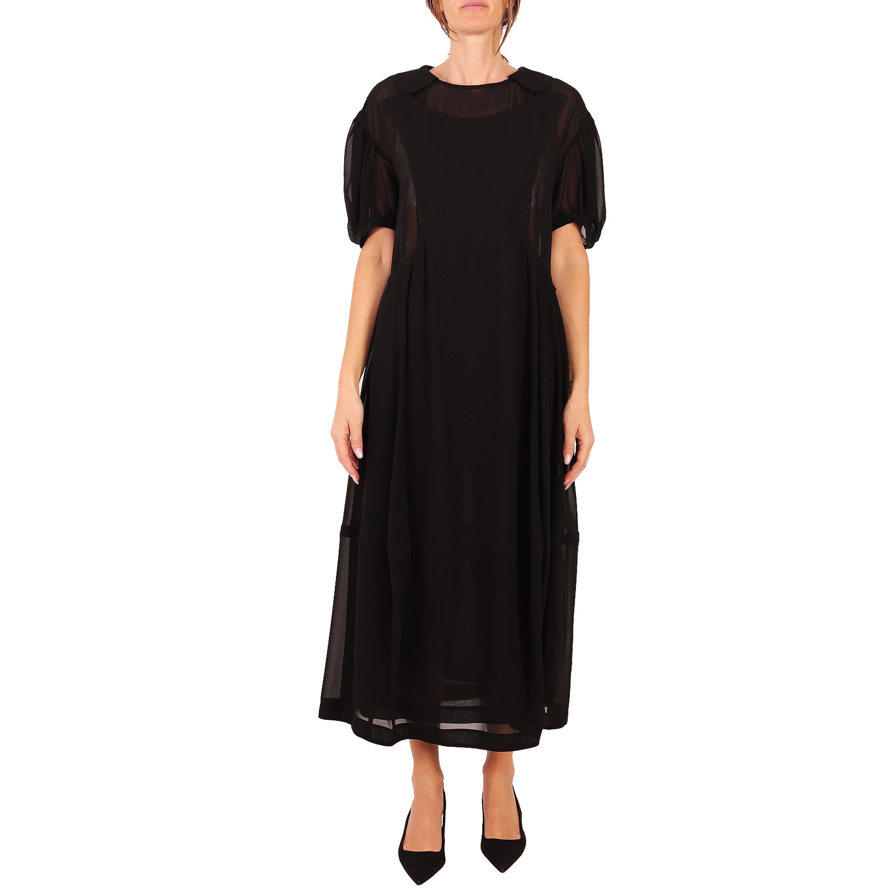 Comme des Garçons dress, in polyester, black, short puff sleeves, full skirt, zip fastening on the back