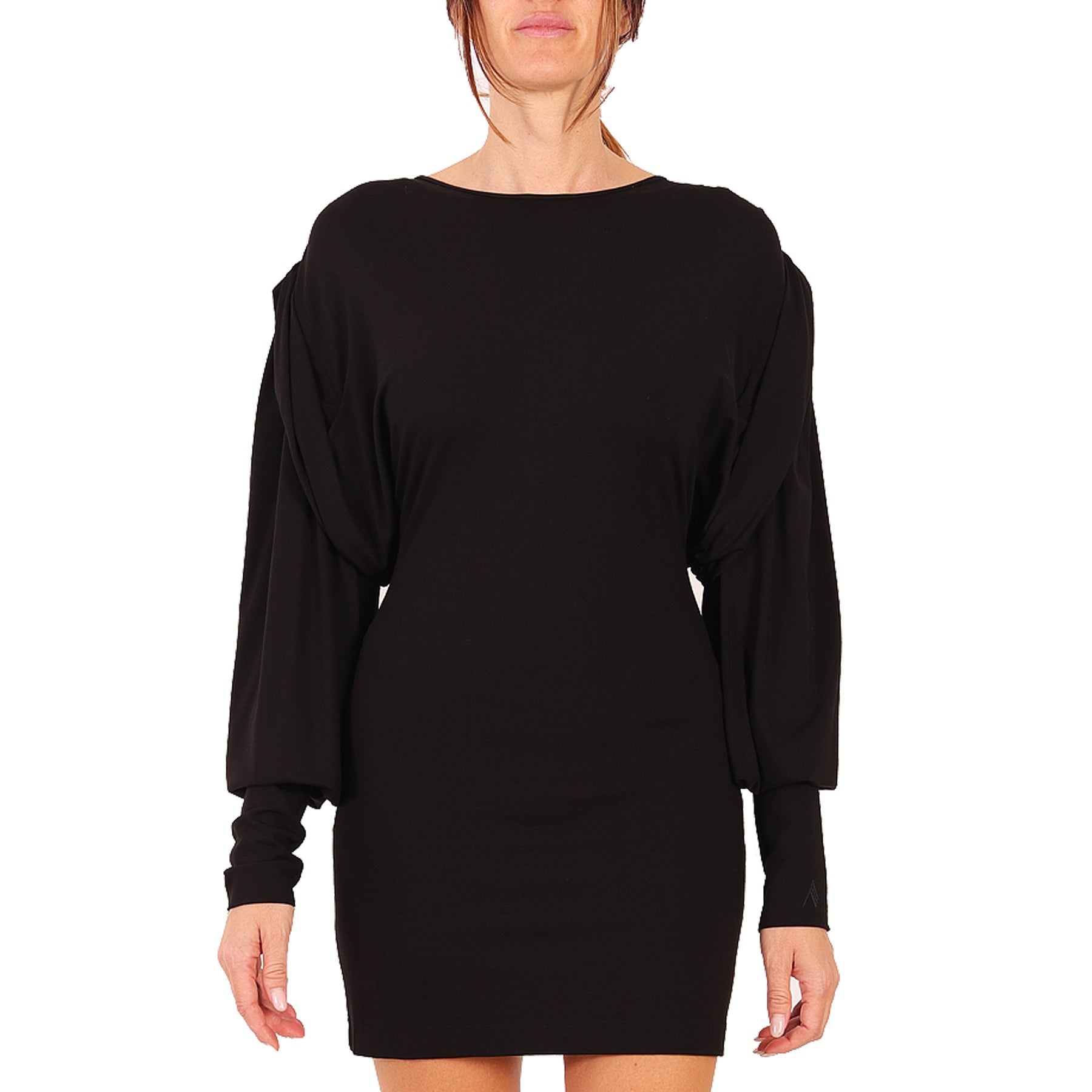 The Attico dress, in polyester, black, batwing sleeves, zip closure on the back