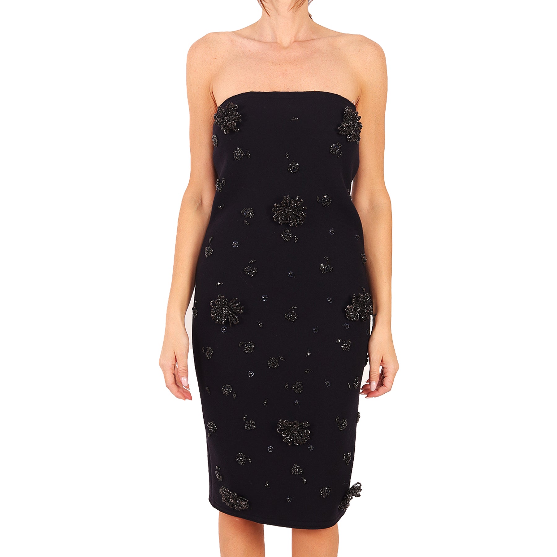 Dress No. 21, in wool, with rhinestone embroidery, black color, strapless