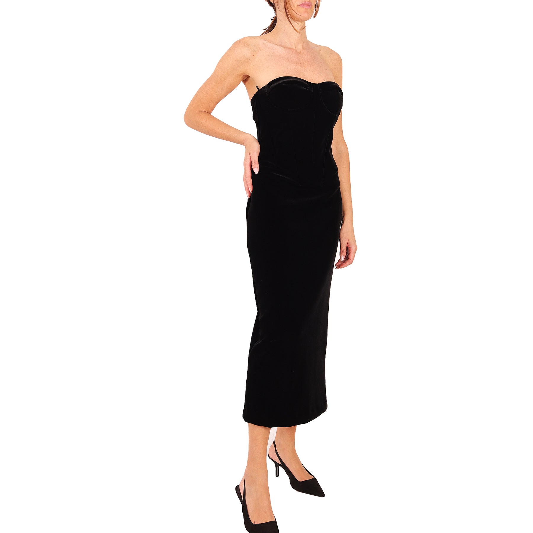 Sportmax dress, in velvet and polyester, black, strapless, sweetheart neckline