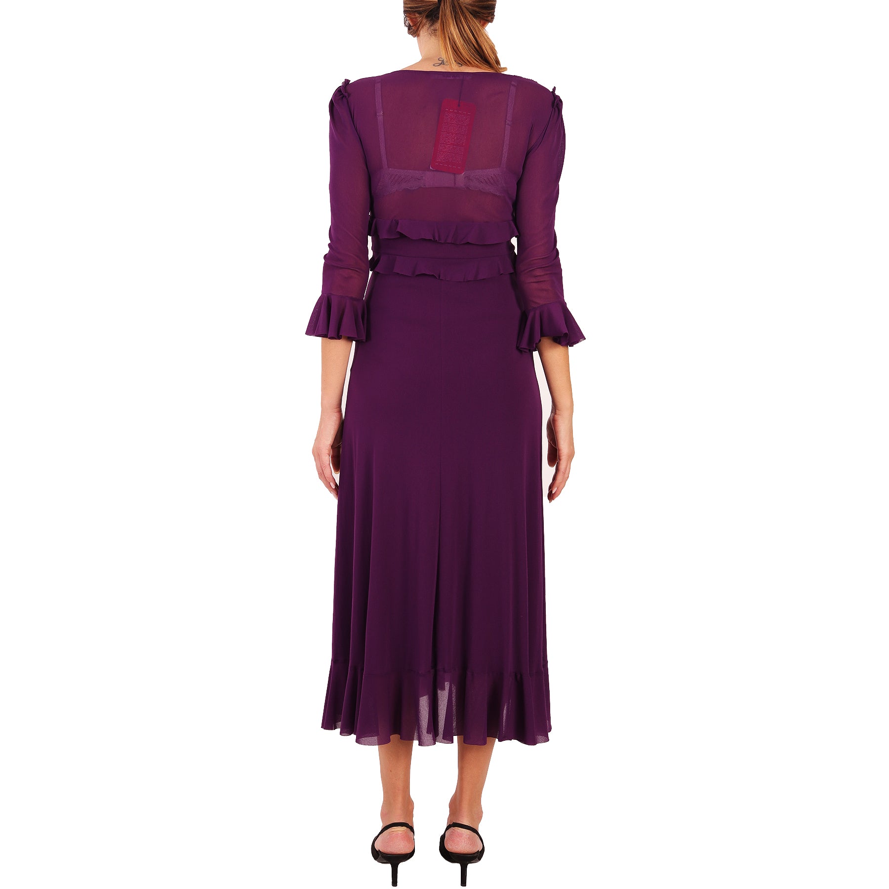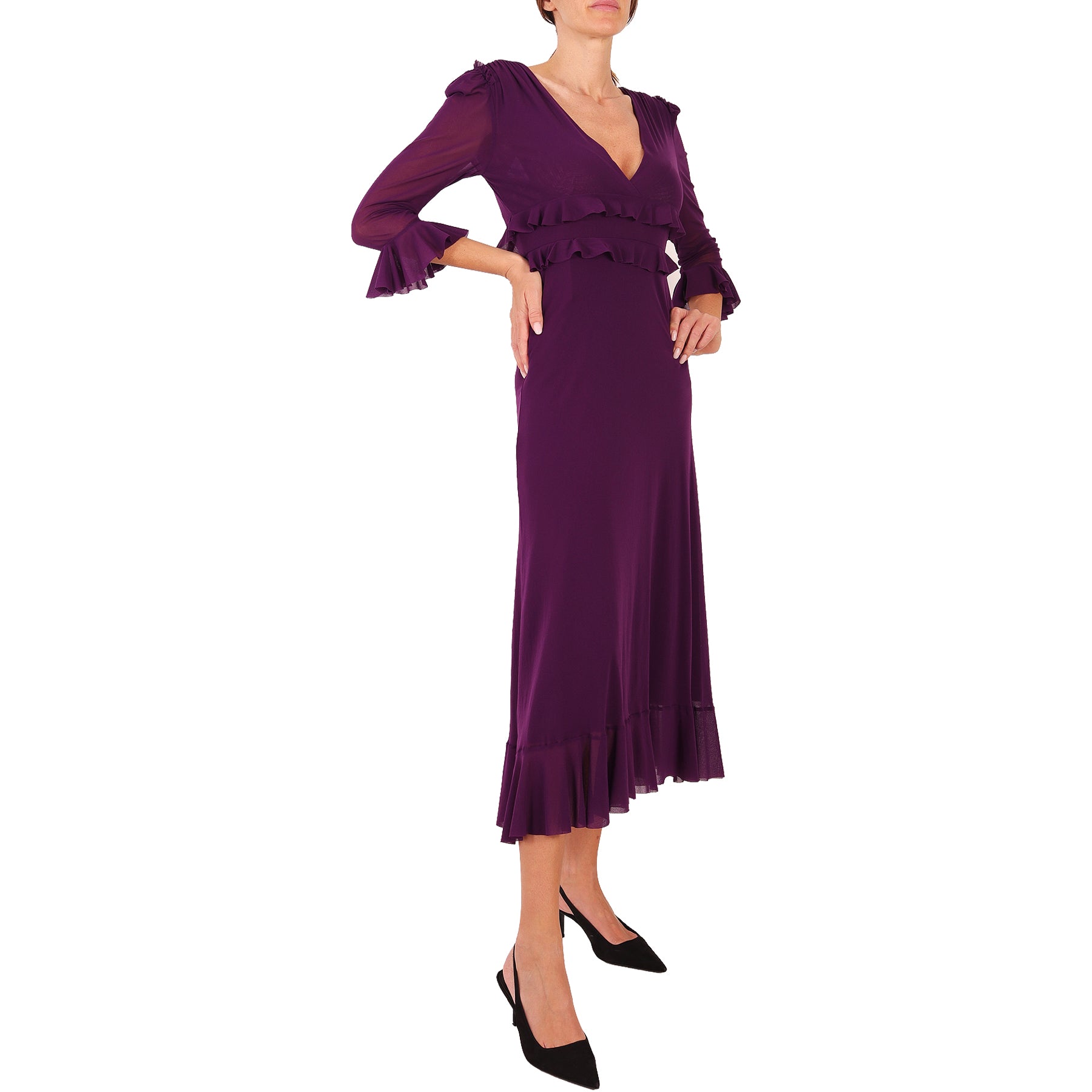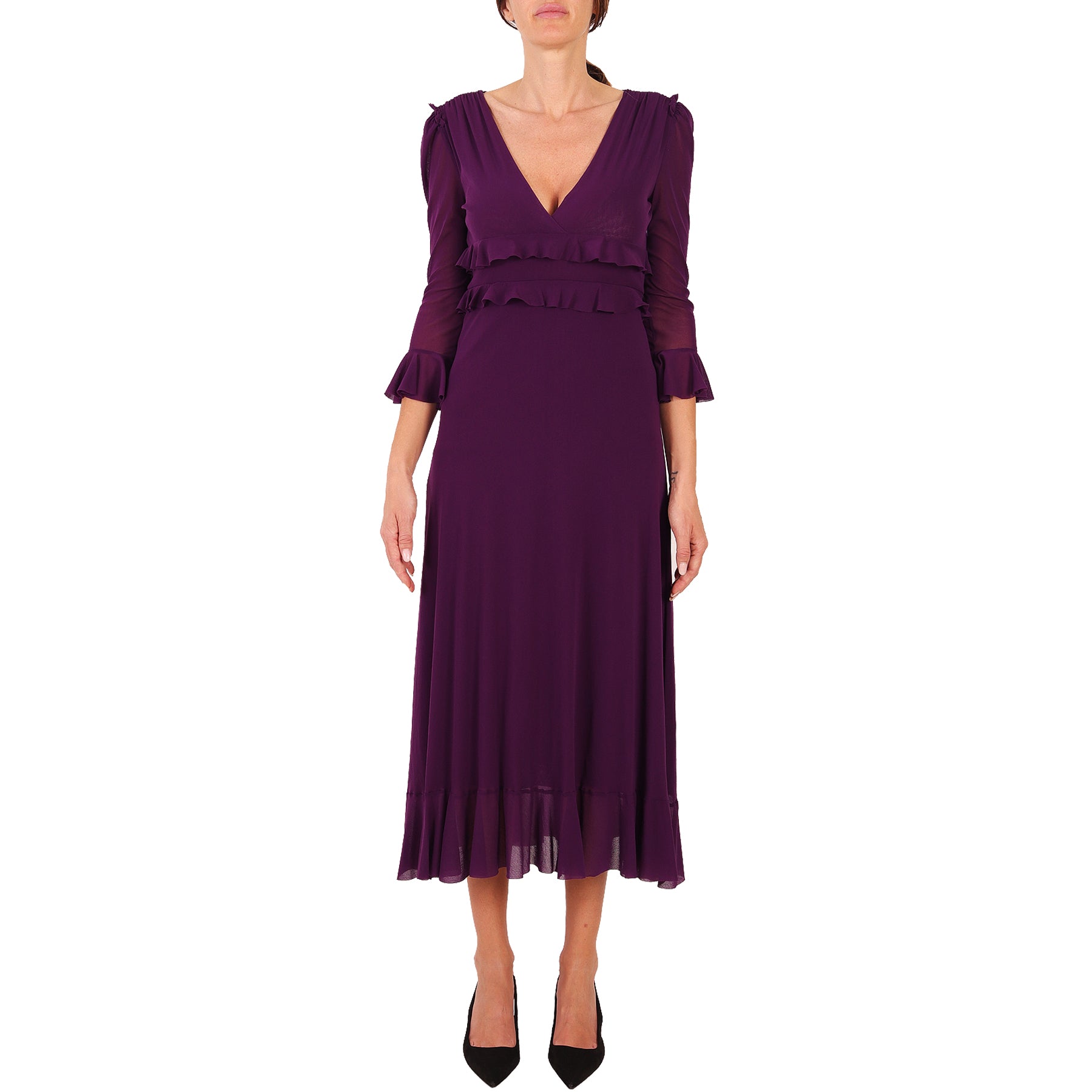 Philosophy dress, in mesh, purple, V-neck, with long sleeves, with side zip