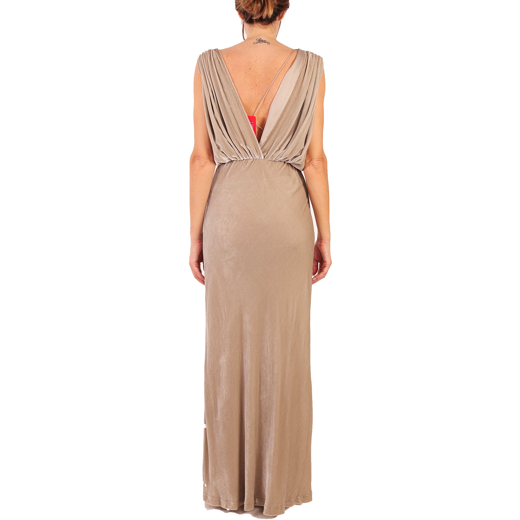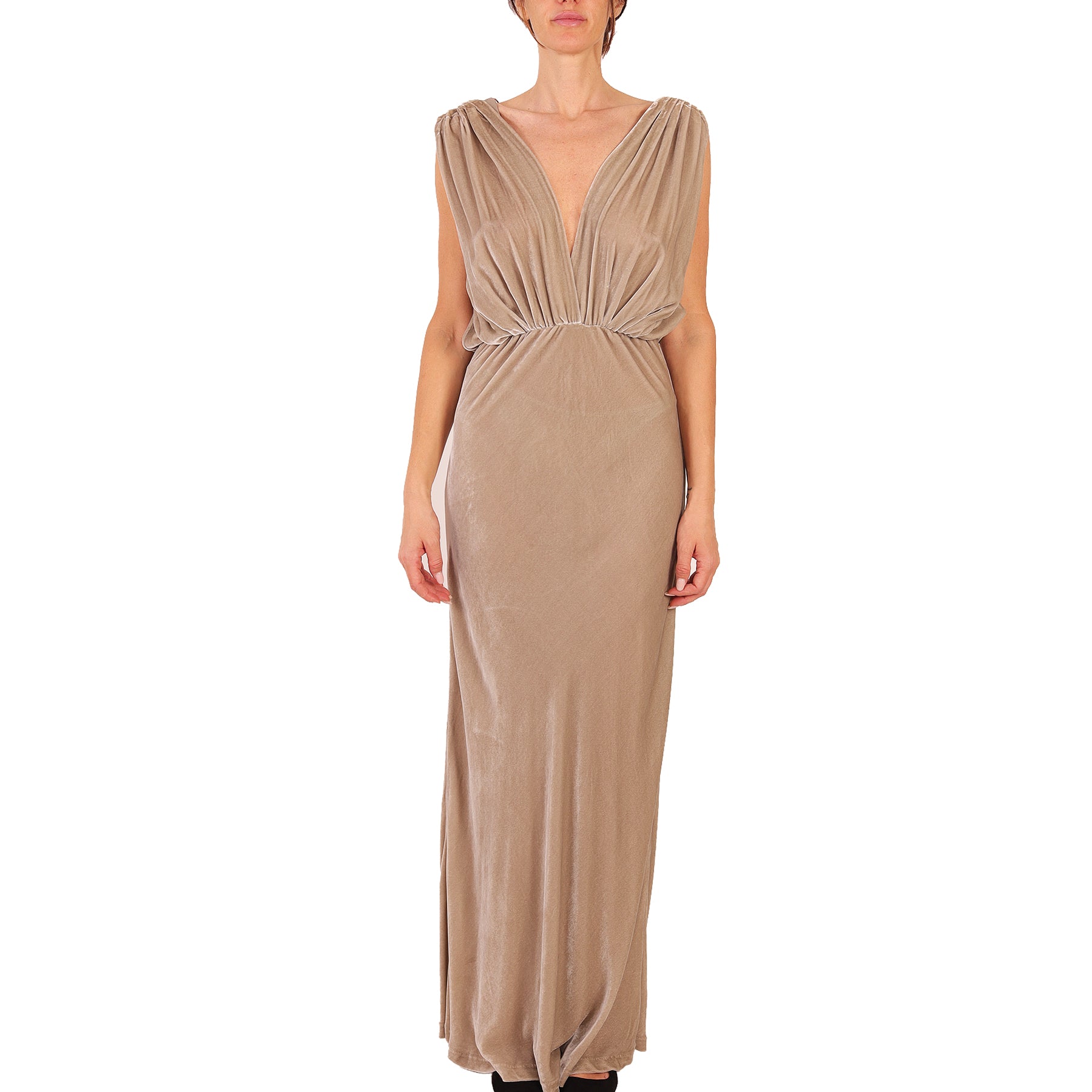 Mes Demoiselles dress, in velvet, beige, sleeveless, front and back neckline, elastic waist