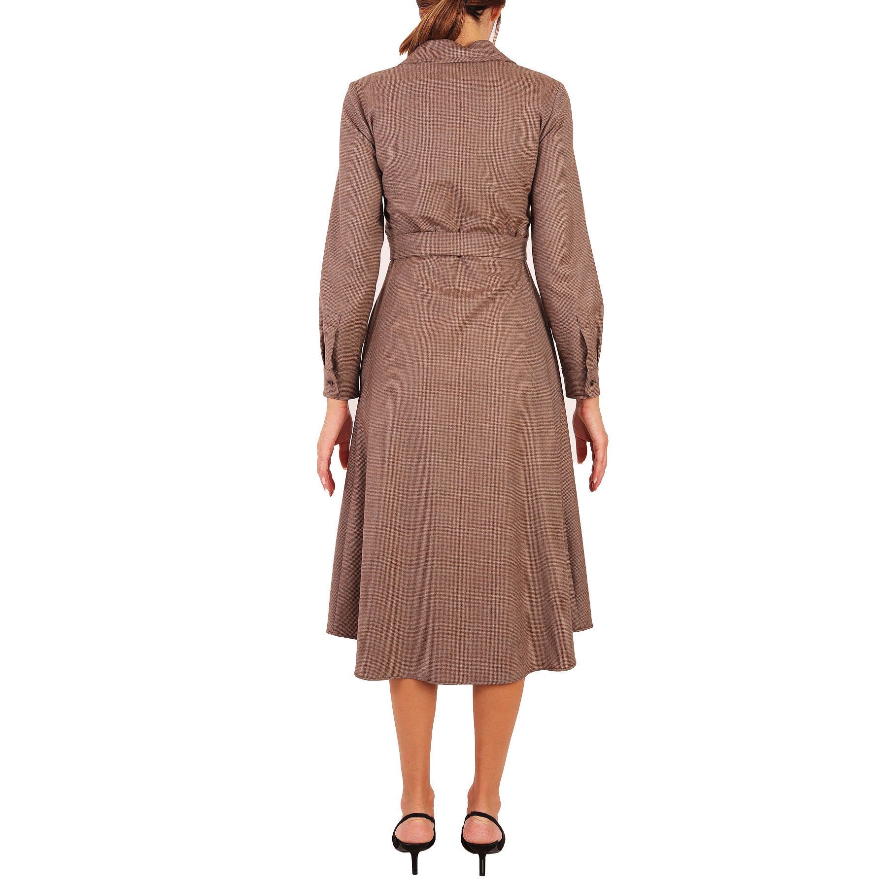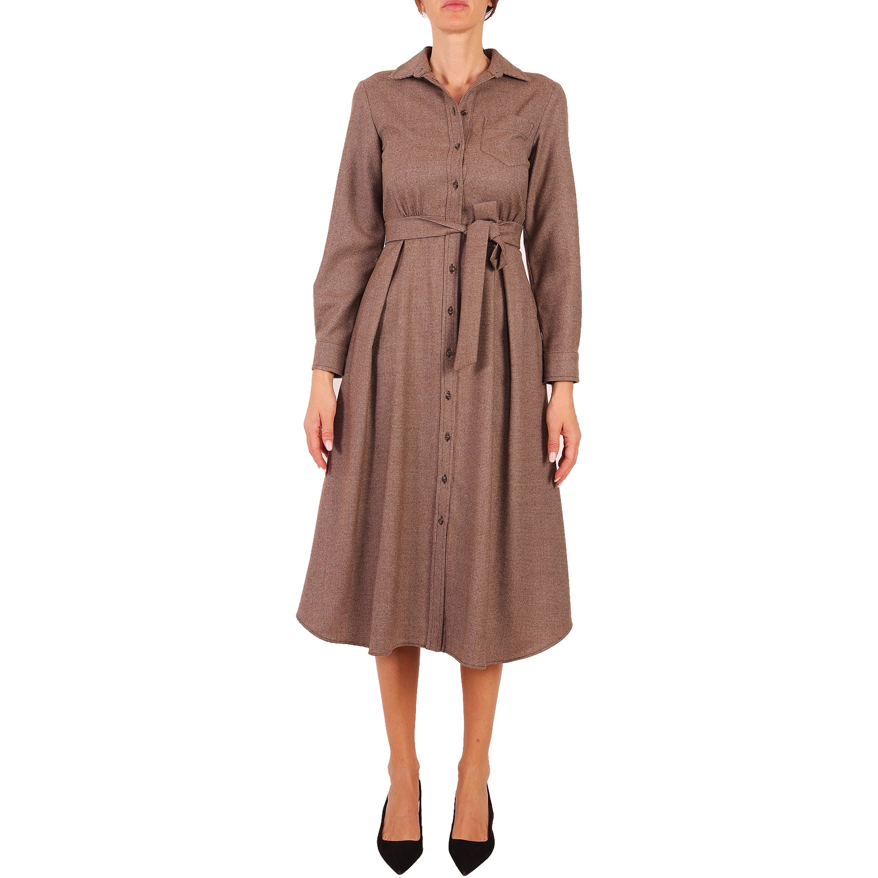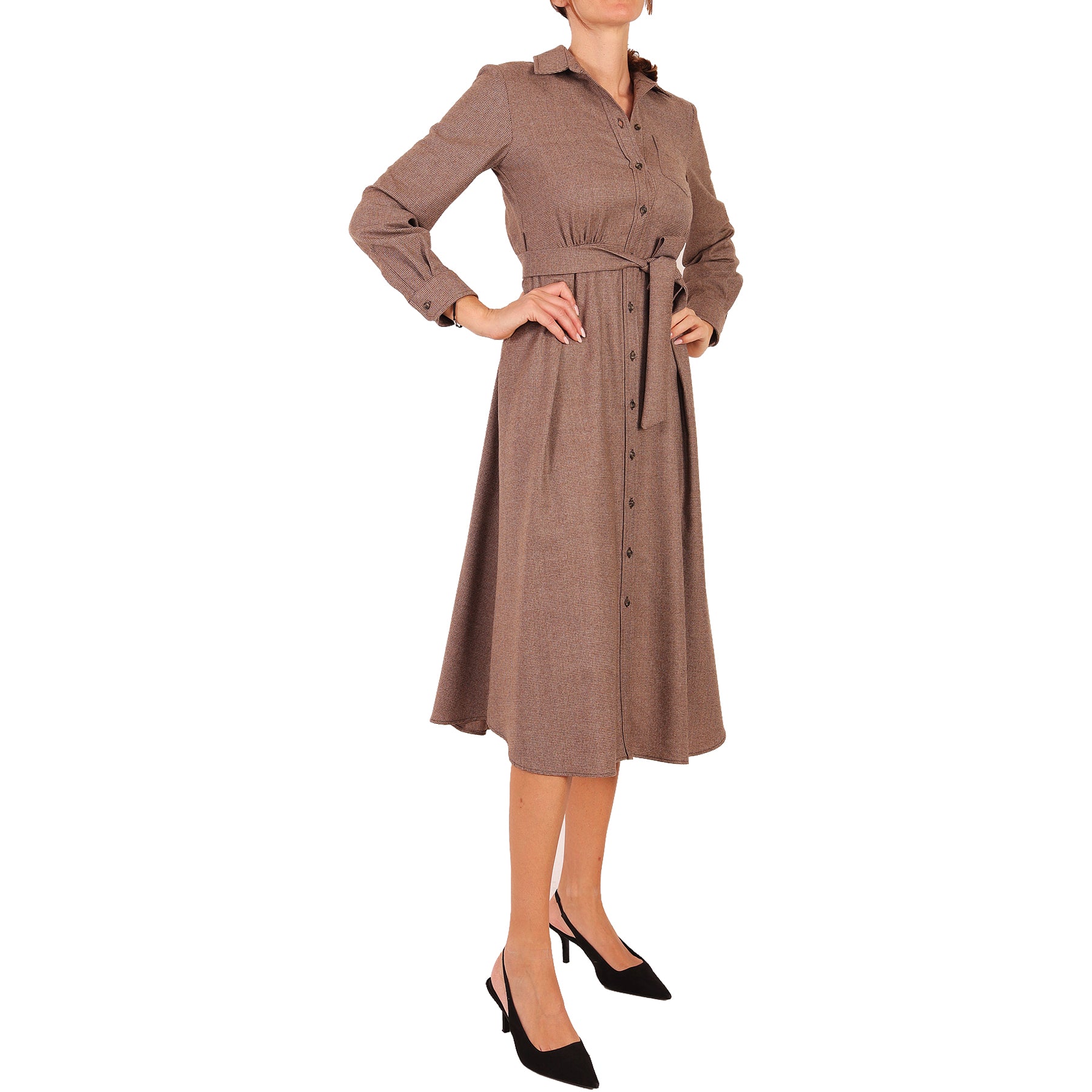 Max Mara dress, in wool, brown checked, dressing gown style, button fastening, with belt at the waist
