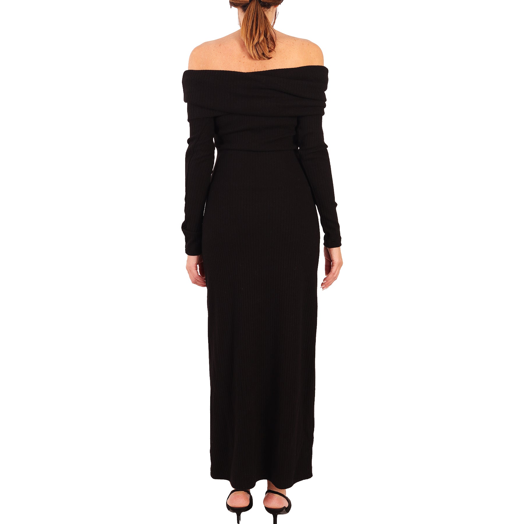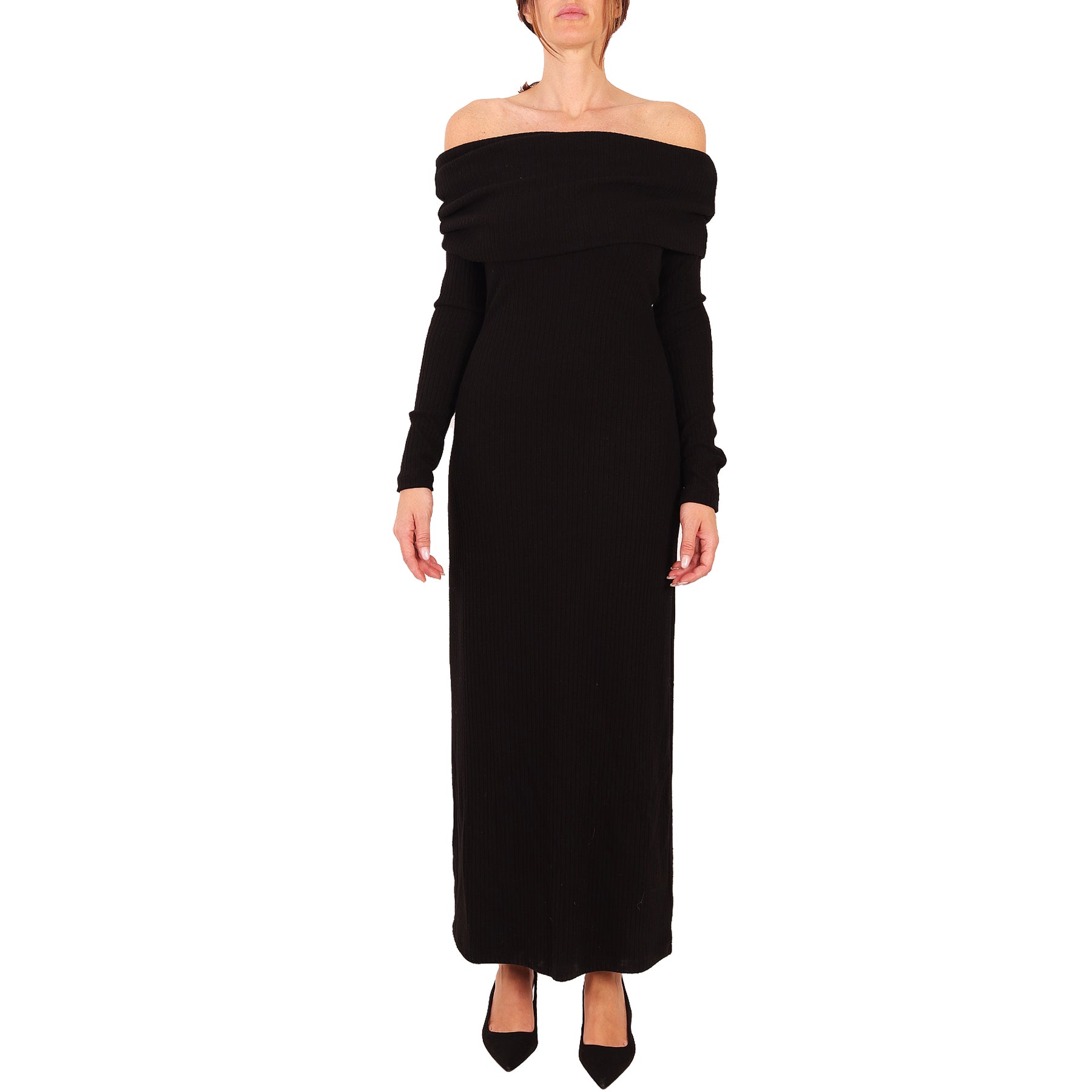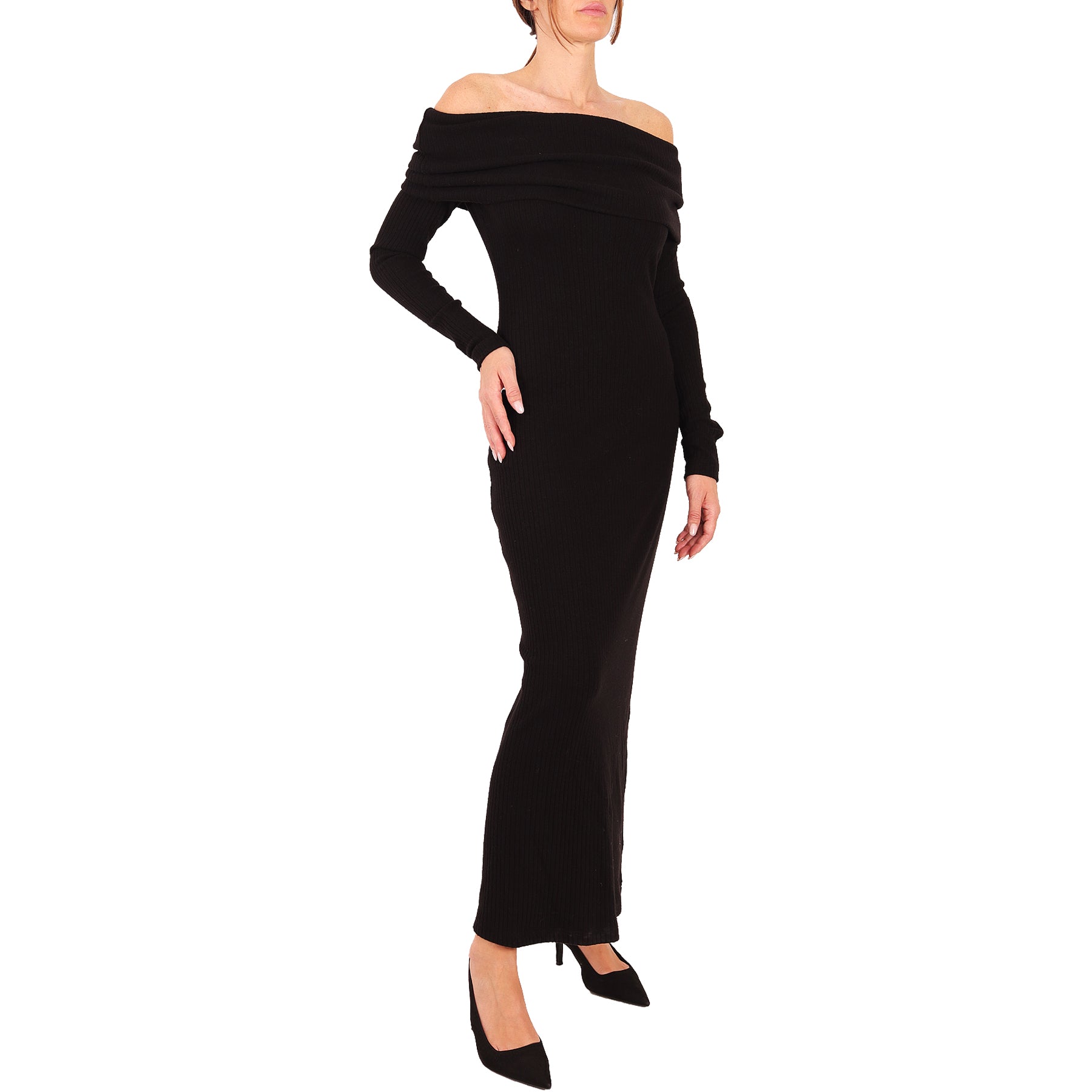 Weili Zheng dress, viscose, black, elastic ribbed, shawl collar, long sleeves