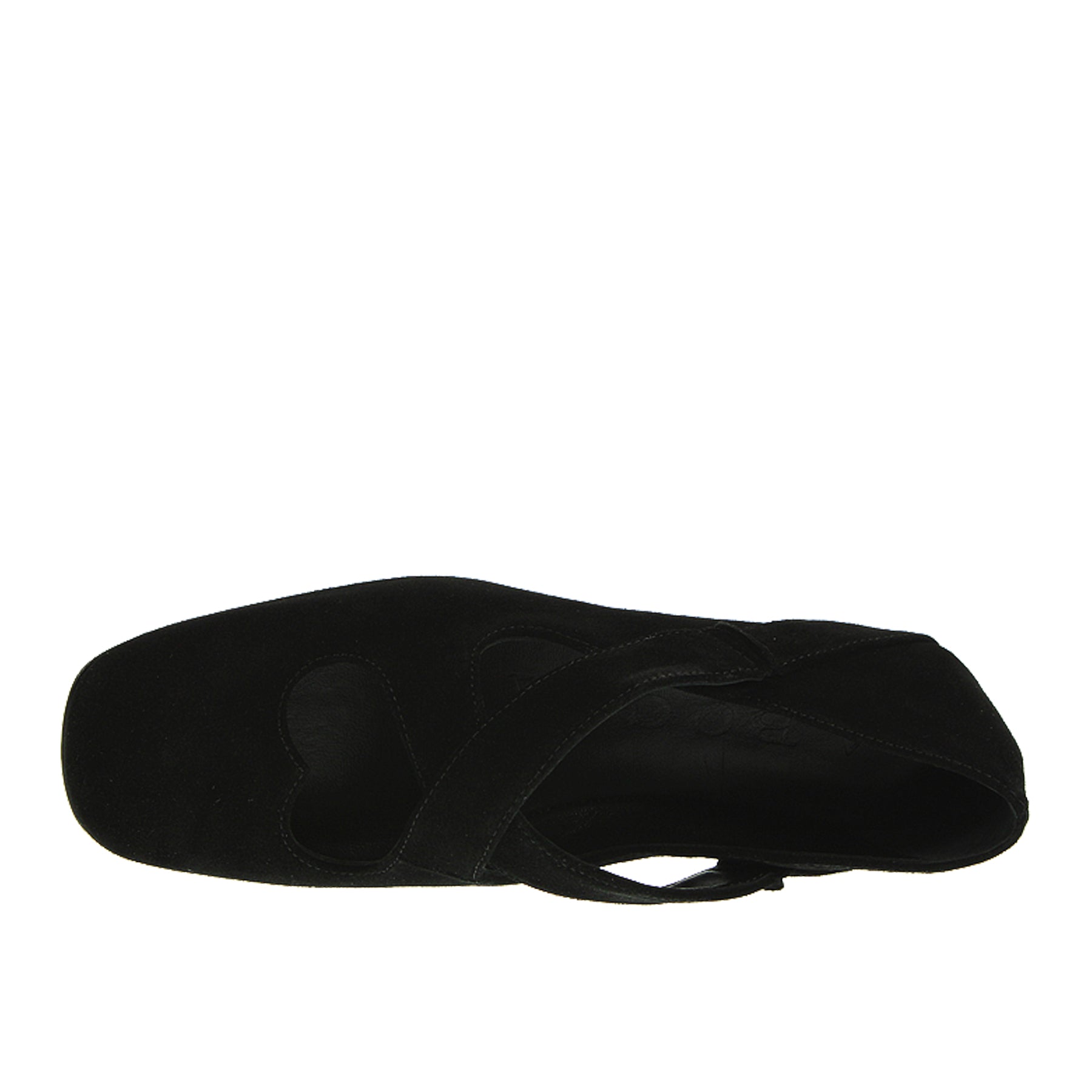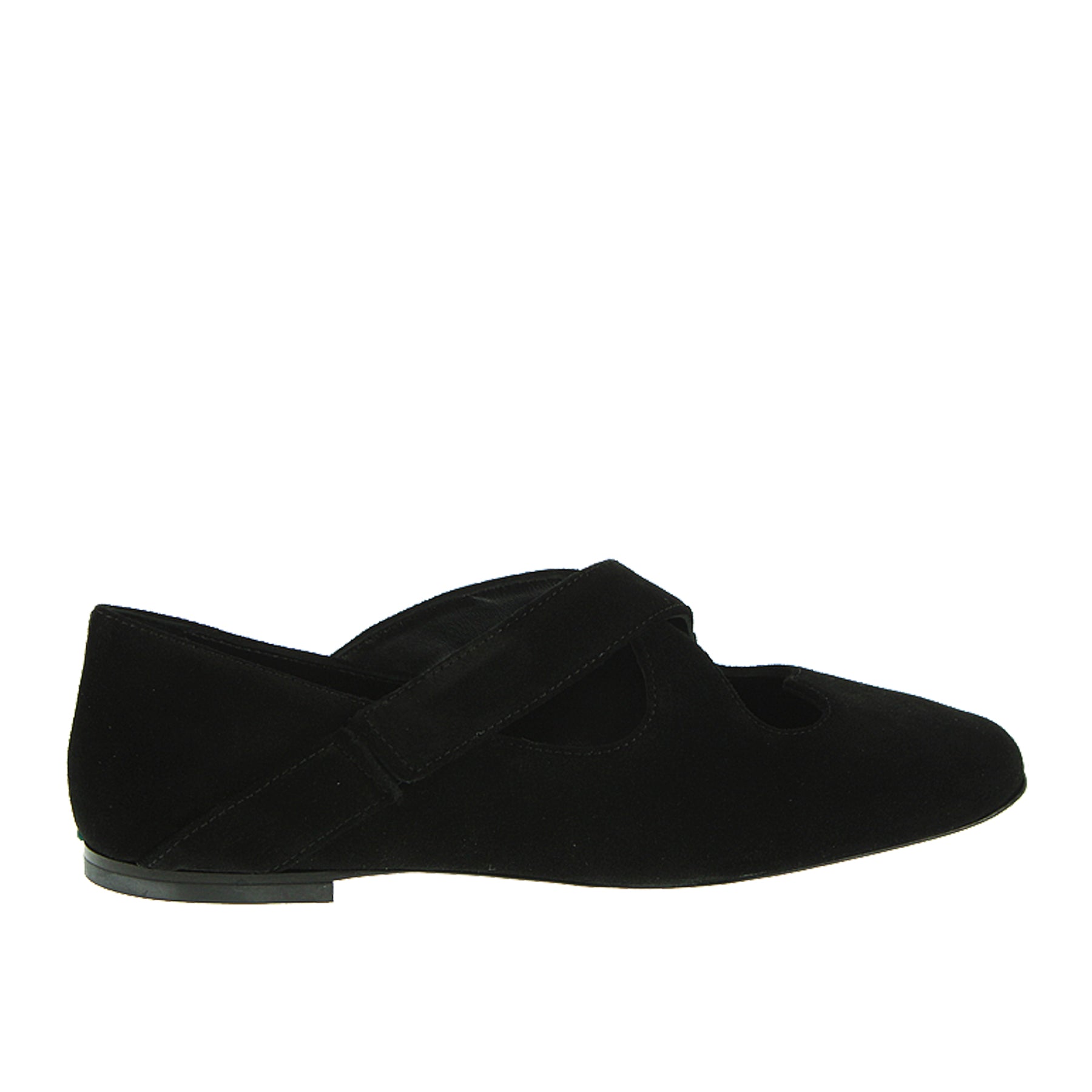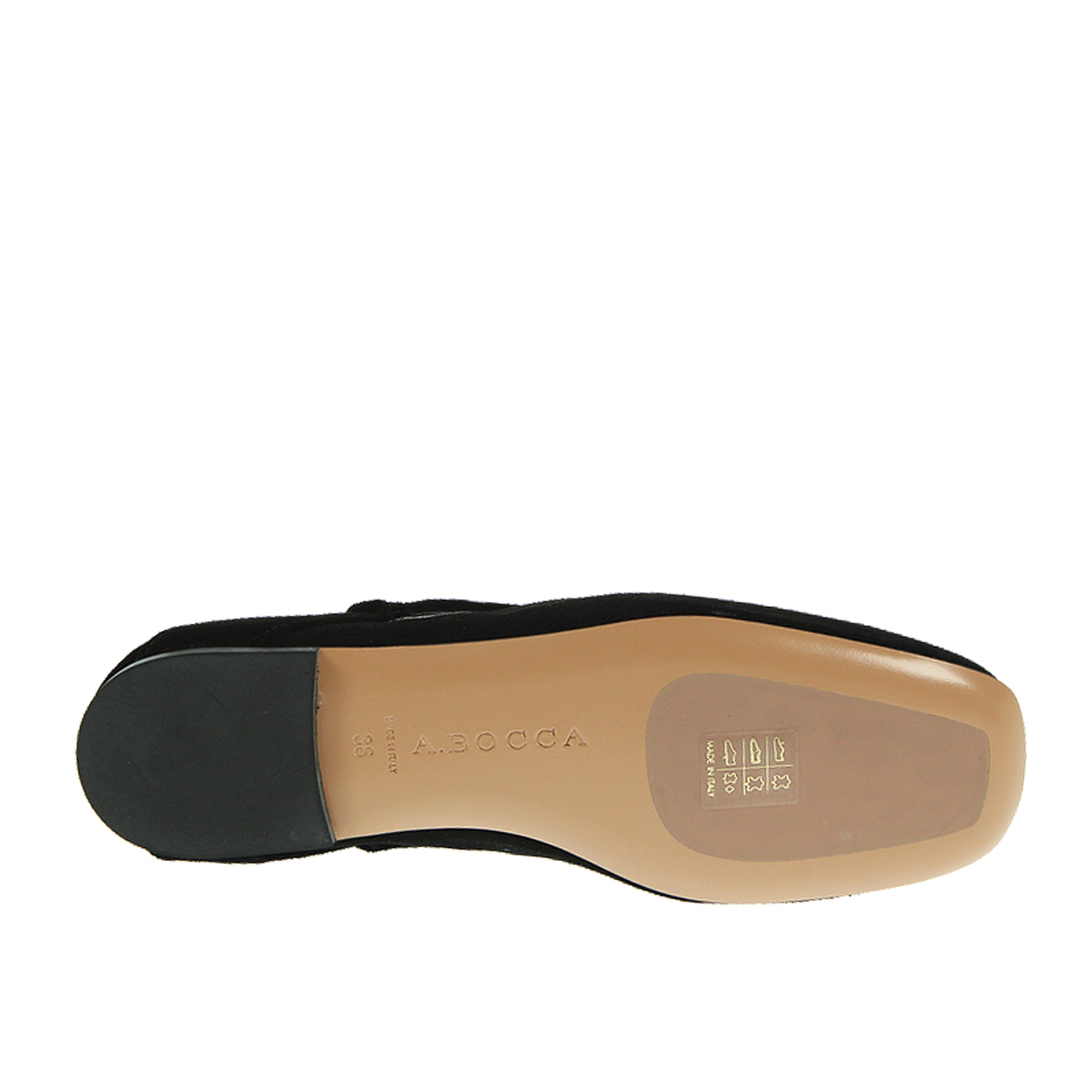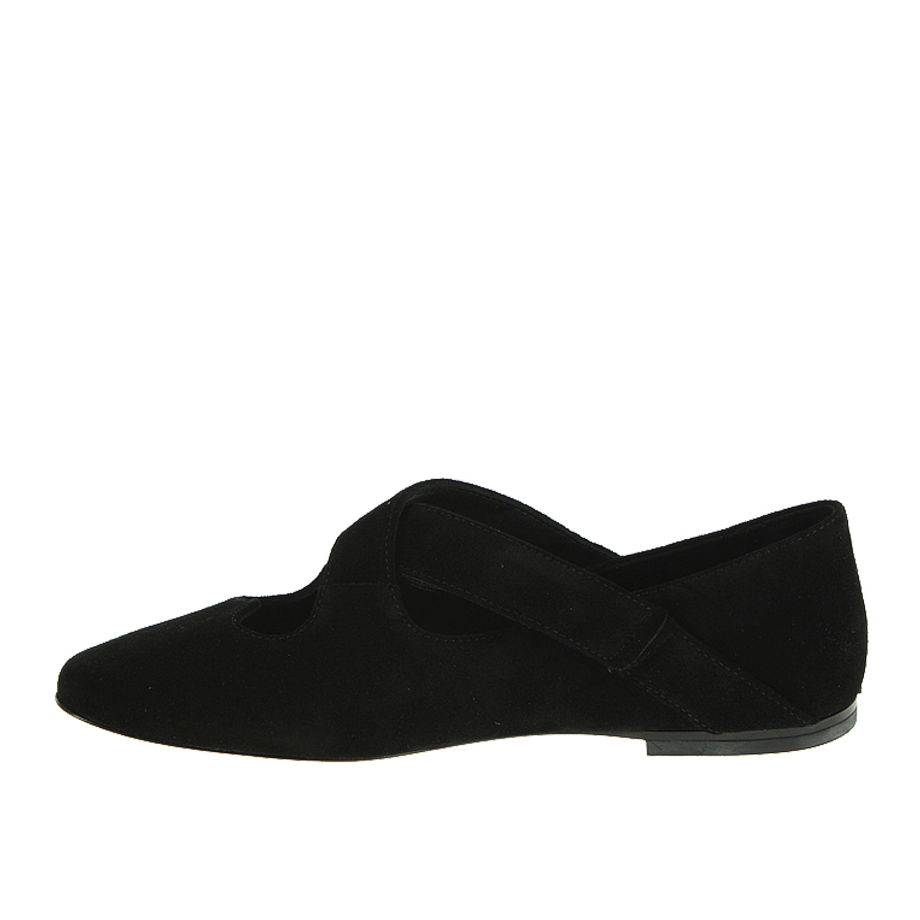 A.Bocca ballerina, in suede, black, with crossed straps, leather sole