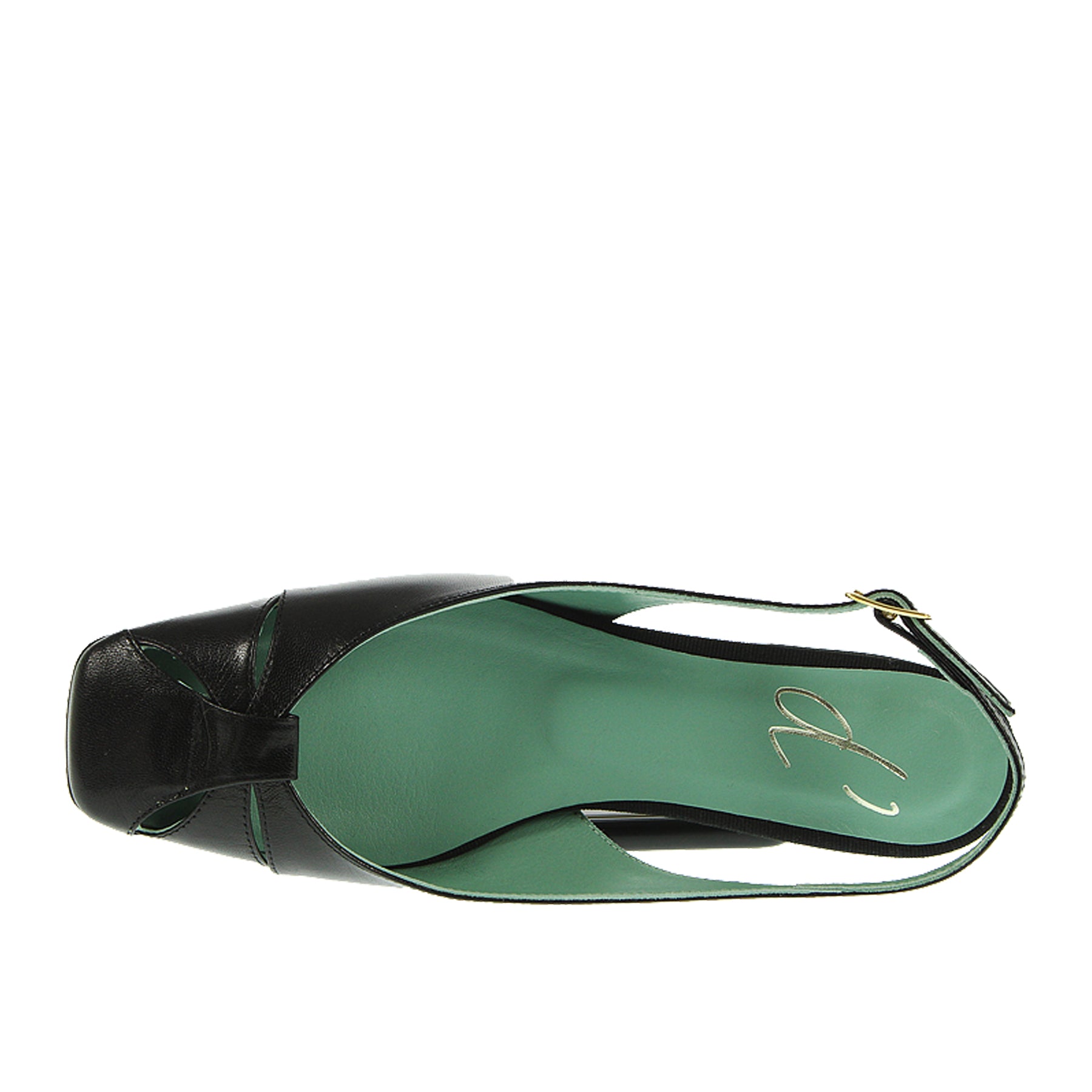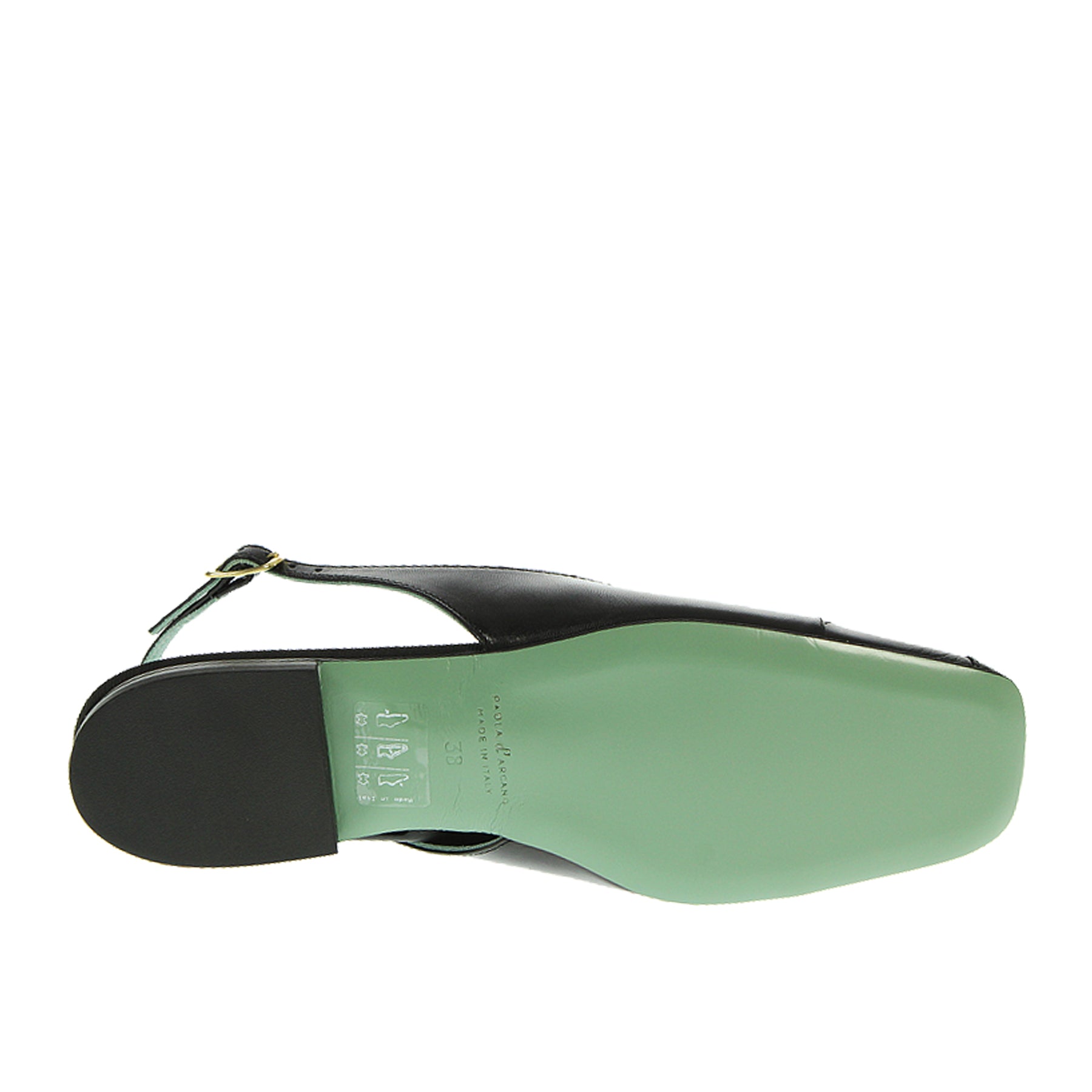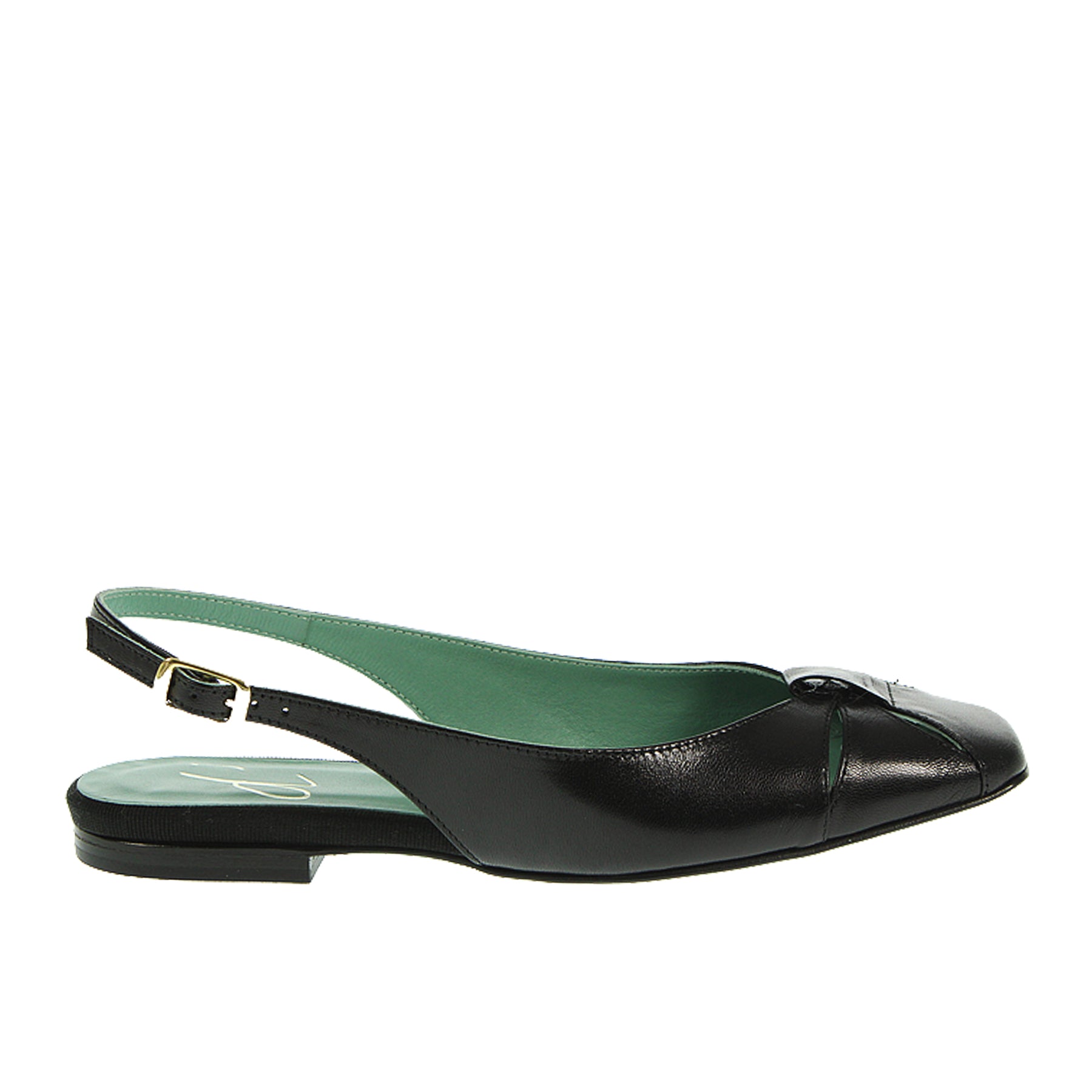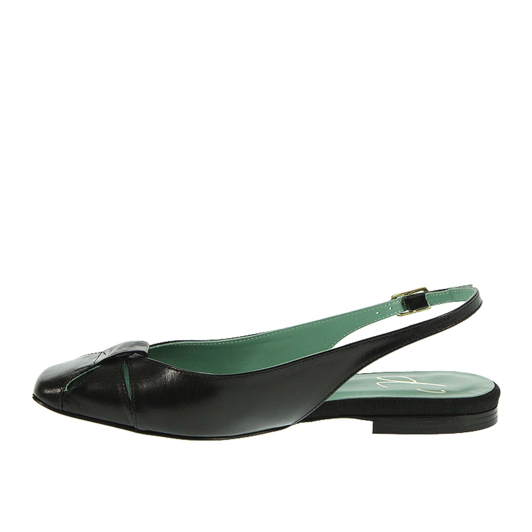 Paola D'arcano ballerina, open toe, in black leather, with strap, with leather sole