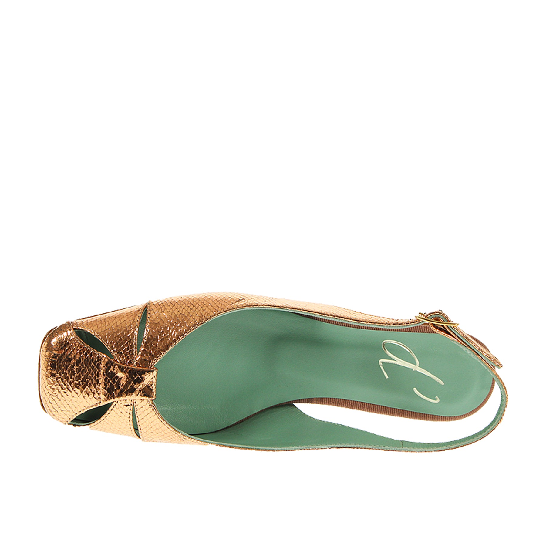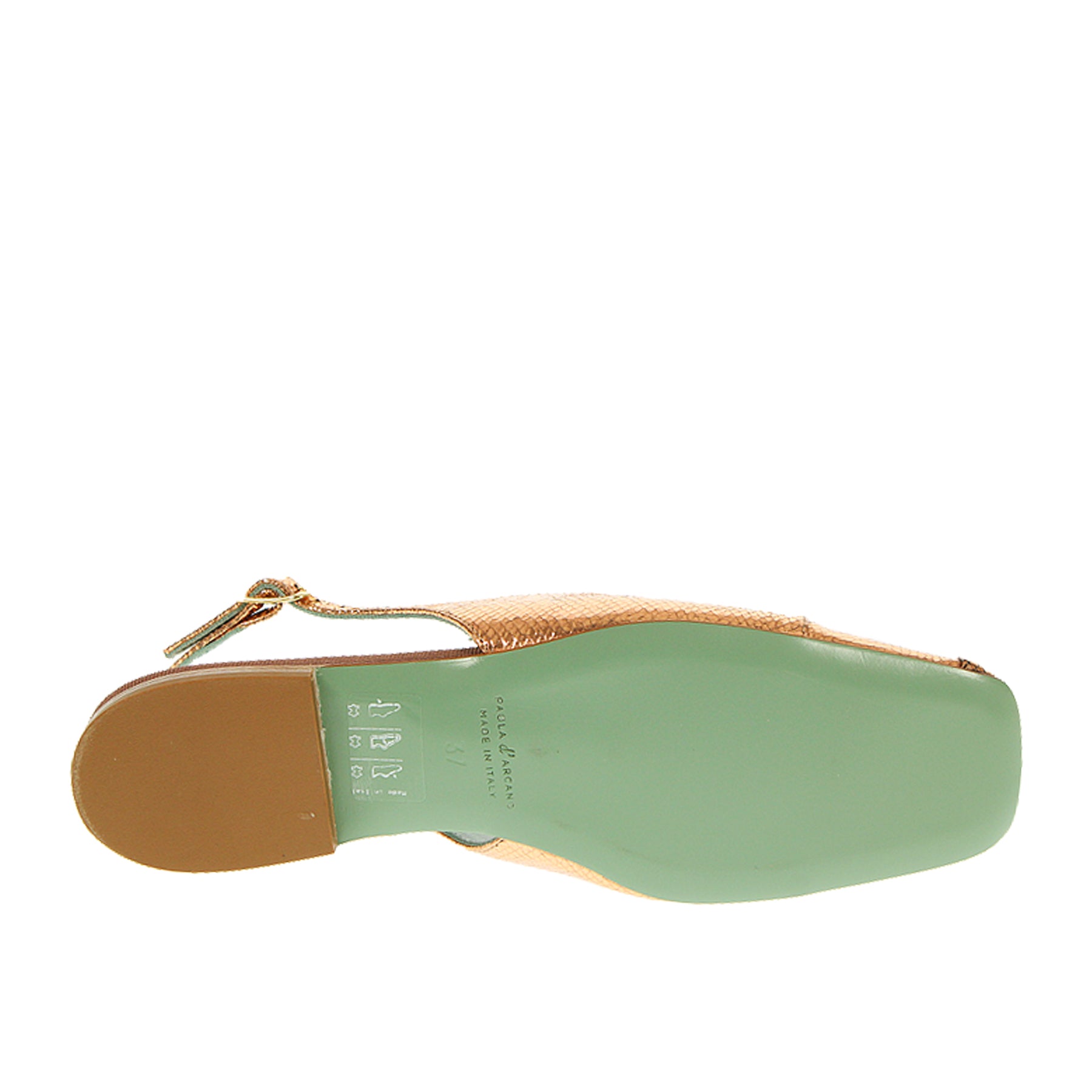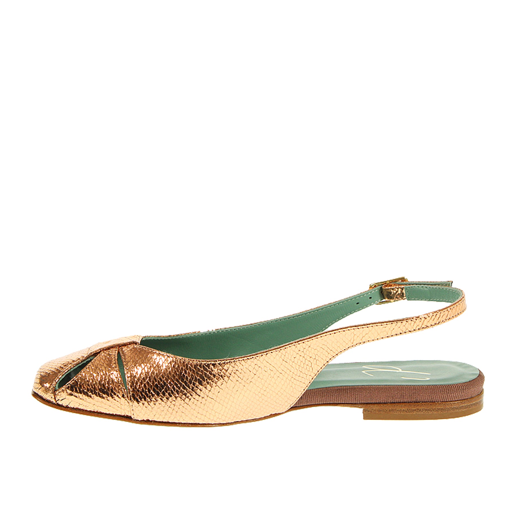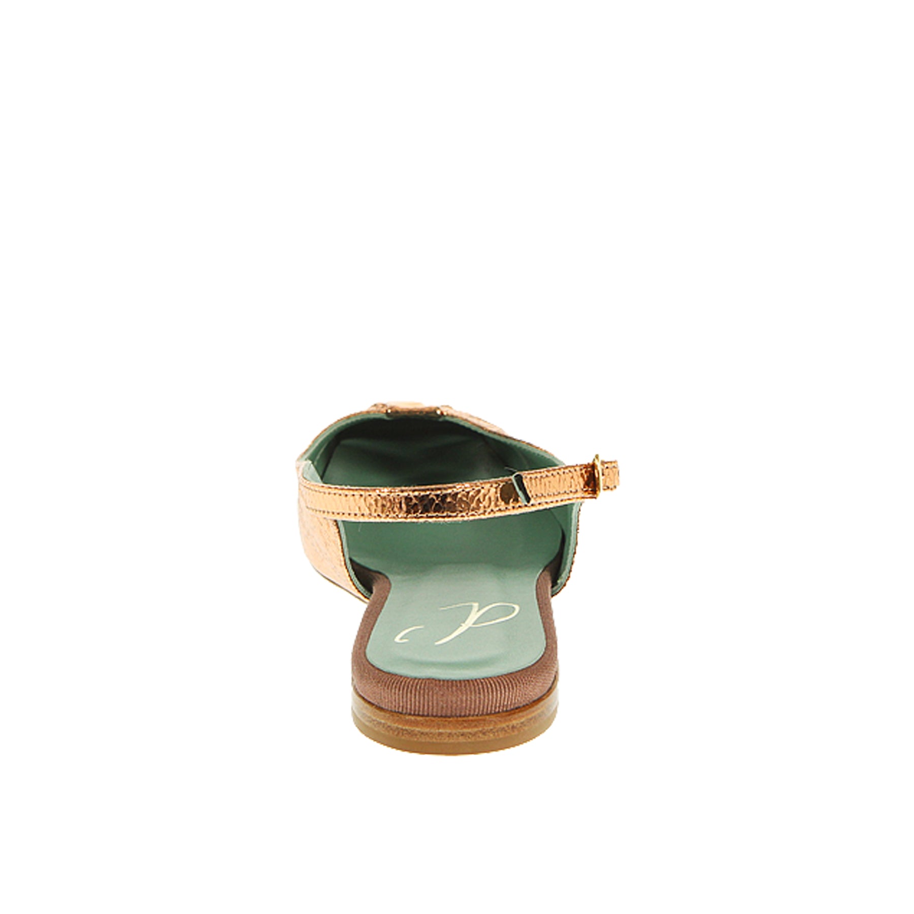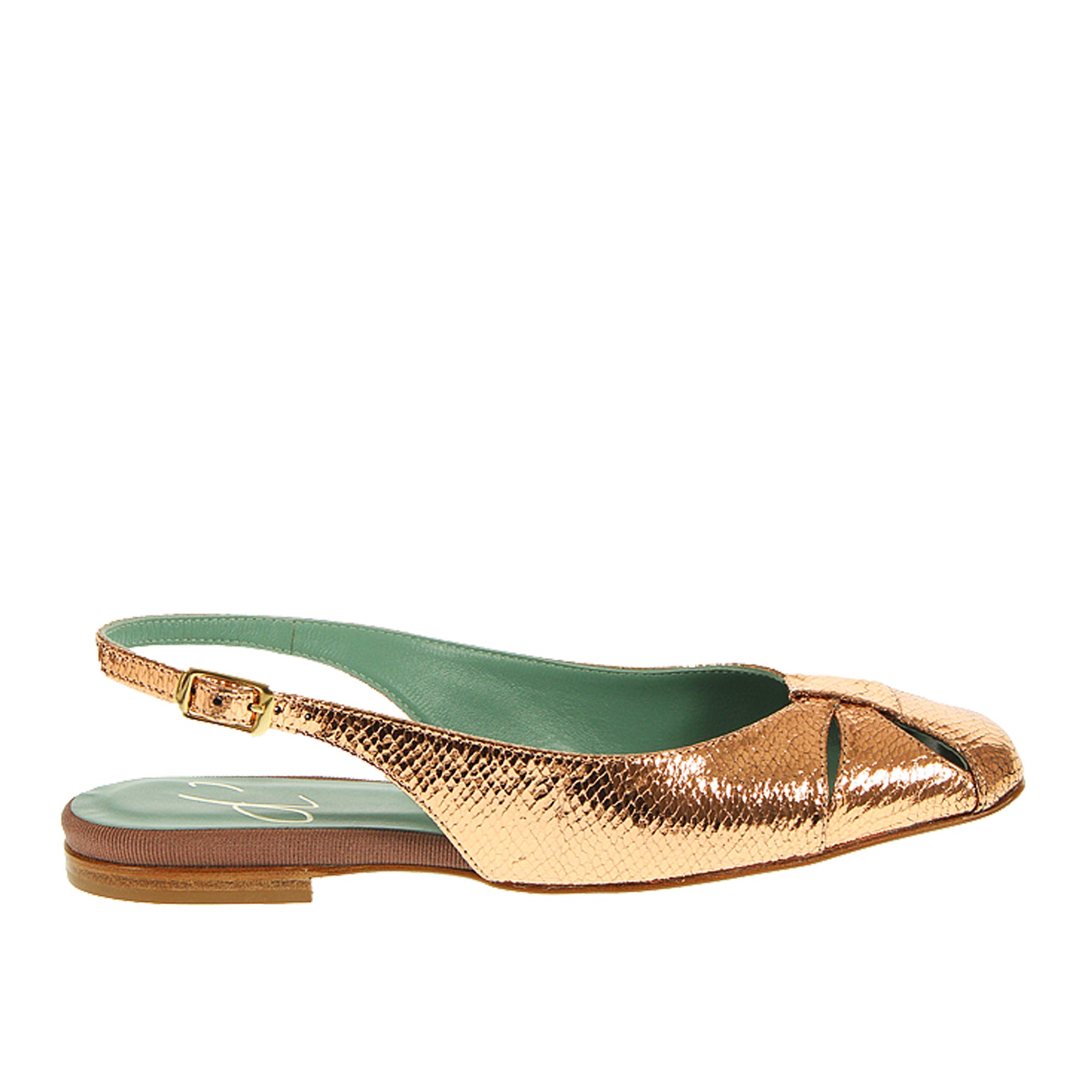 Paola D'arcano ballerina, metallic, open toe, in snakeskin print leather, rose gold, with strap, with leather sole