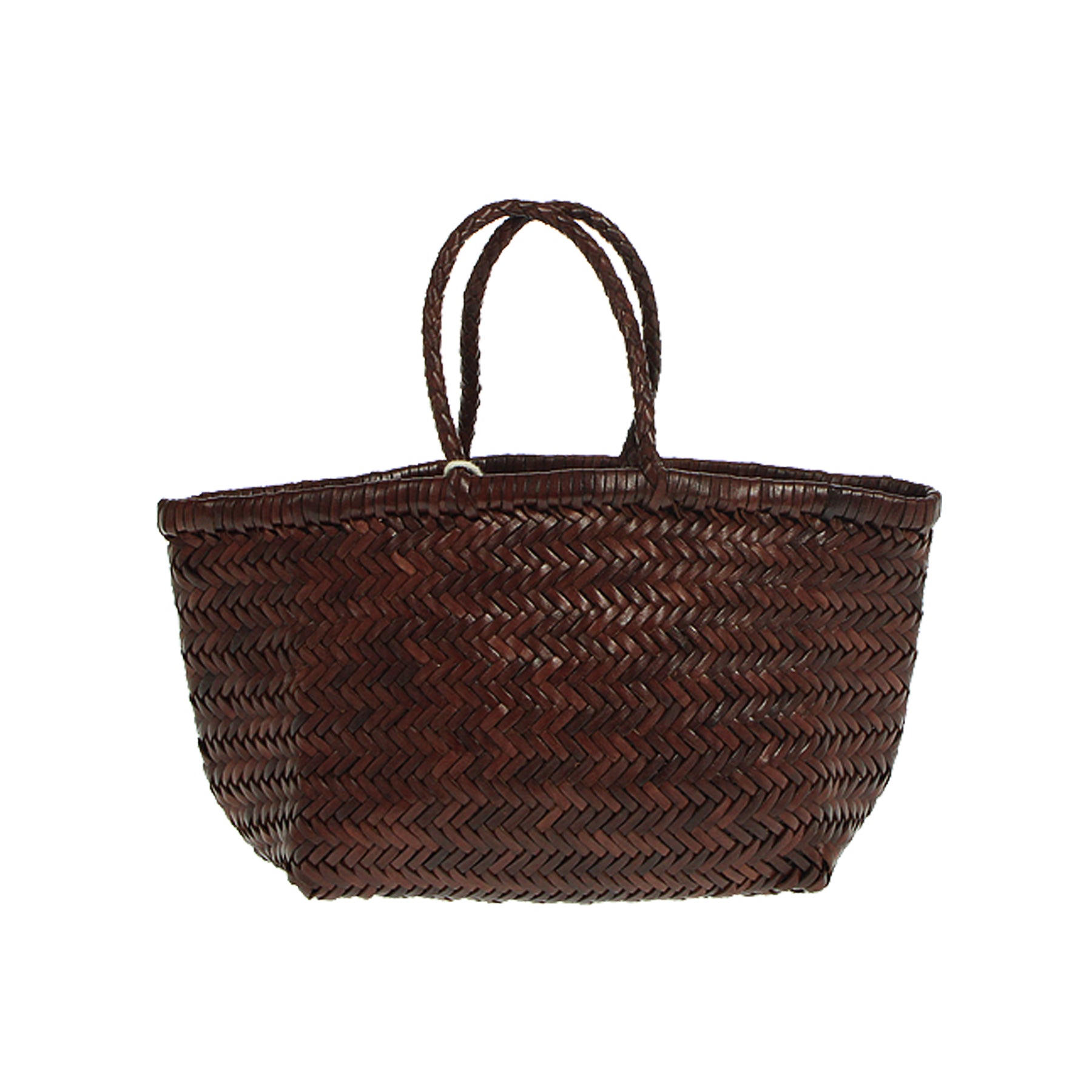 Borsa Dragon Diffusion, modello Bamboo Triple Jump Small, in pelle intrecciata, color cuoio bruciato, con doppi manici intrecciati