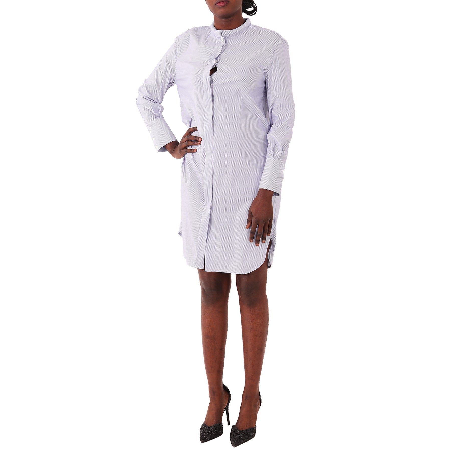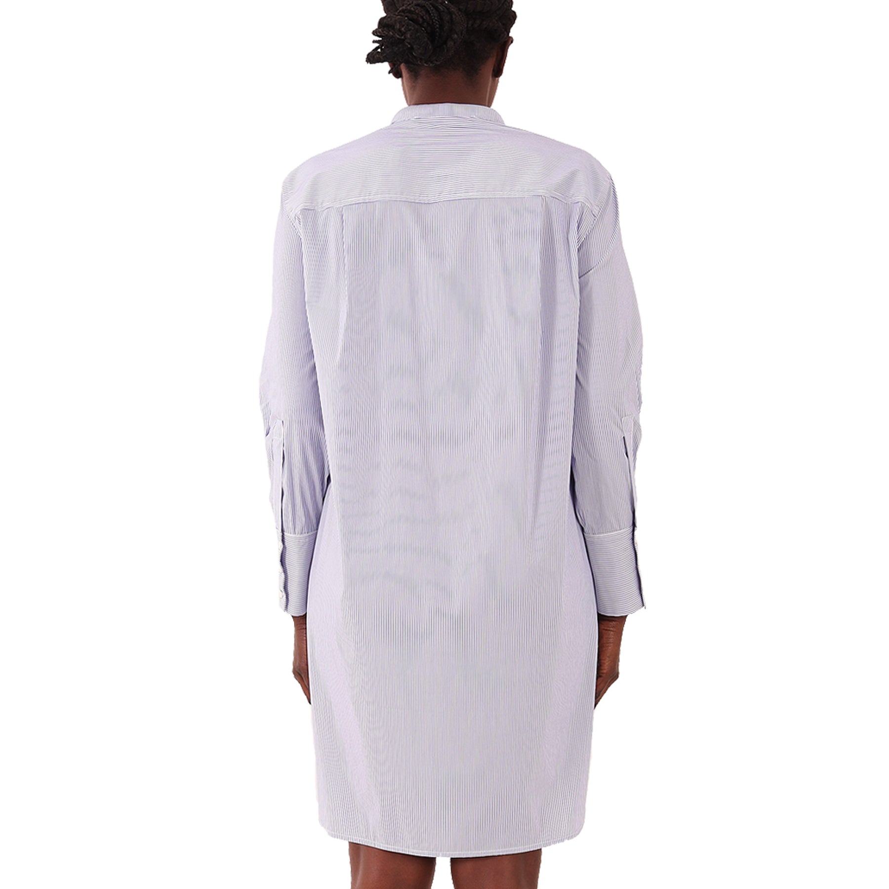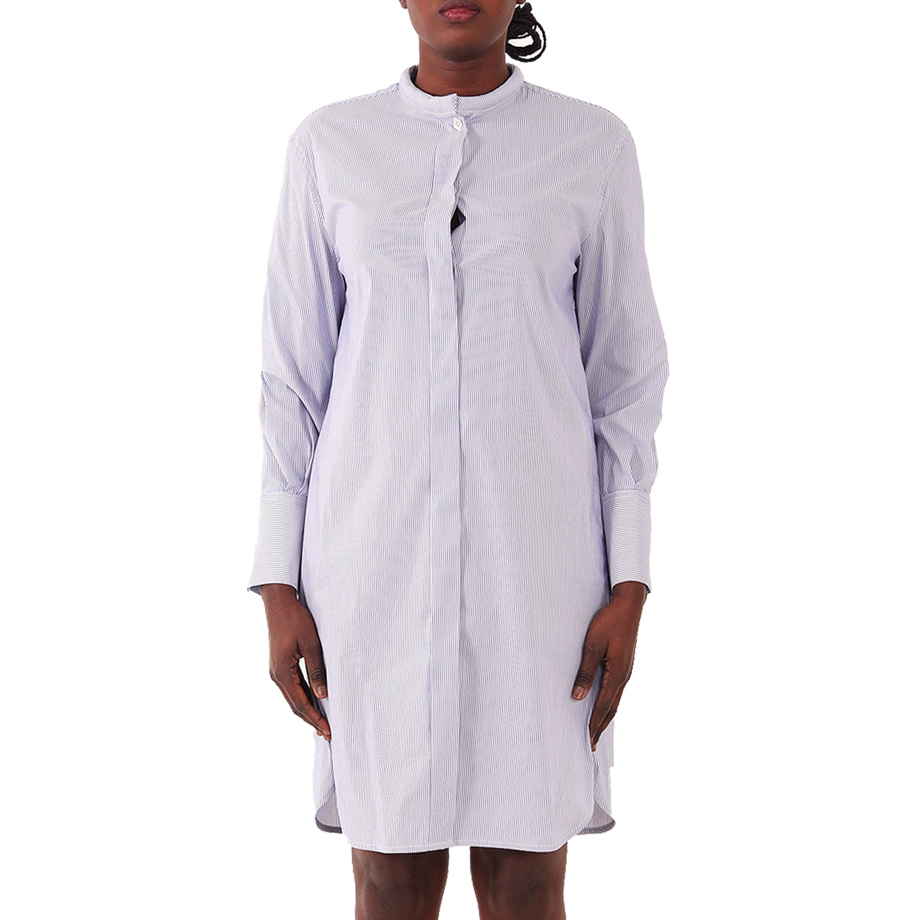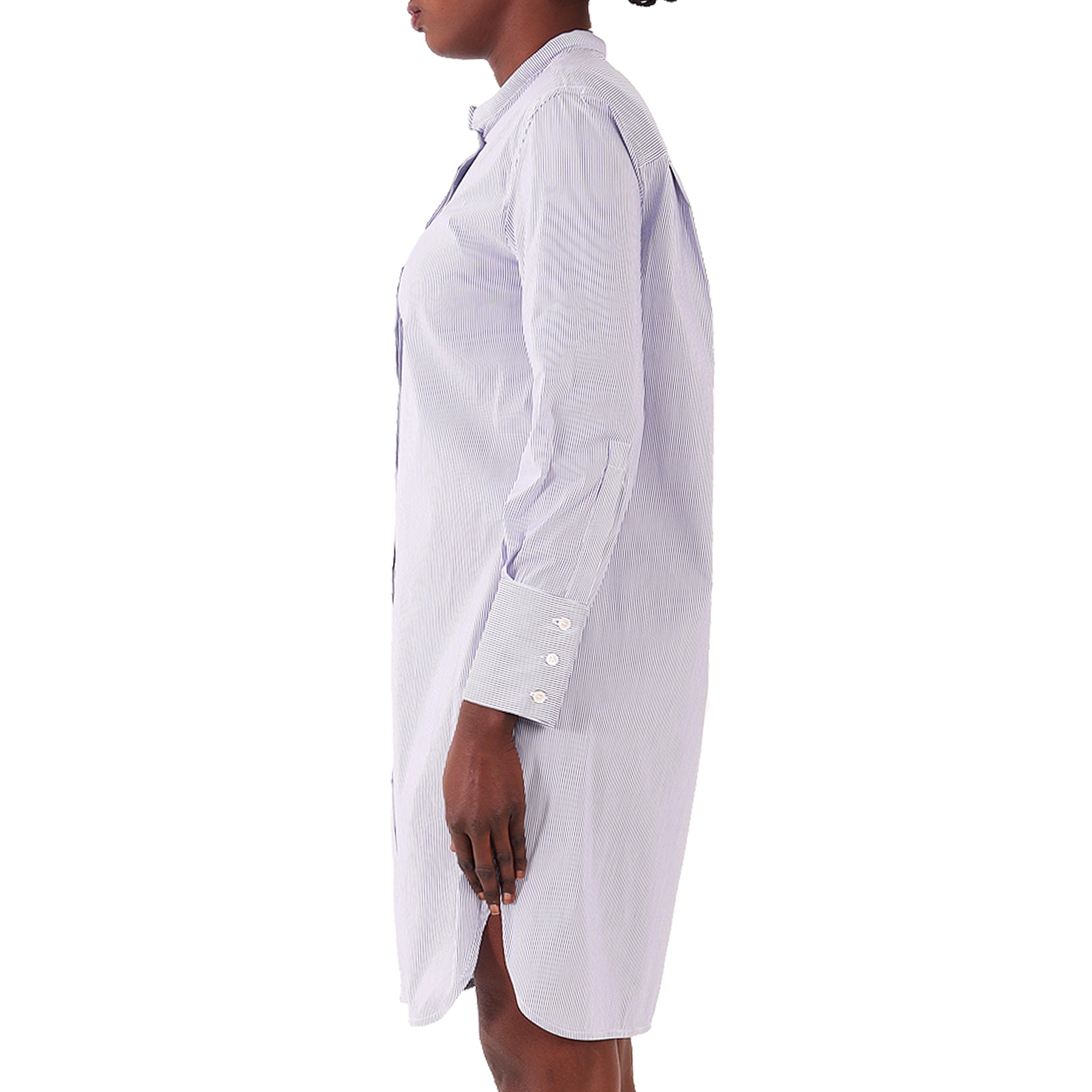 Long shirt, striped, light blue and white, crew neck, with buttons
