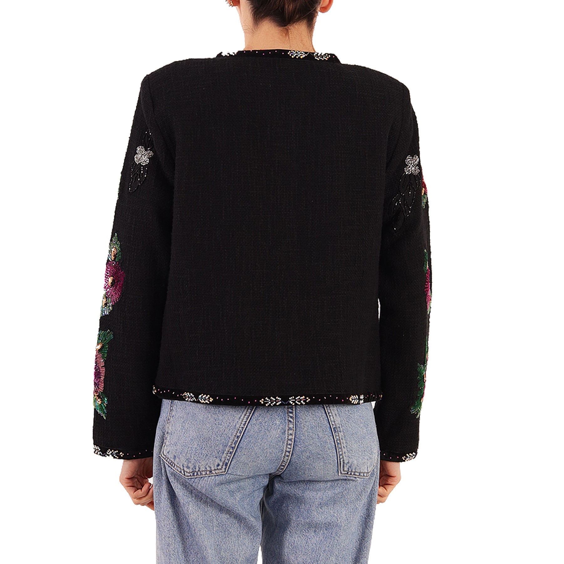 Jacket, Sea New York, black, with sequin flowers, hook closure, with pockets, in cotton.