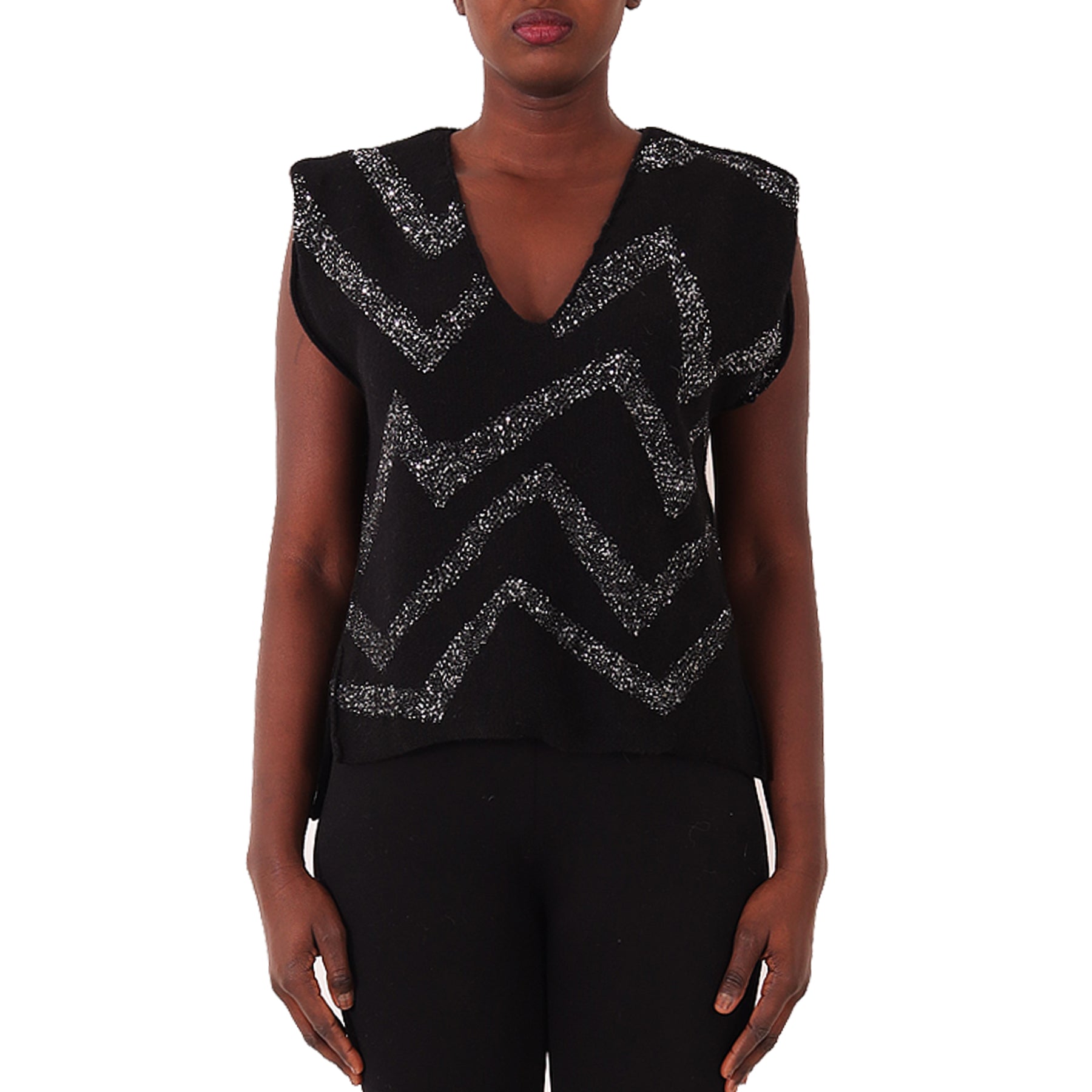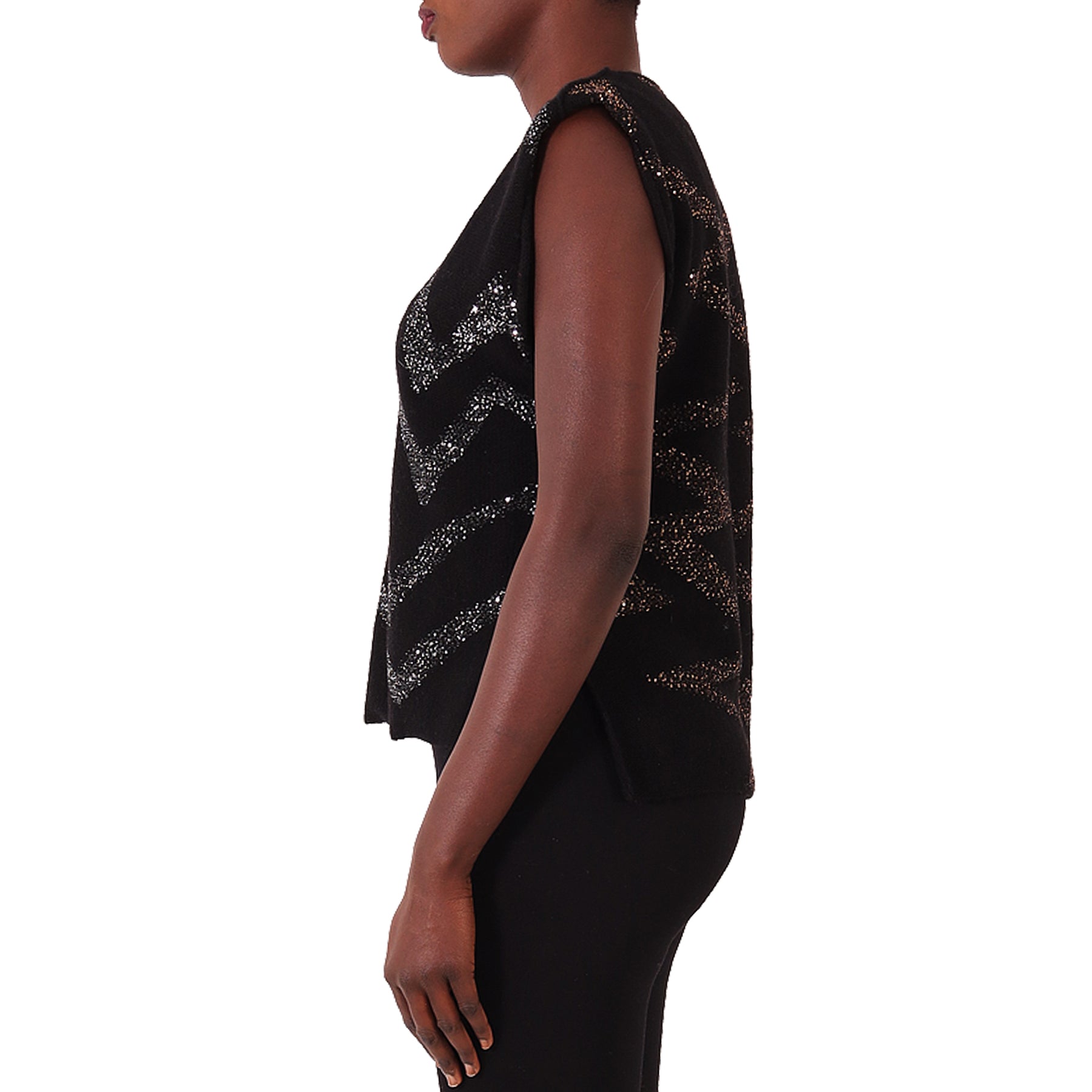 Nude vest, black, with sequin inserts, in wool blend, with v-neck