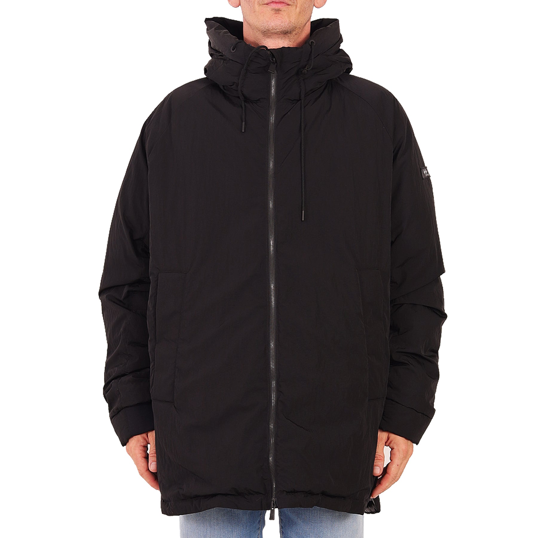 Tatras jacket, in polyester, black, with hood, high collar, zip pockets, zip fastening