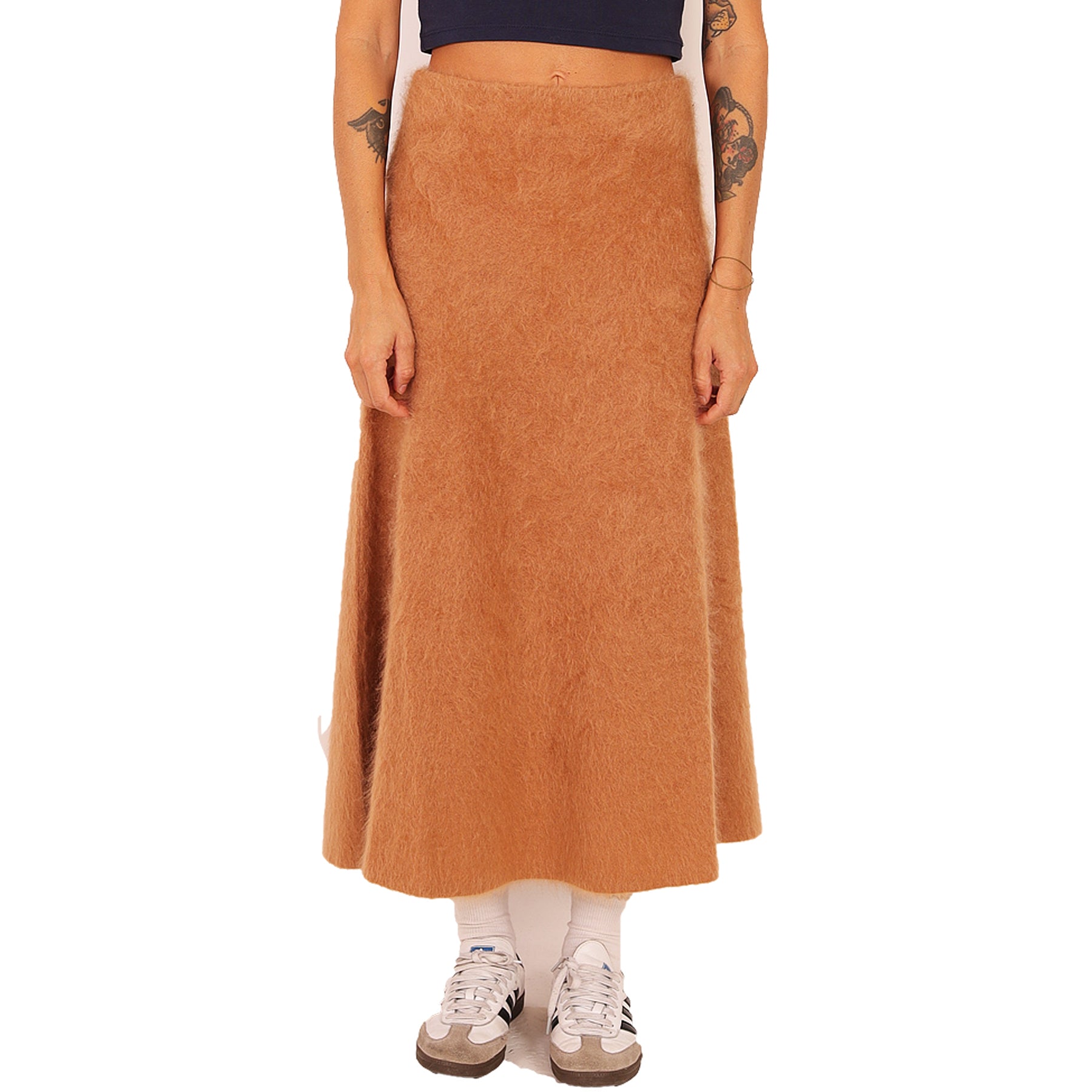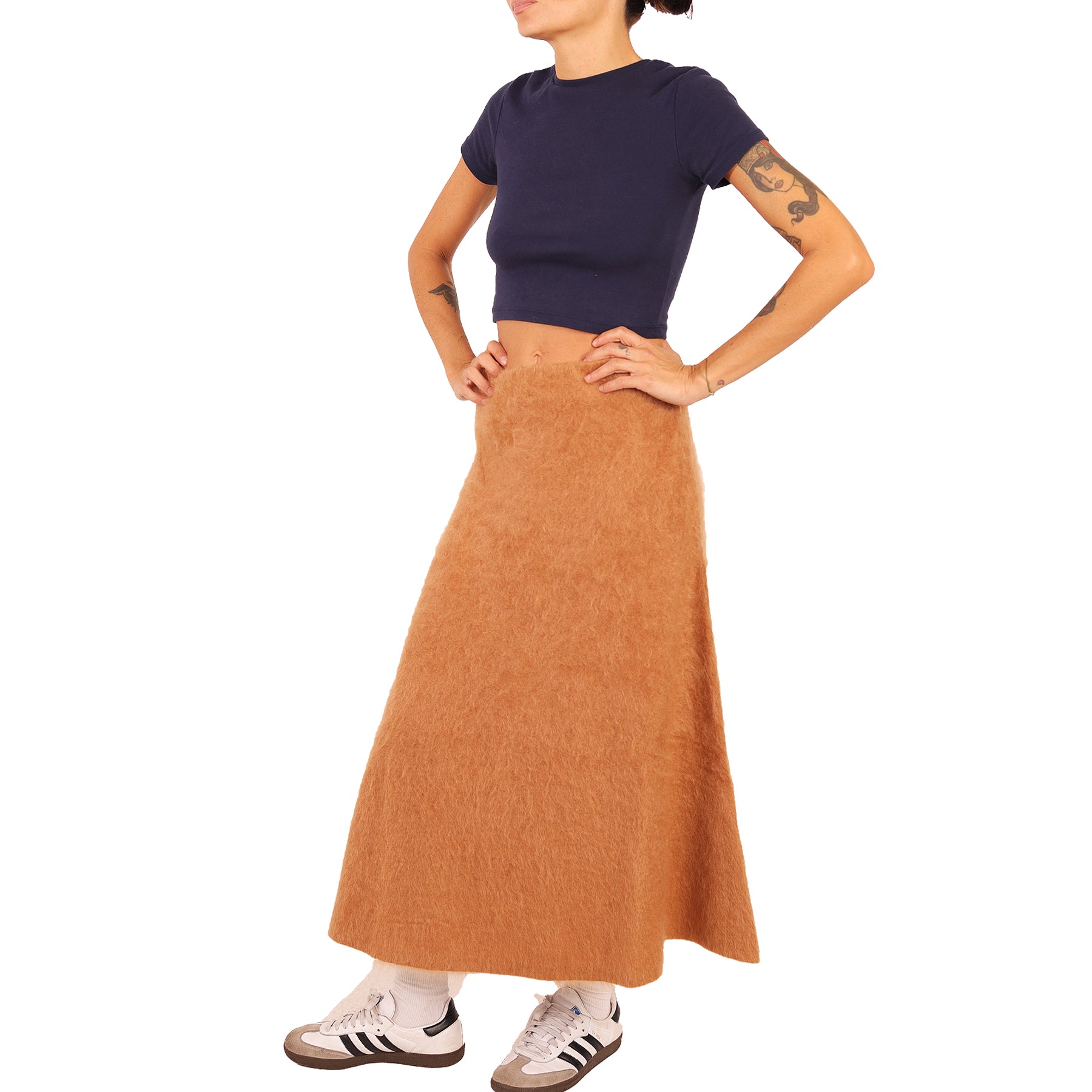 Gonna Nude, in cashmere, color tabacco, con elastico in vita