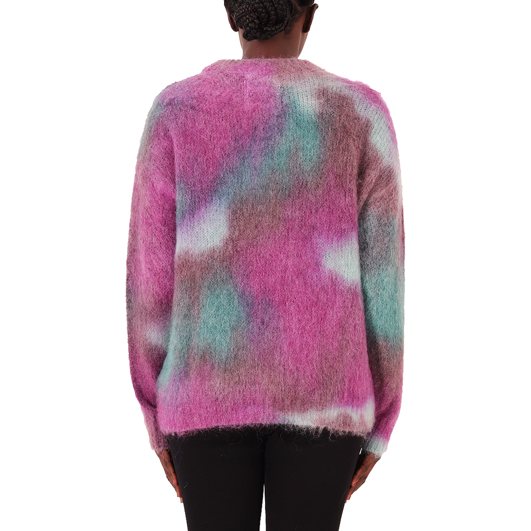 Attic and Barn purple and turquoise crew neck, long sleeve, mohair blend sweater