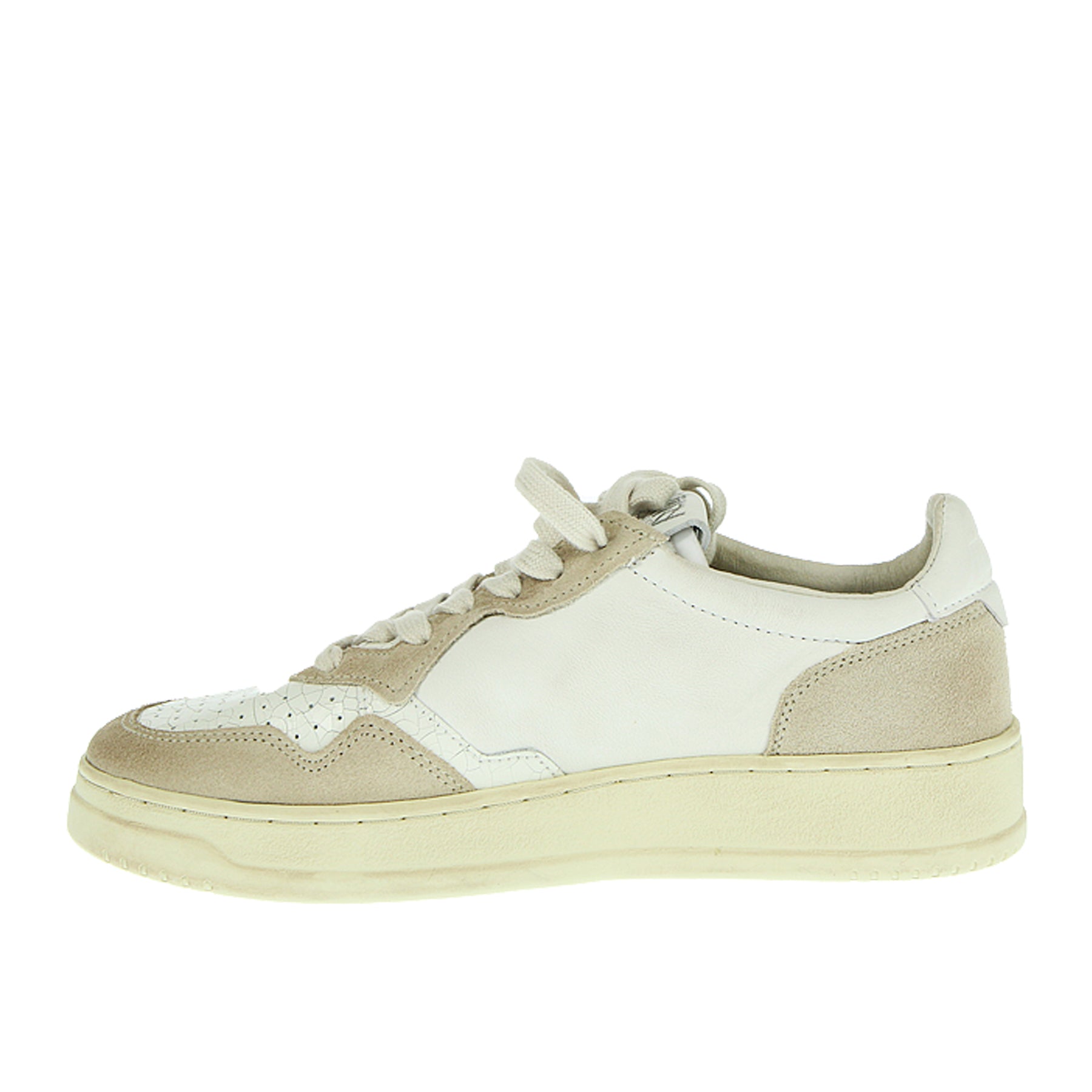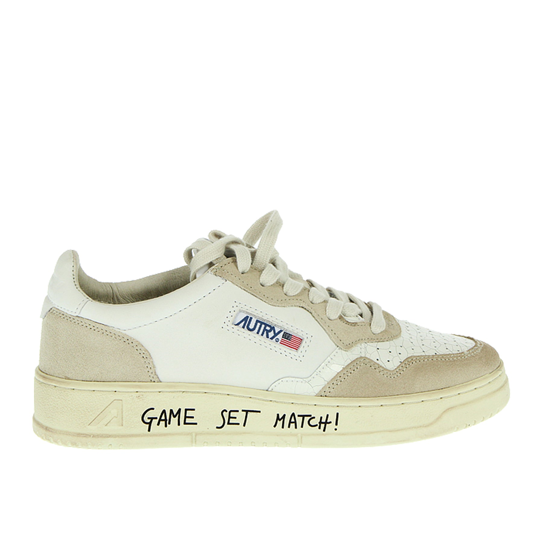 Autry Medalist sneakers in white leather with suede inserts, white heel tab, printed lettering on the side, laces, rubber sole
