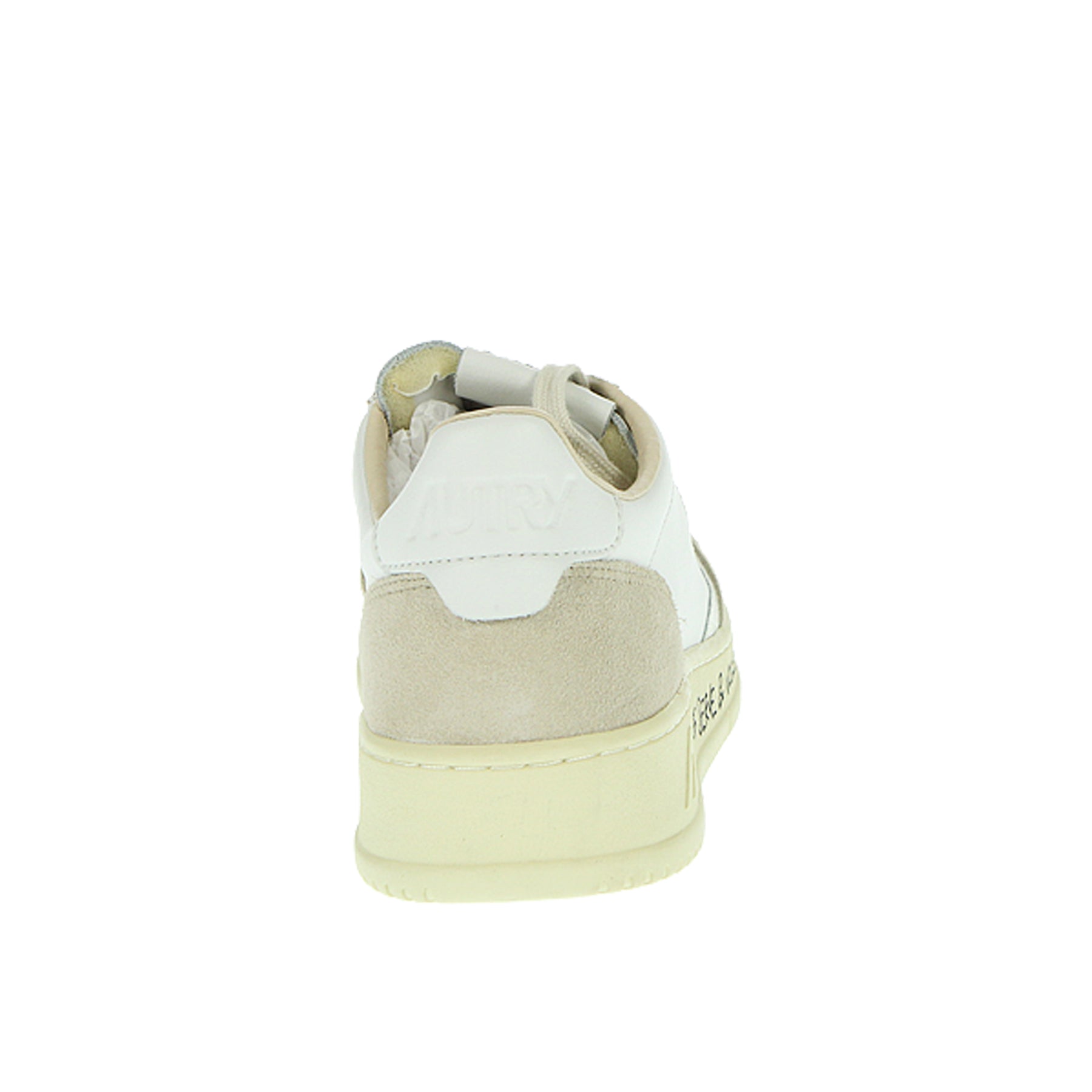Autry Medalist sneakers in white leather with suede inserts, white heel tab, printed lettering on the side, laces, rubber sole