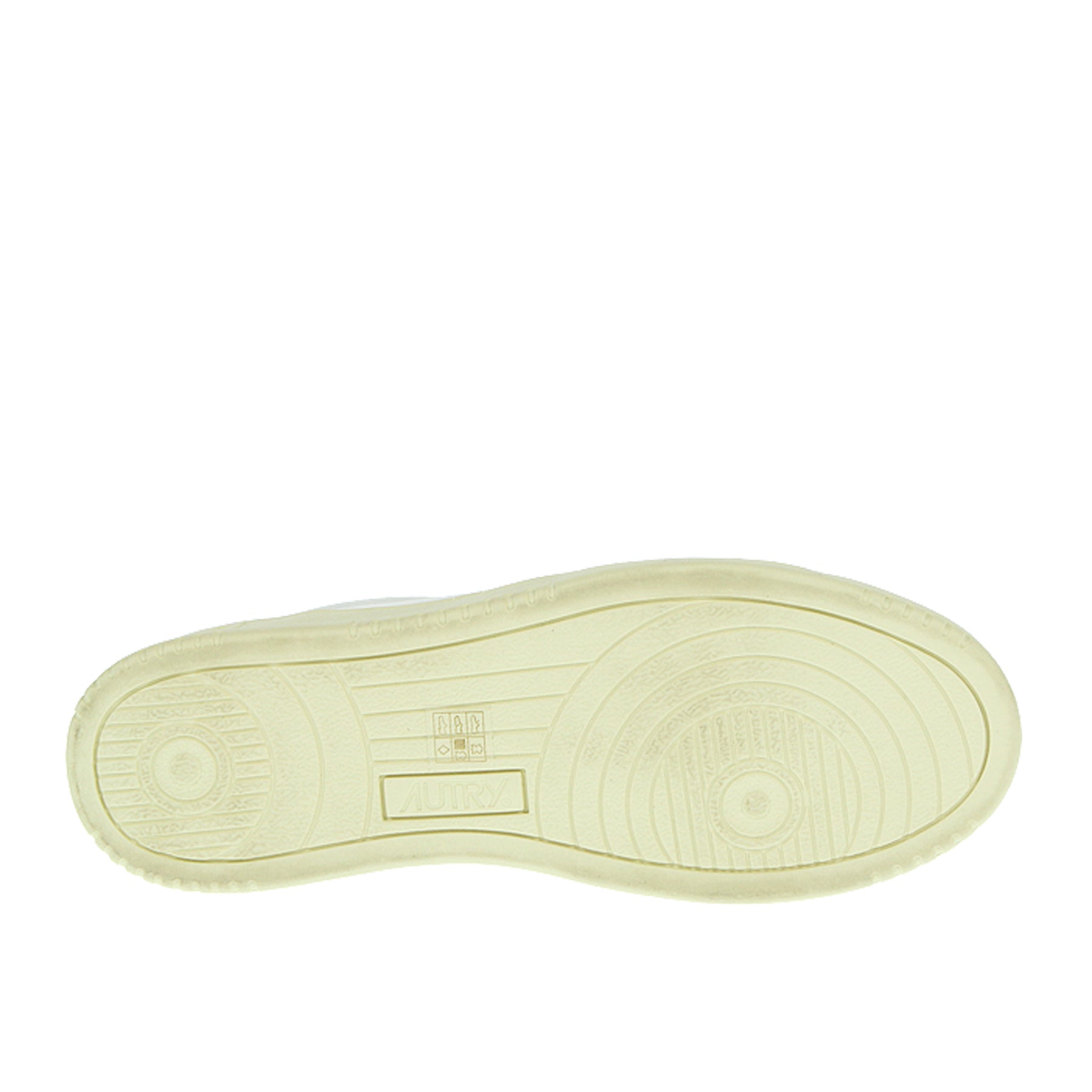 Autry Medalist sneakers in white leather with dark green heel tab, laces, rubber sole, side logo