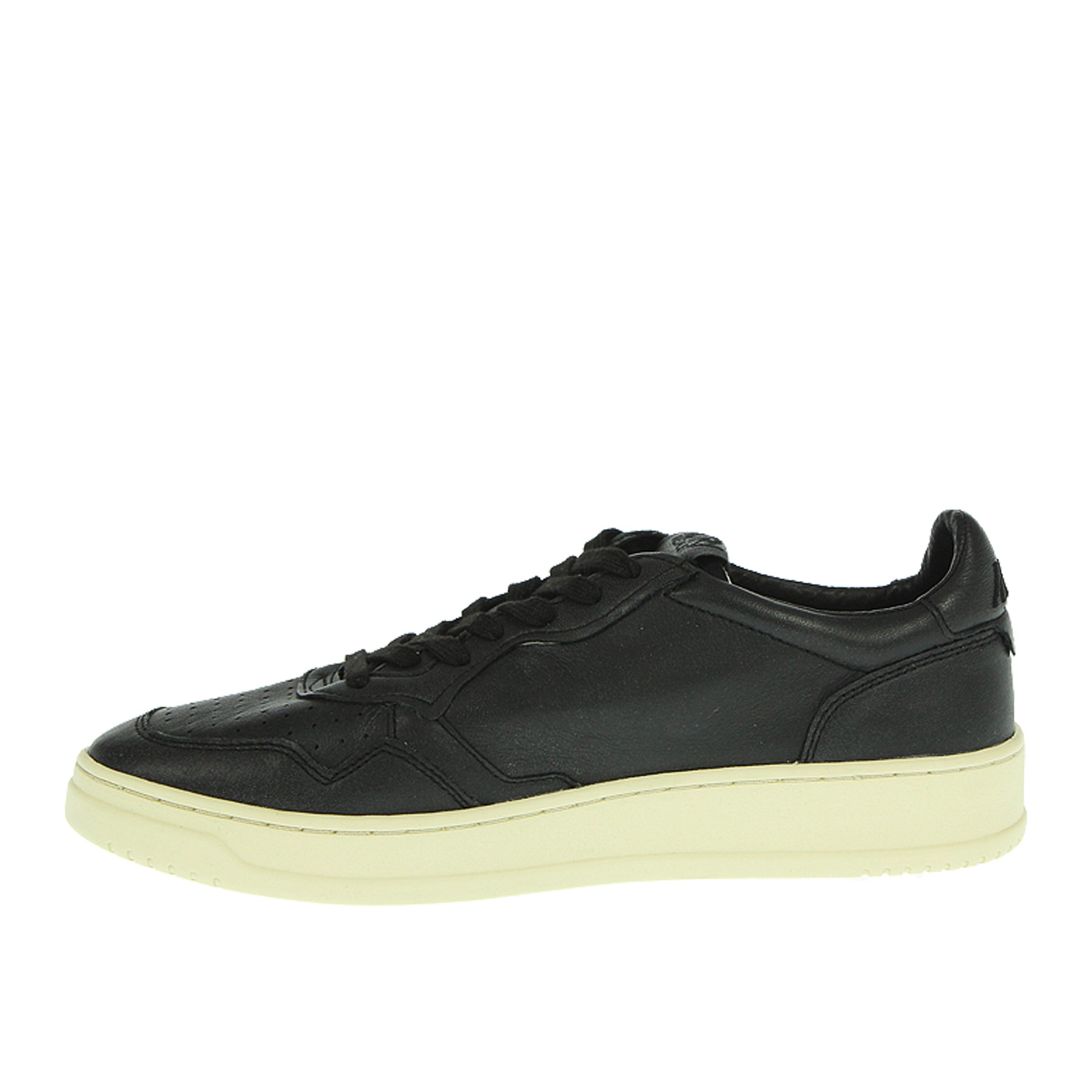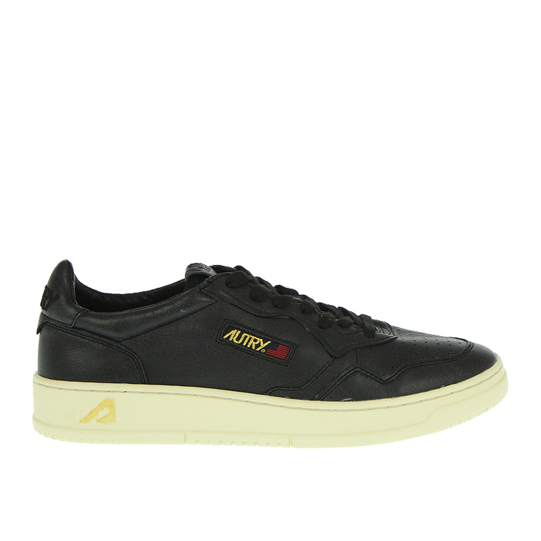 Autry Medalist sneakers in leather, all black, with laces, rubber sole, gold side logo