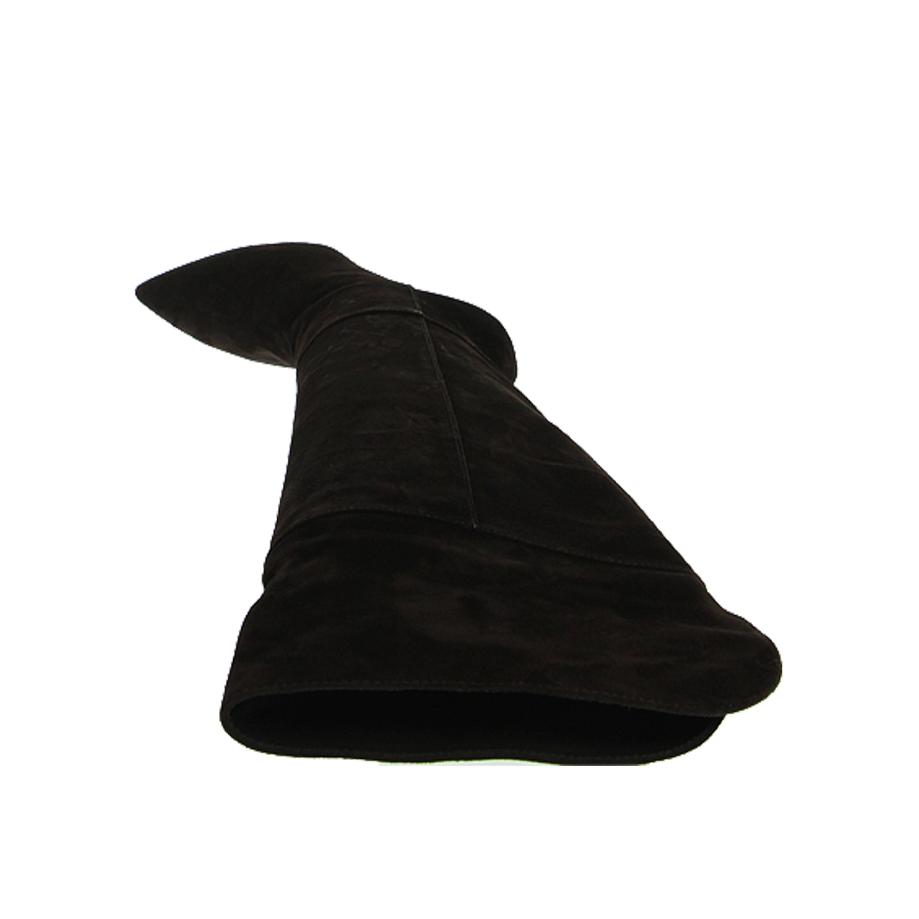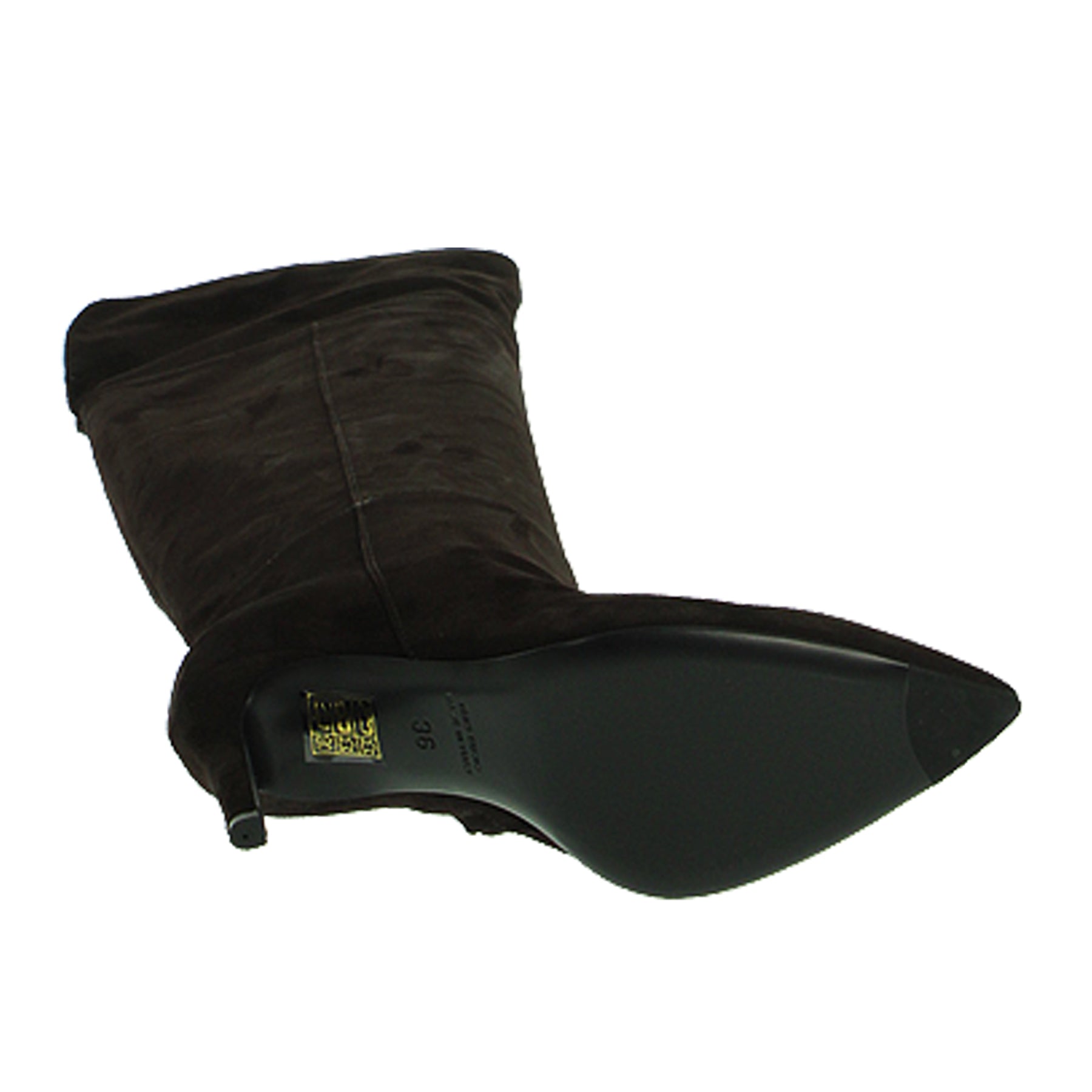 Stivale Via Roma 15, in camoscio, marrone testa di moro, con gambale altro, a punta, con tacco a spillo, altezza tacco 8,5 cm, suola in cuoio, zip laterale