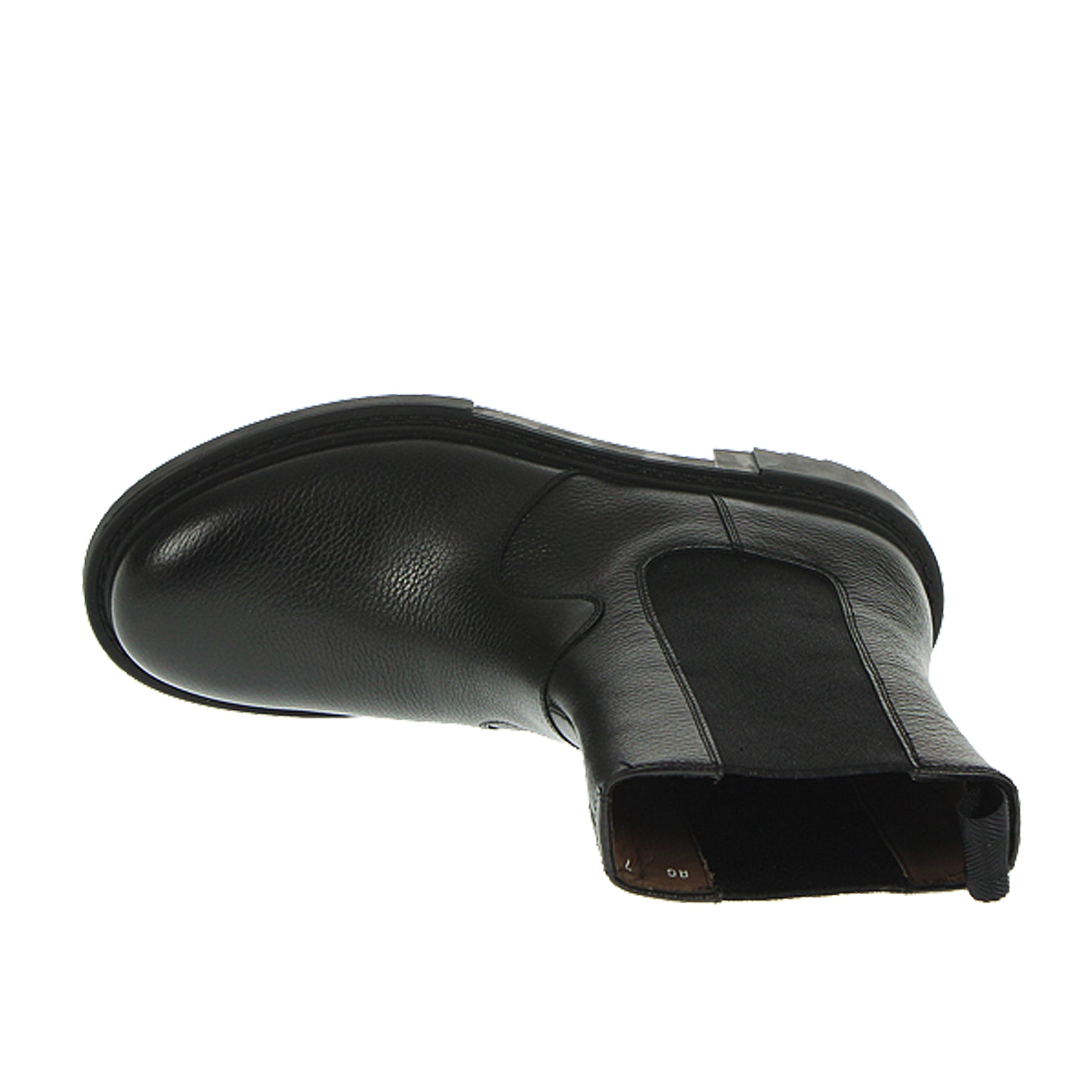 Ferragamo ankle boot, in pockmarked leather, black, square toe, stretch fabric inserts, rubber sole