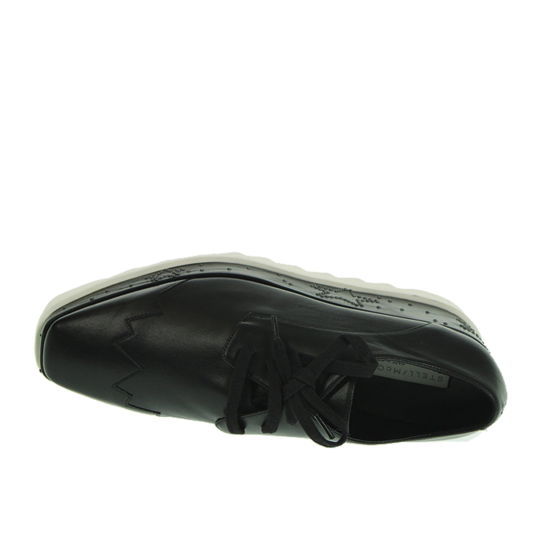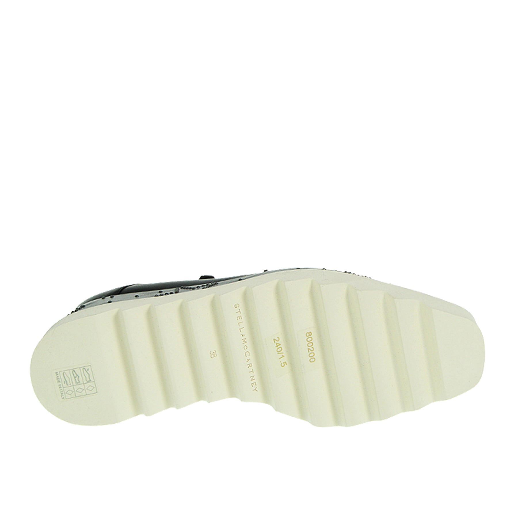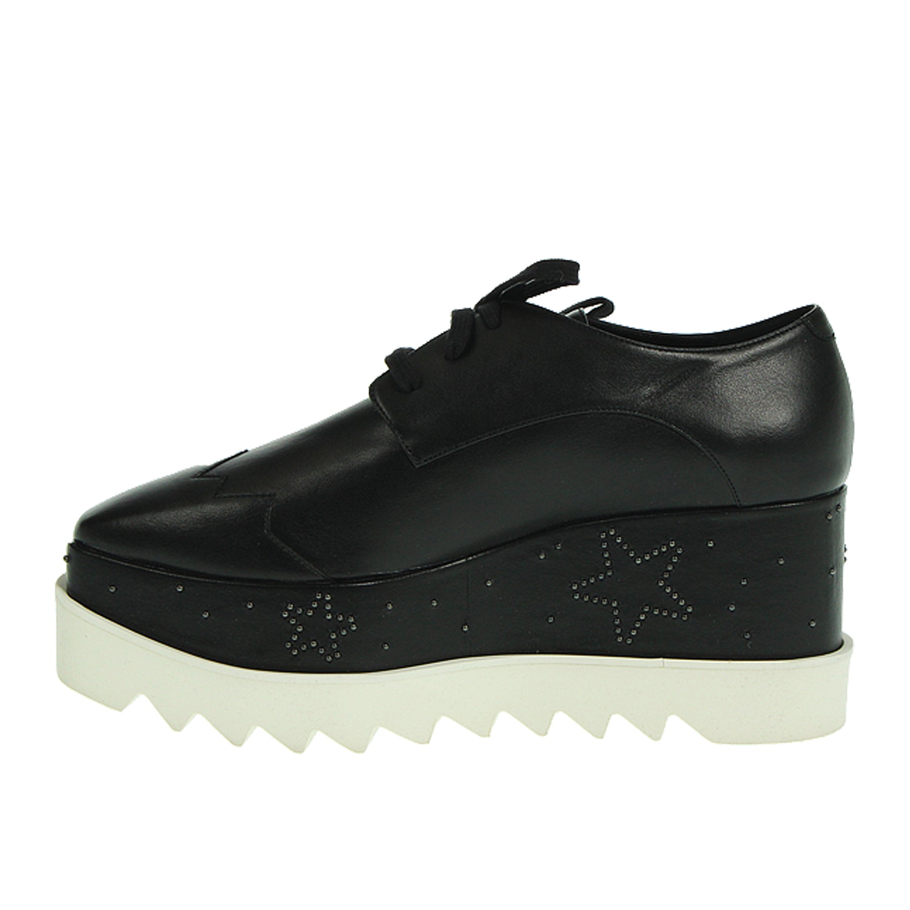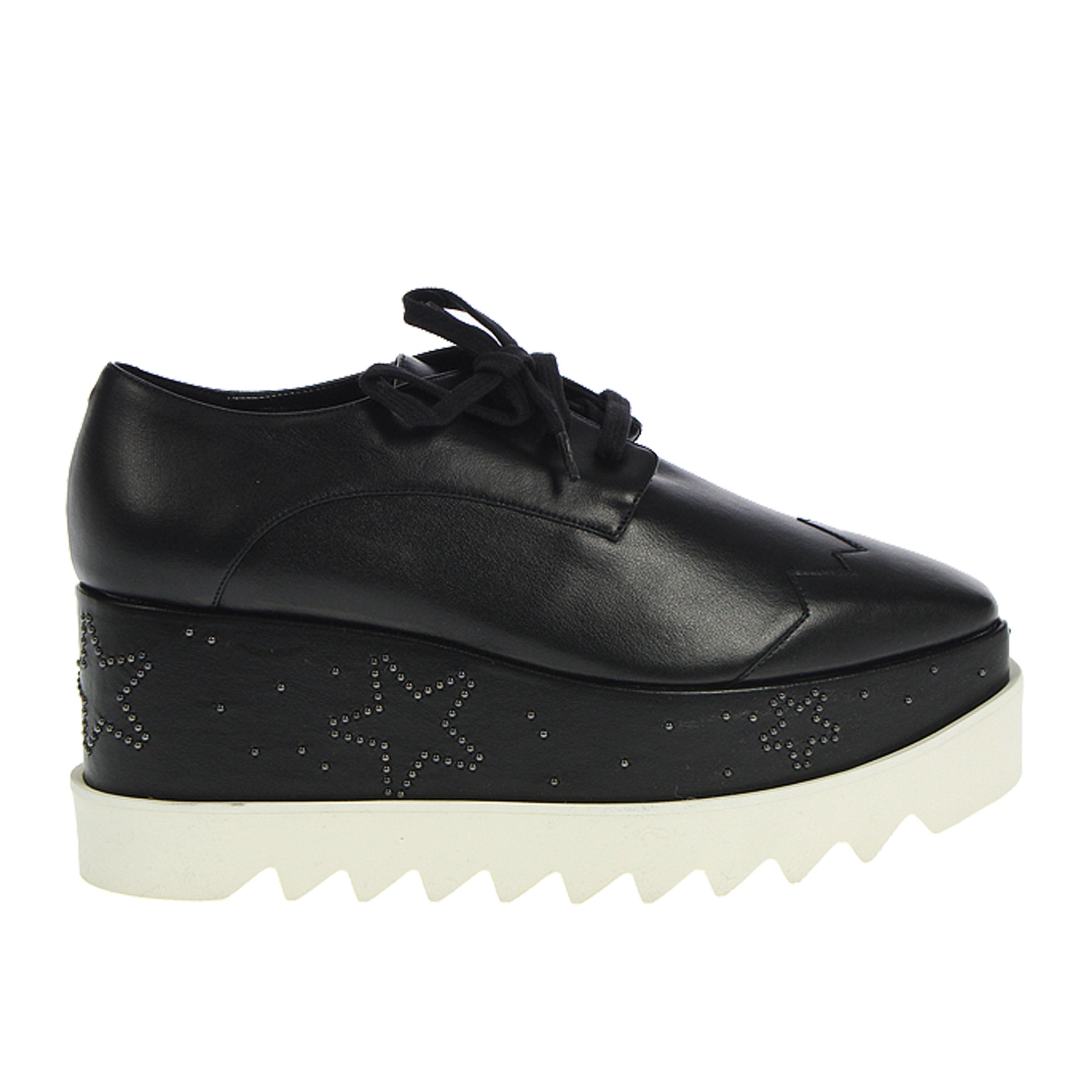 Stringata con zeppa Stella McCartney, modello Elyse, in ecopelle, colore nero, con borchiette applicate, con micro imperfezioni. Altezza zeppa 80 cm.