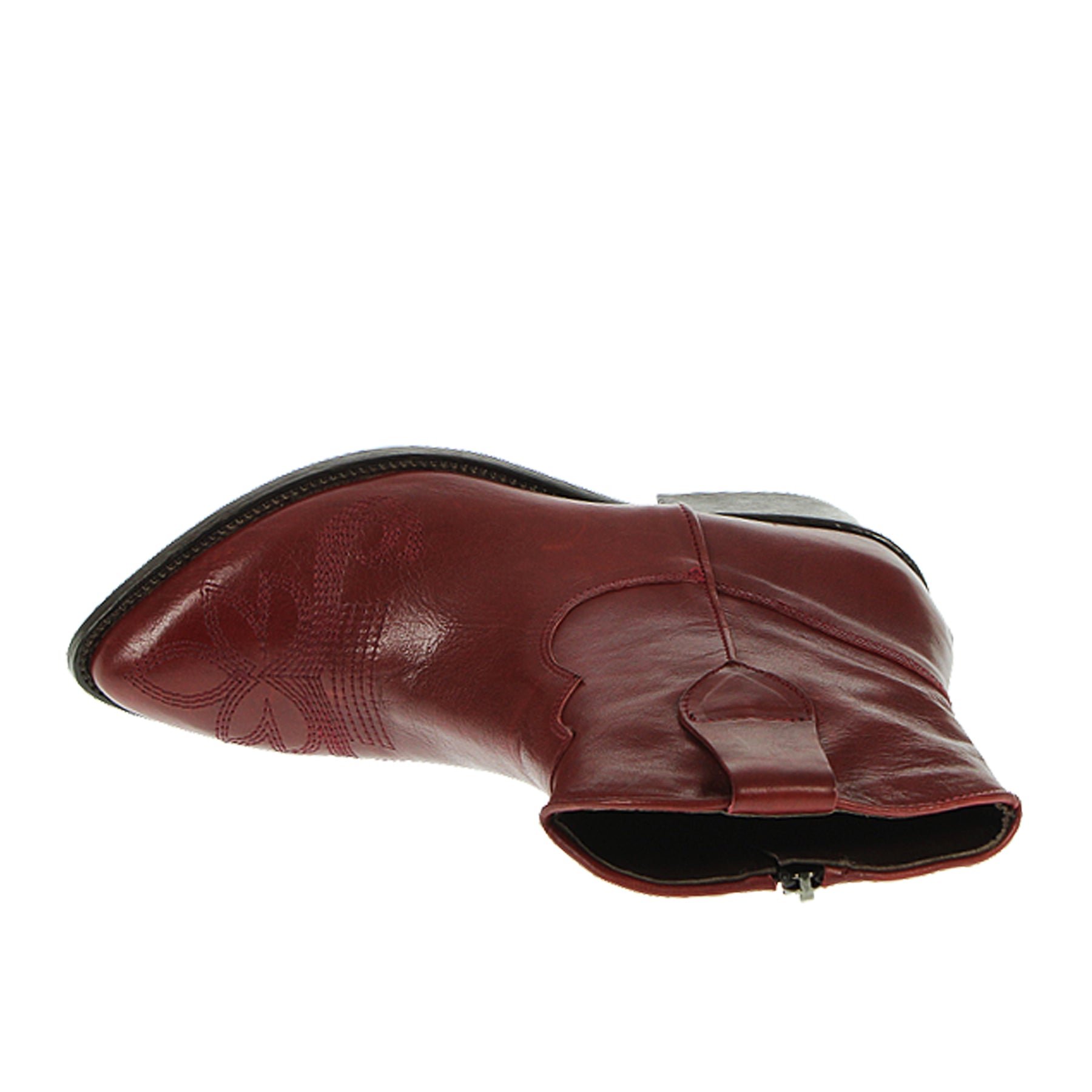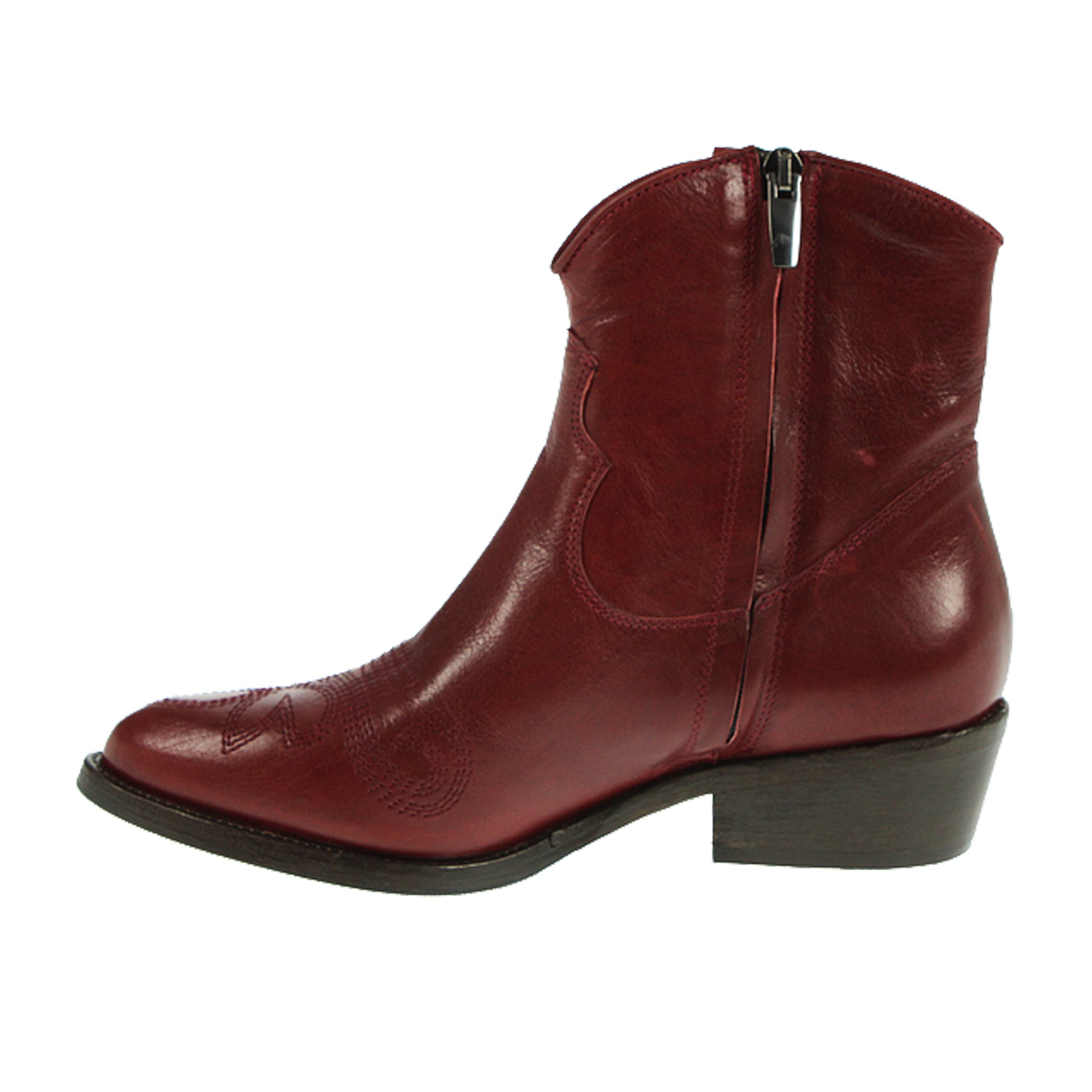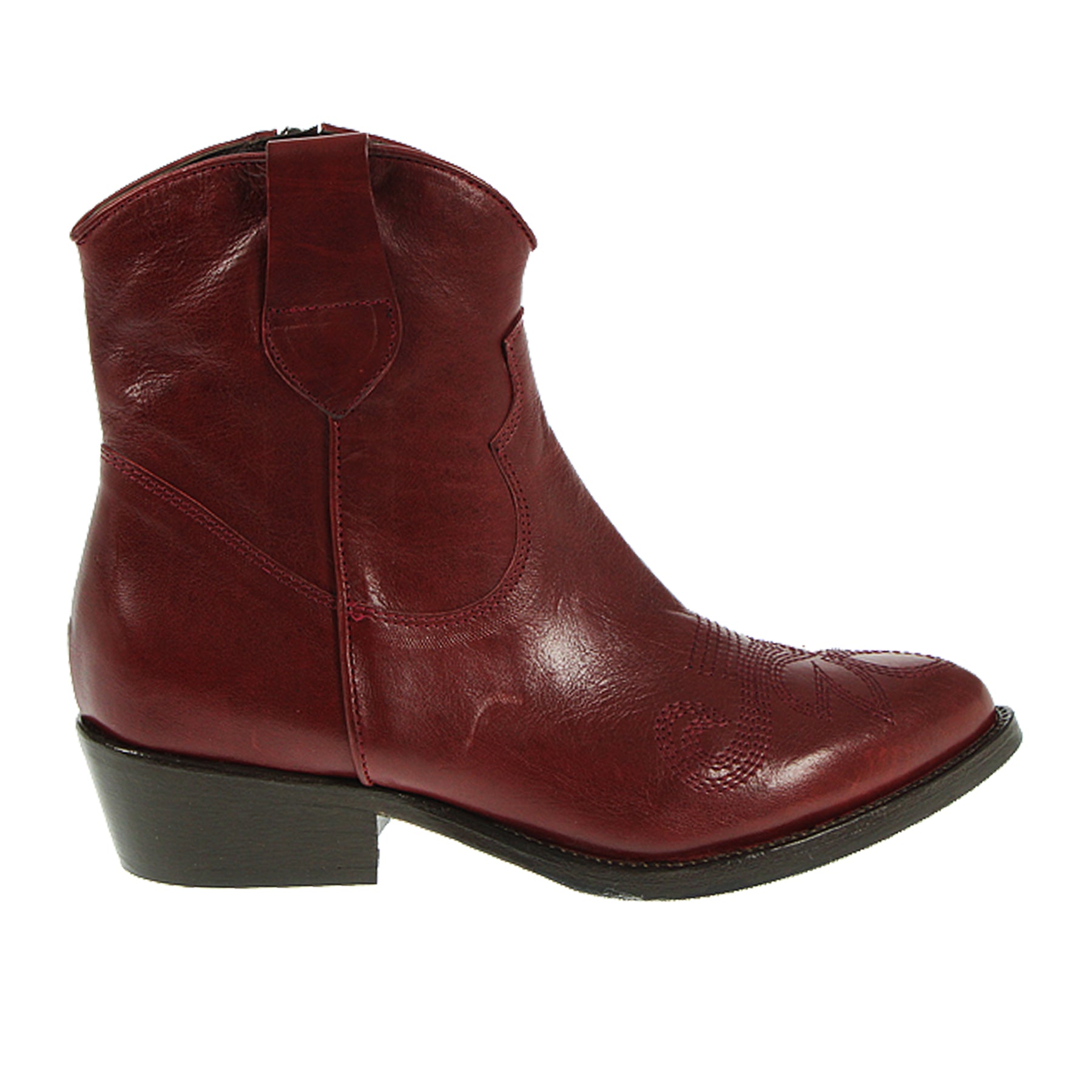 Duccio Del Duca ankle boot, in leather, dark red, with stitching, side zip, leather and rubber sole, 3.5 cm heel