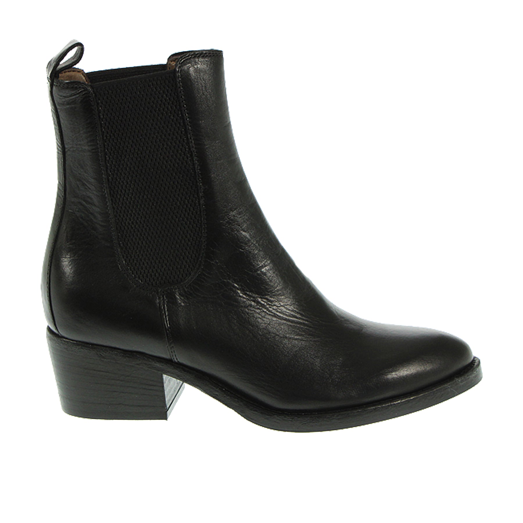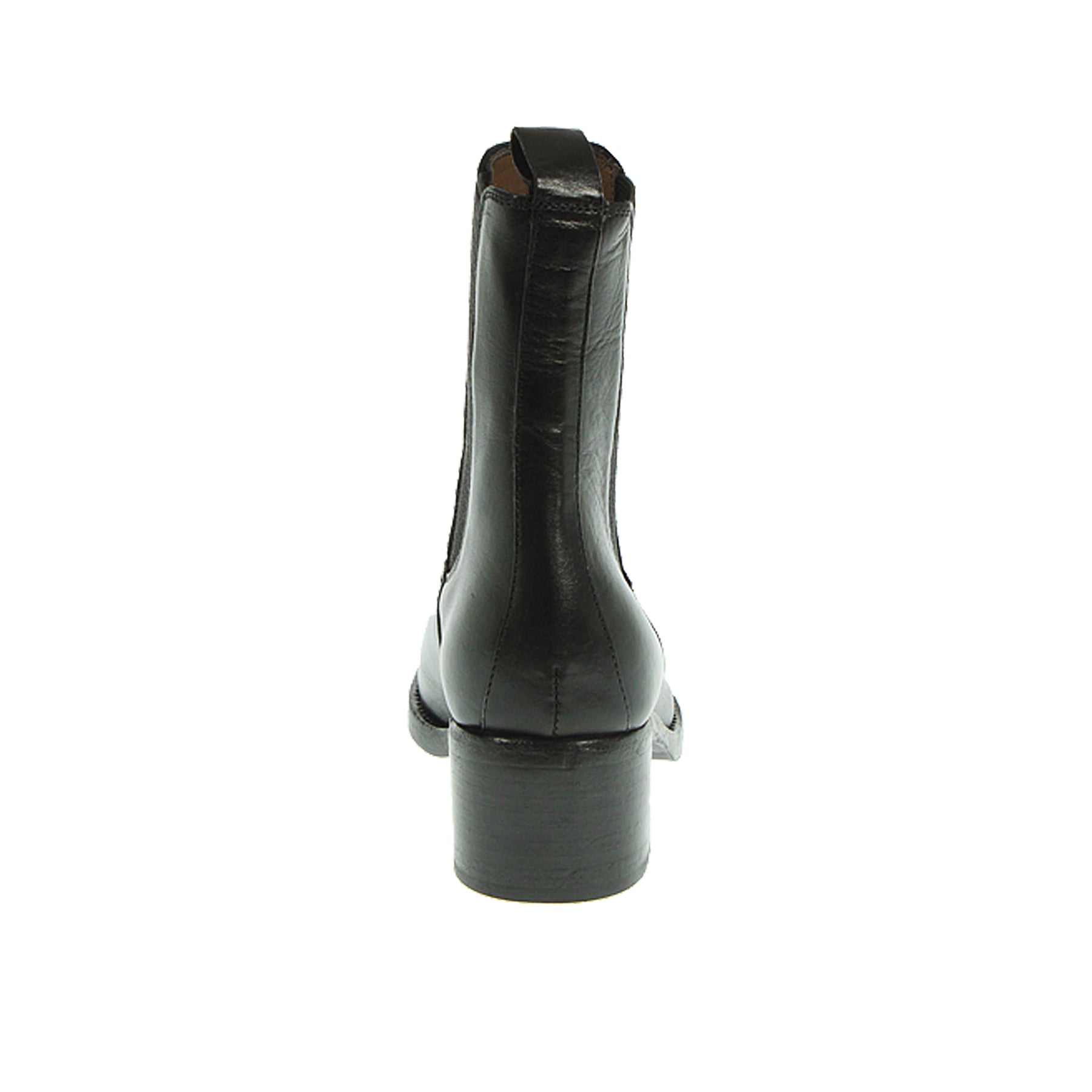 Duccio Del Duca ankle boot, in black leather, with elastic side bands, leather sole, 4 cm heel
