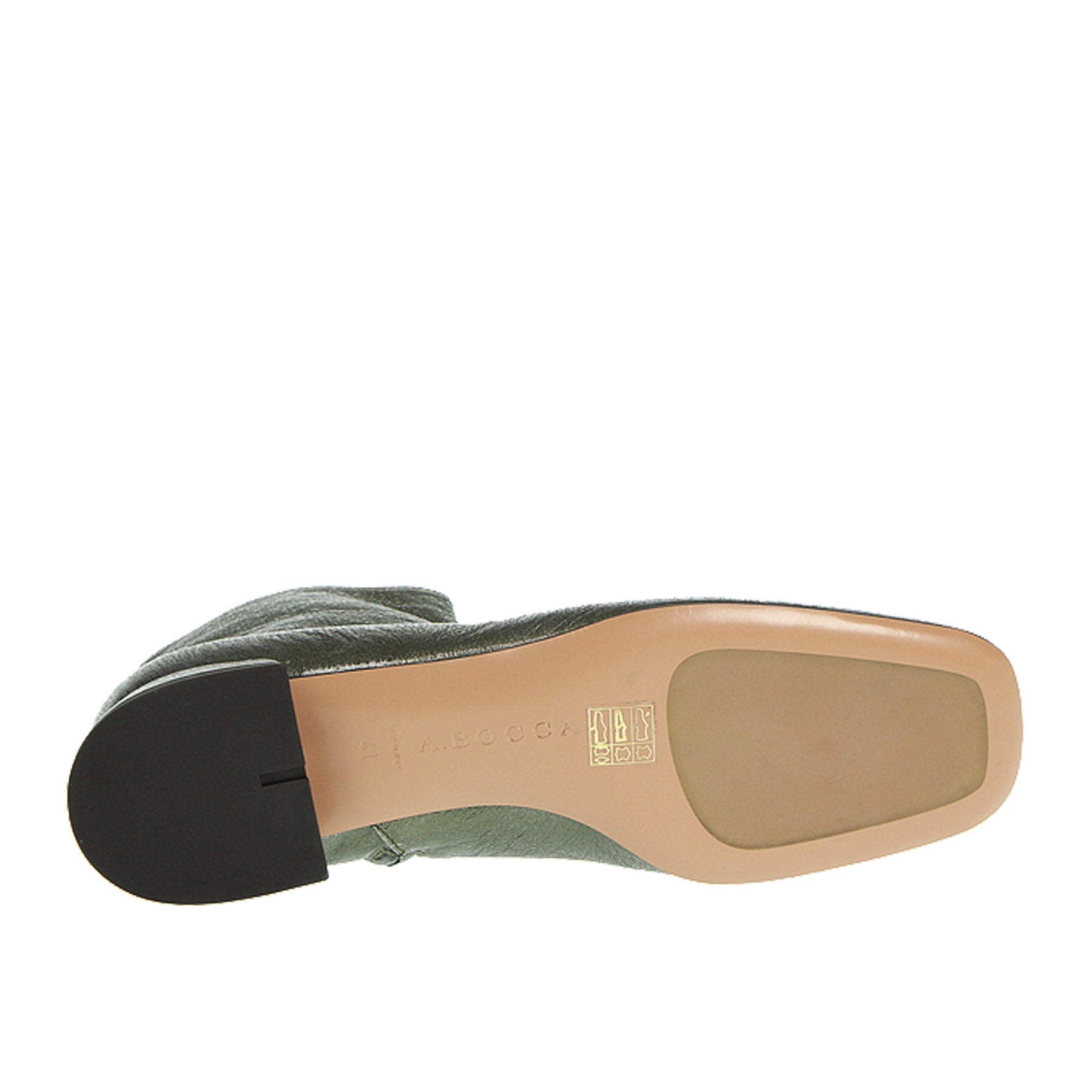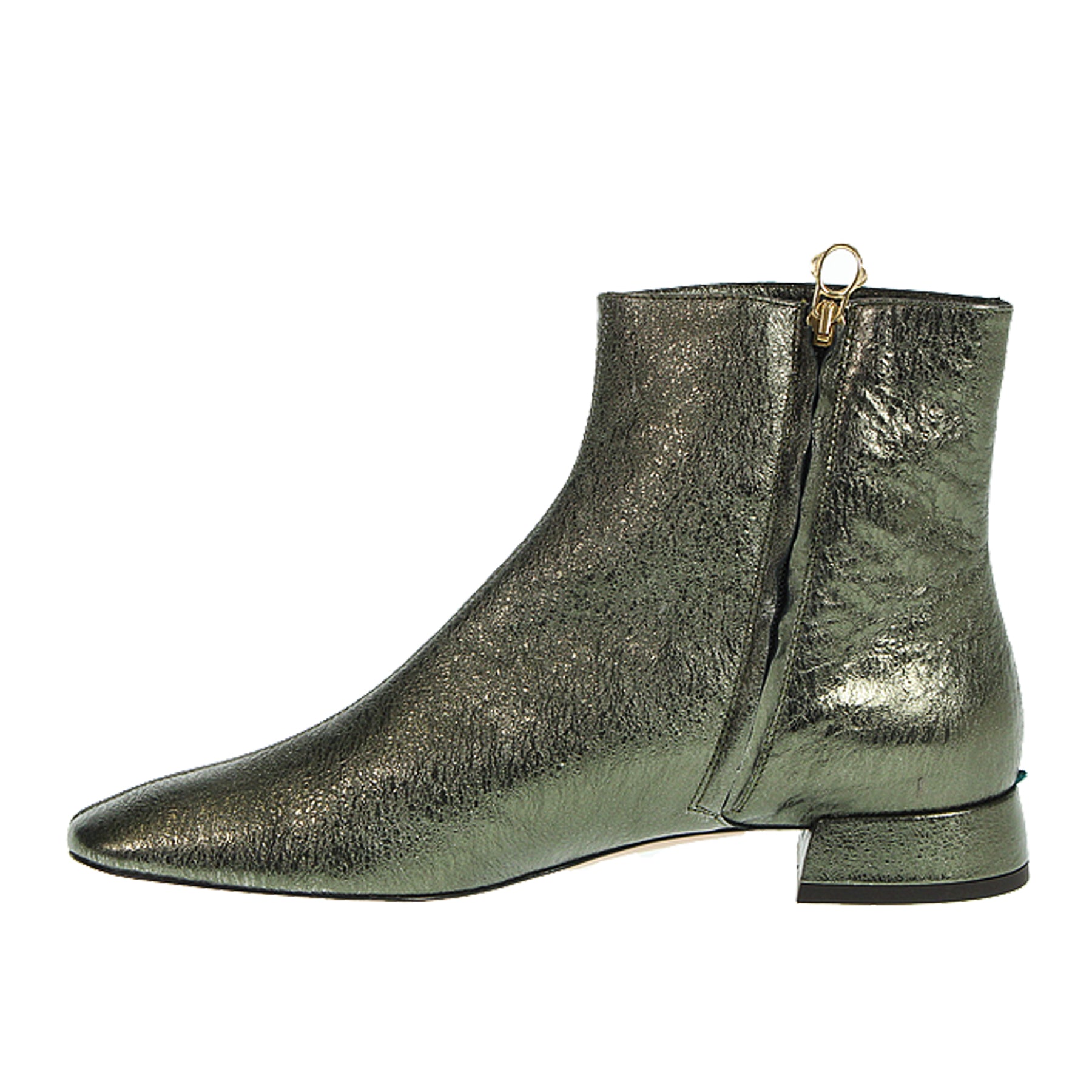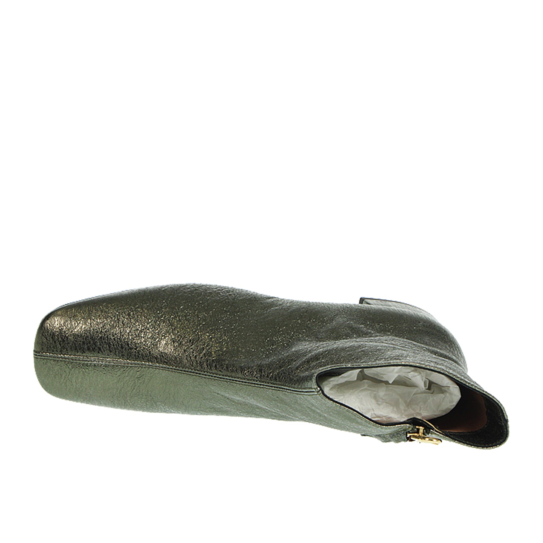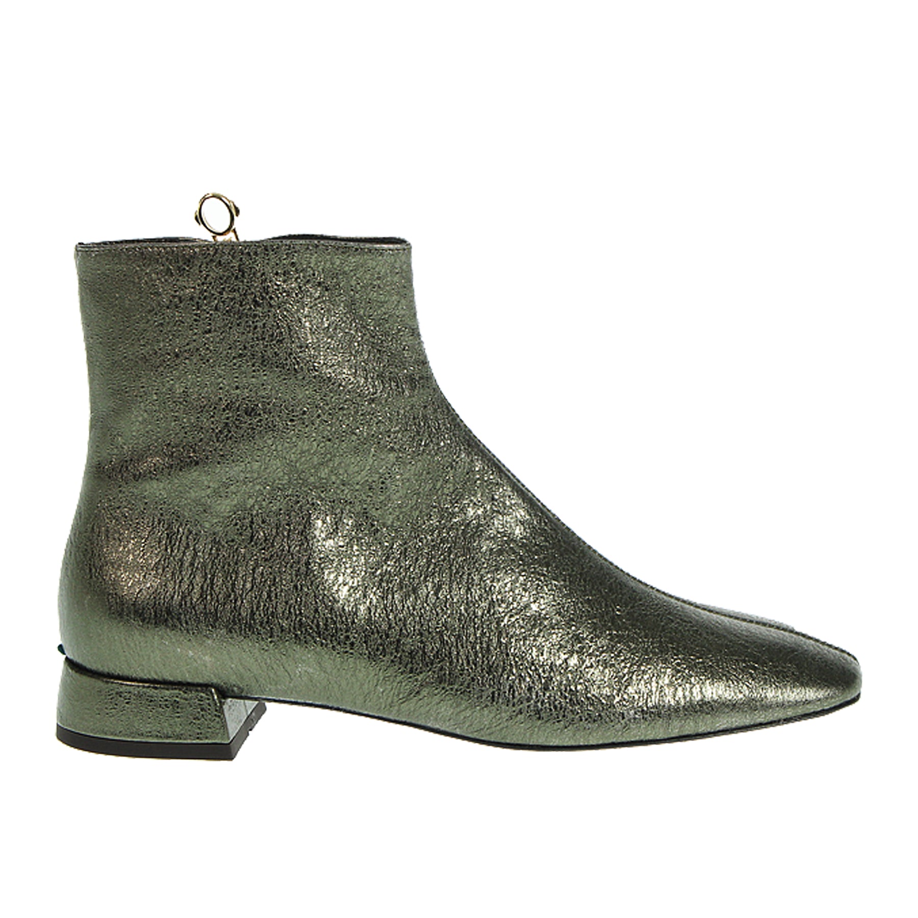Tronchetto A. Bocca, in pelle effetto stropicciato, color bronzo, con zip laterale, tacco 3 cm, suola in cuoio con inserto in gomma