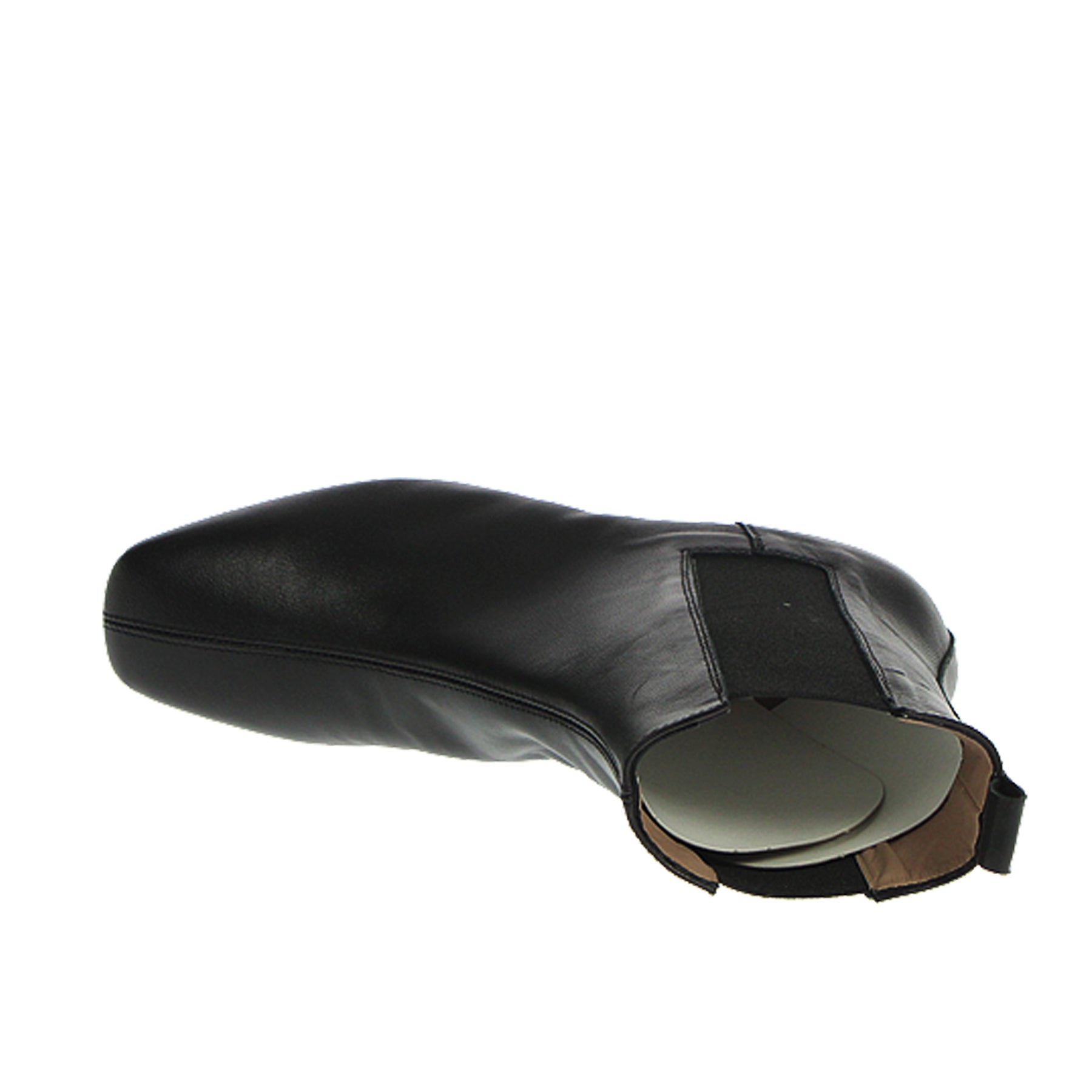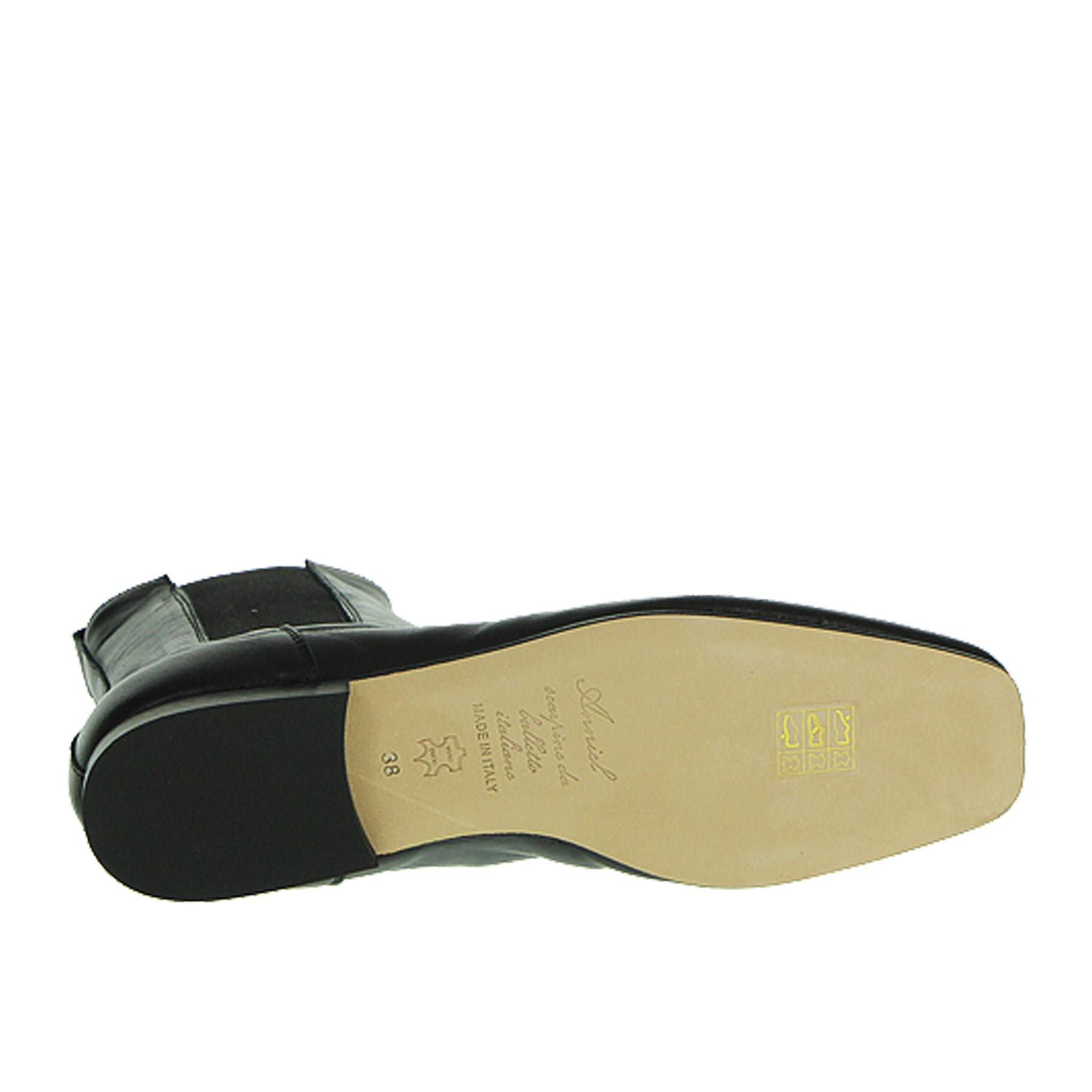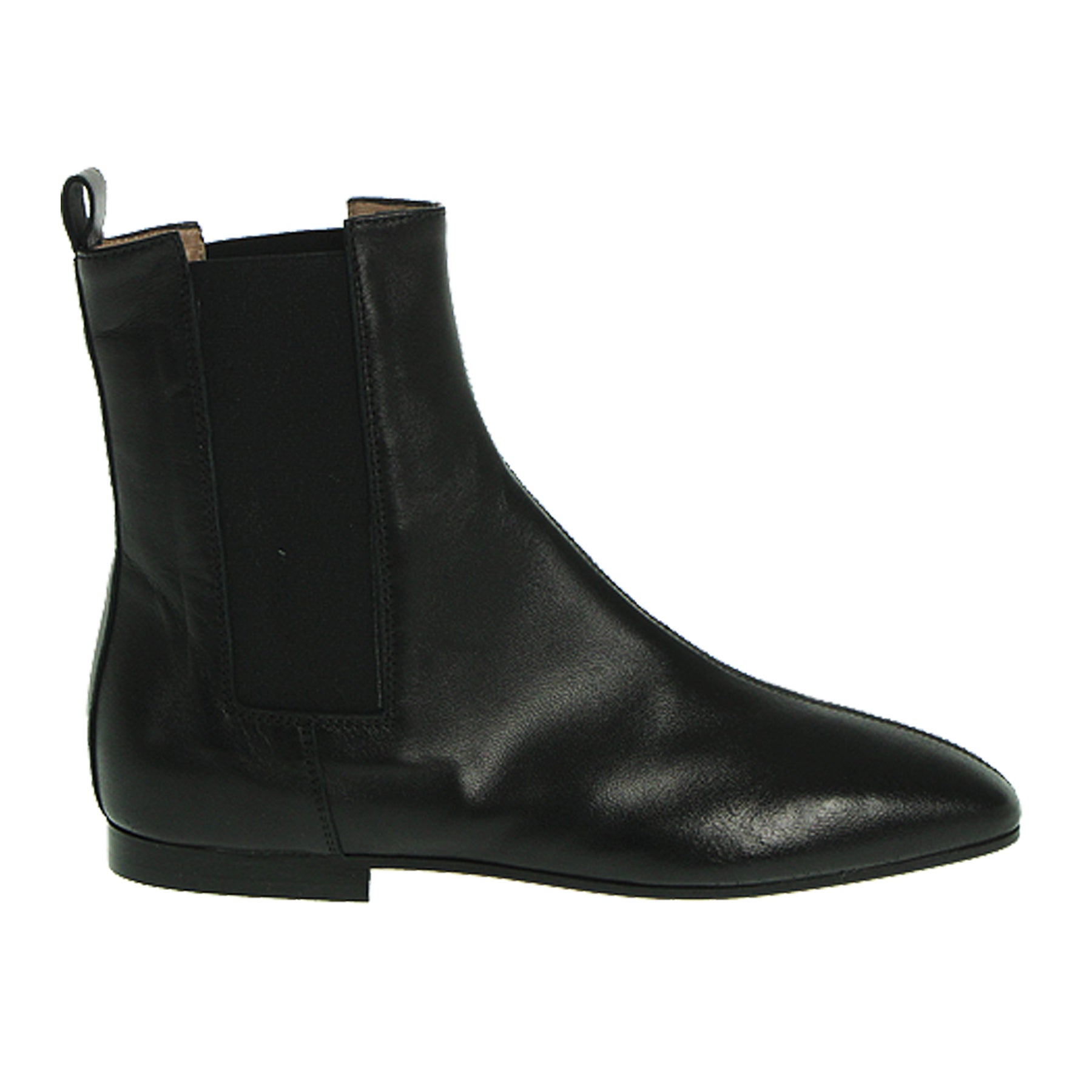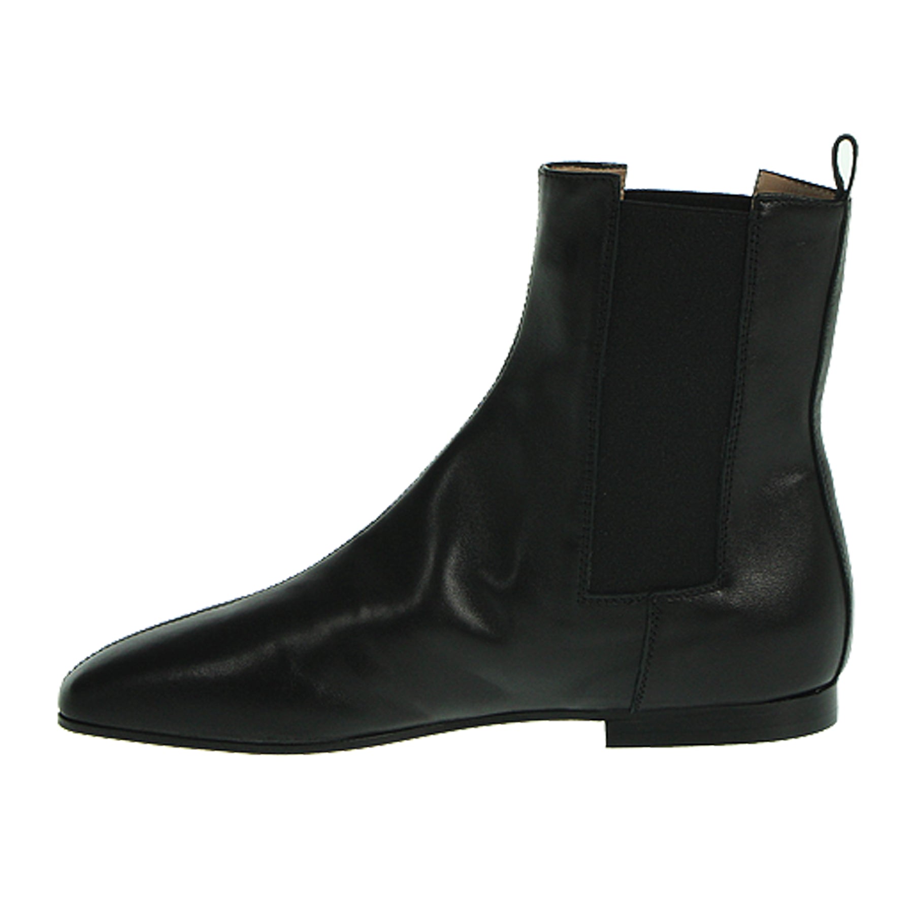 Tronchetto piatto Anniel, modello chelsea boot, in pelle nera, con punta squadrata, bande elastiche laterali, suola in cuoio