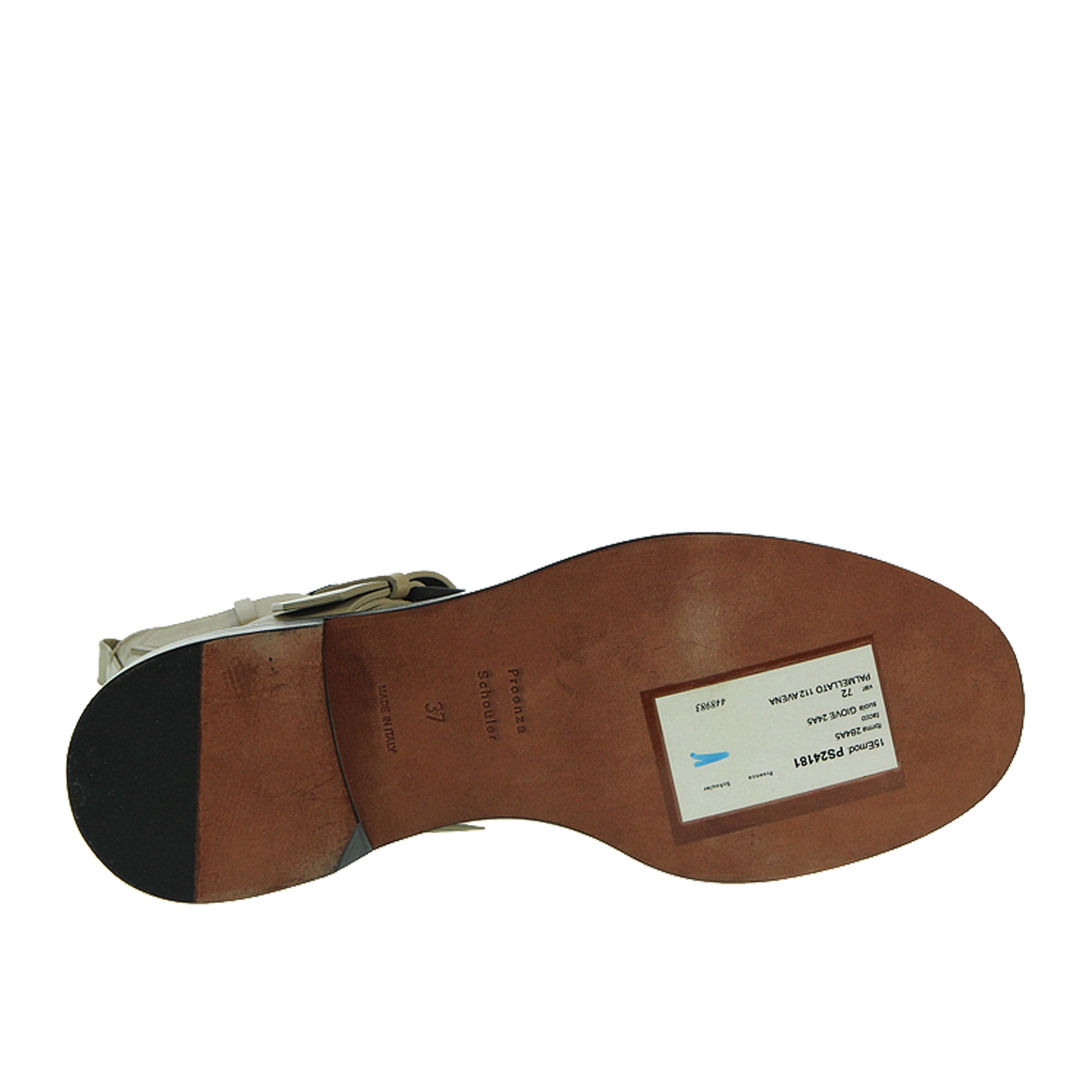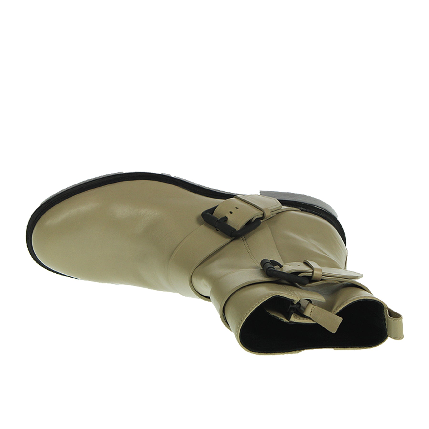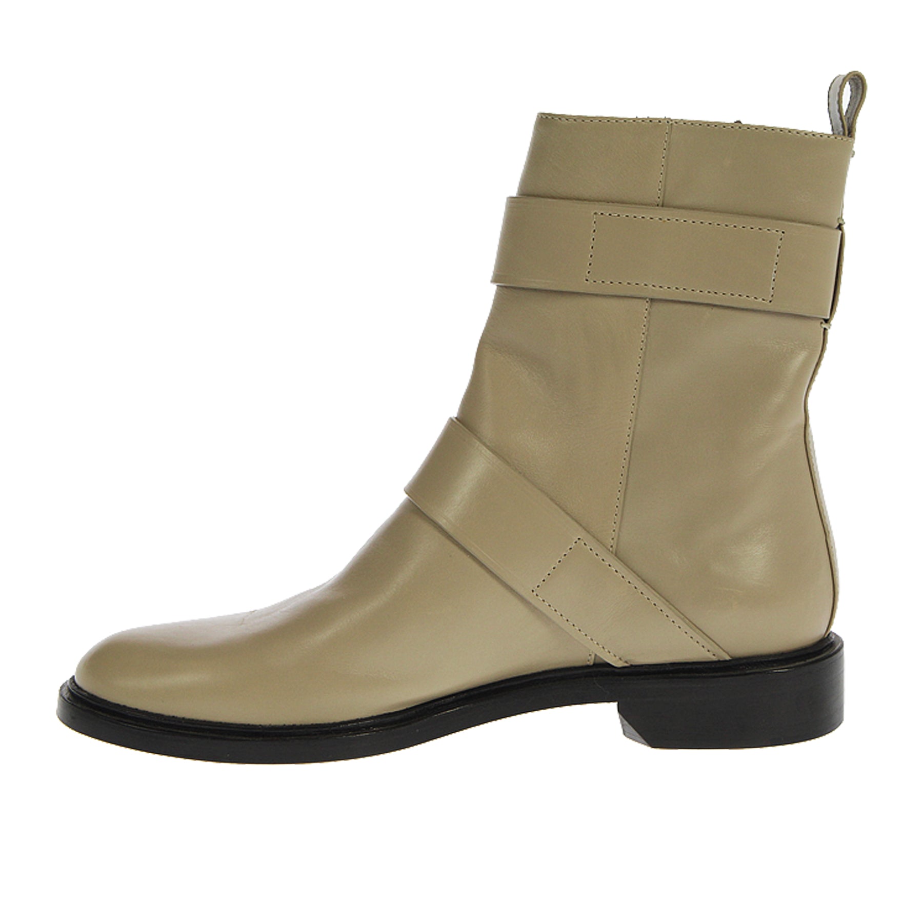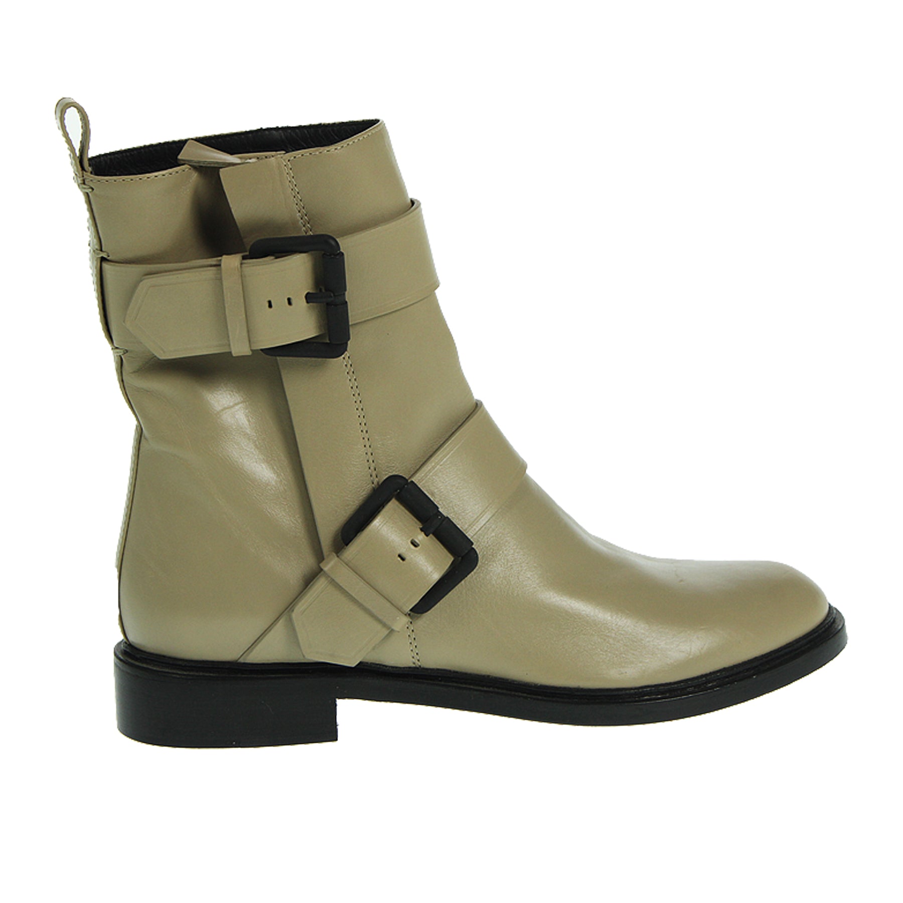 Tronchetto Proenza Schouler, in pelle, colore beige, con fibbie laterali, chiusura con zip laterale, suola in cuoio