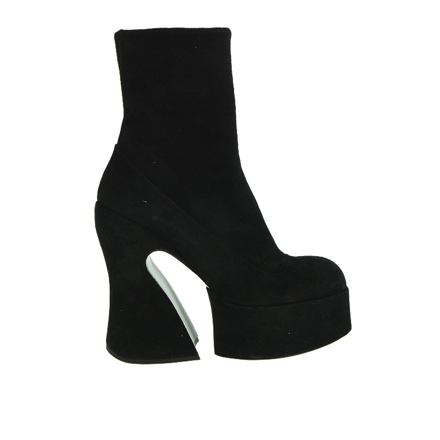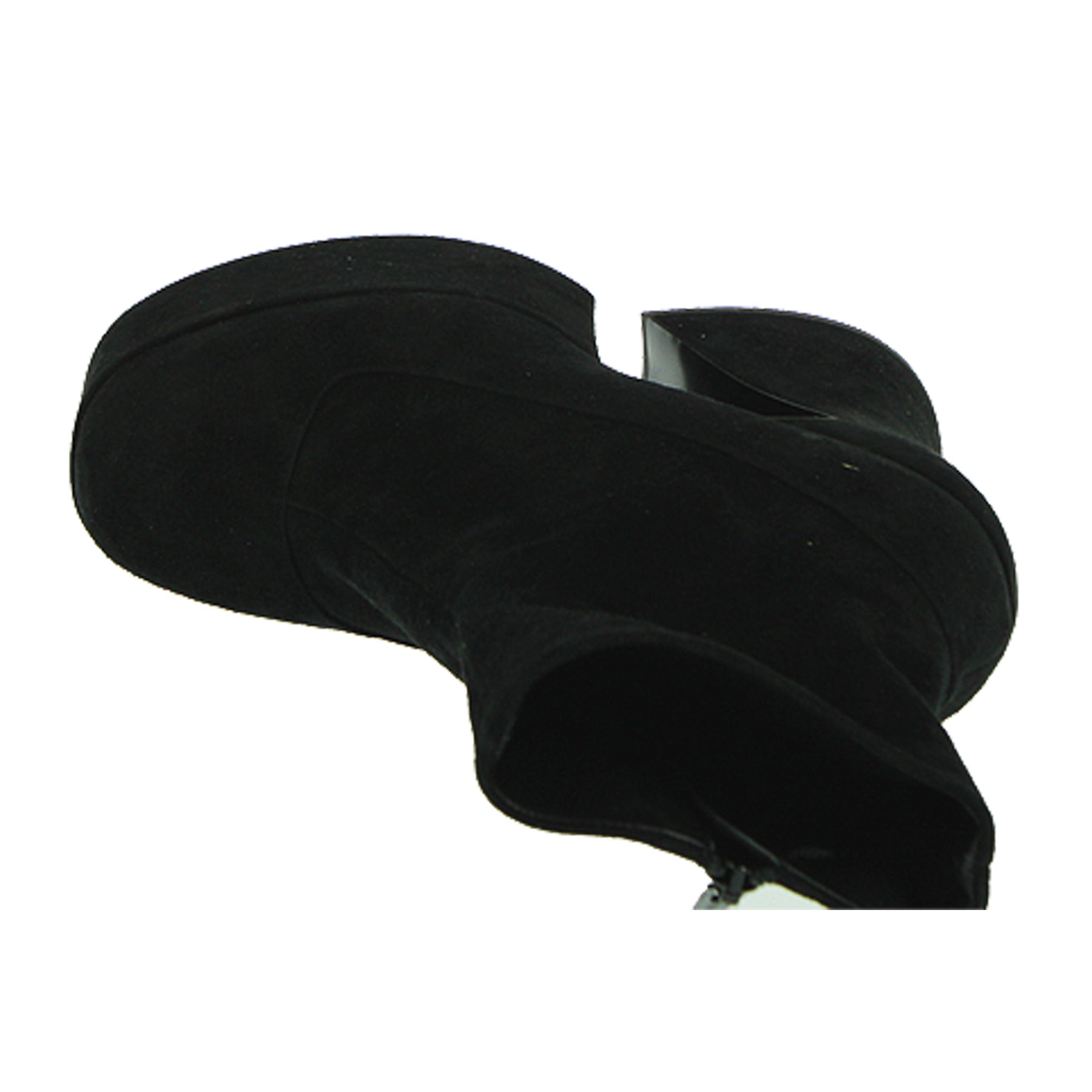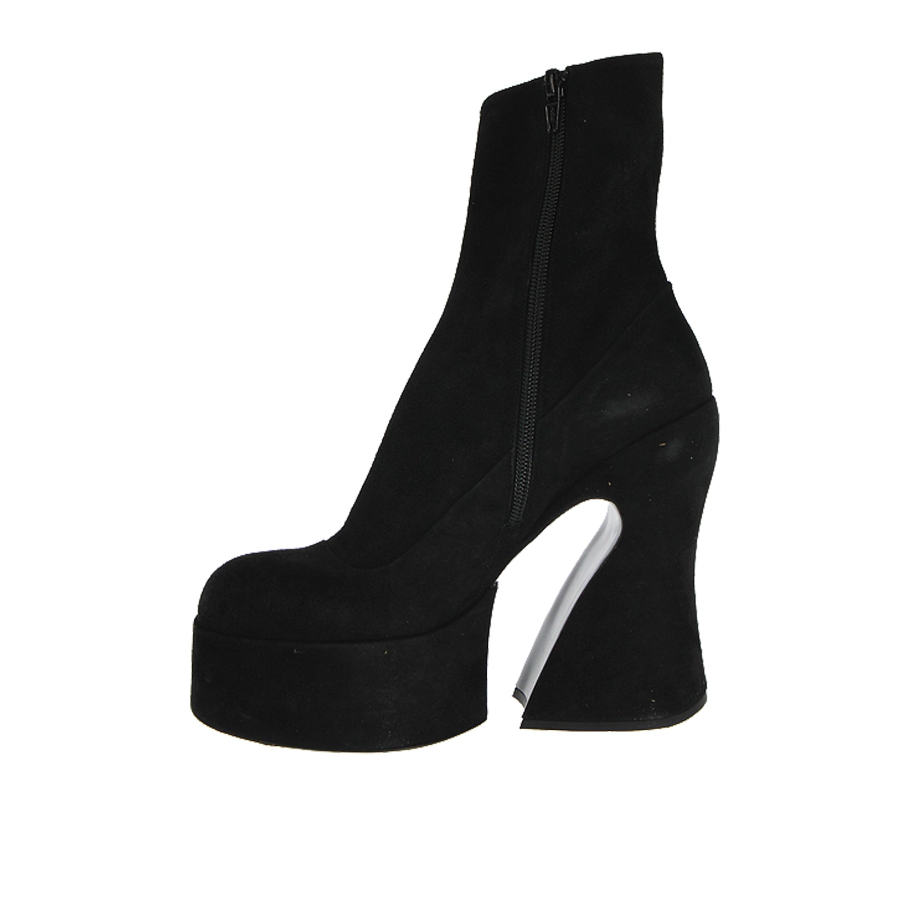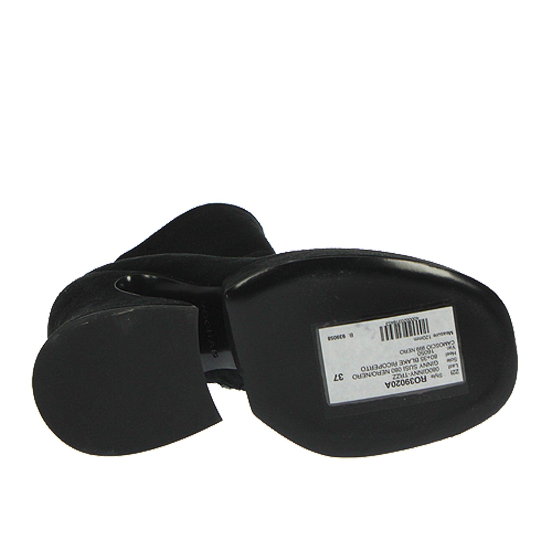 Tronchetto Rochas, in camoscio, colore nero, platform, con zip laterale, tacco sagomato, altezza tacco 13 cm, suola in cuoio