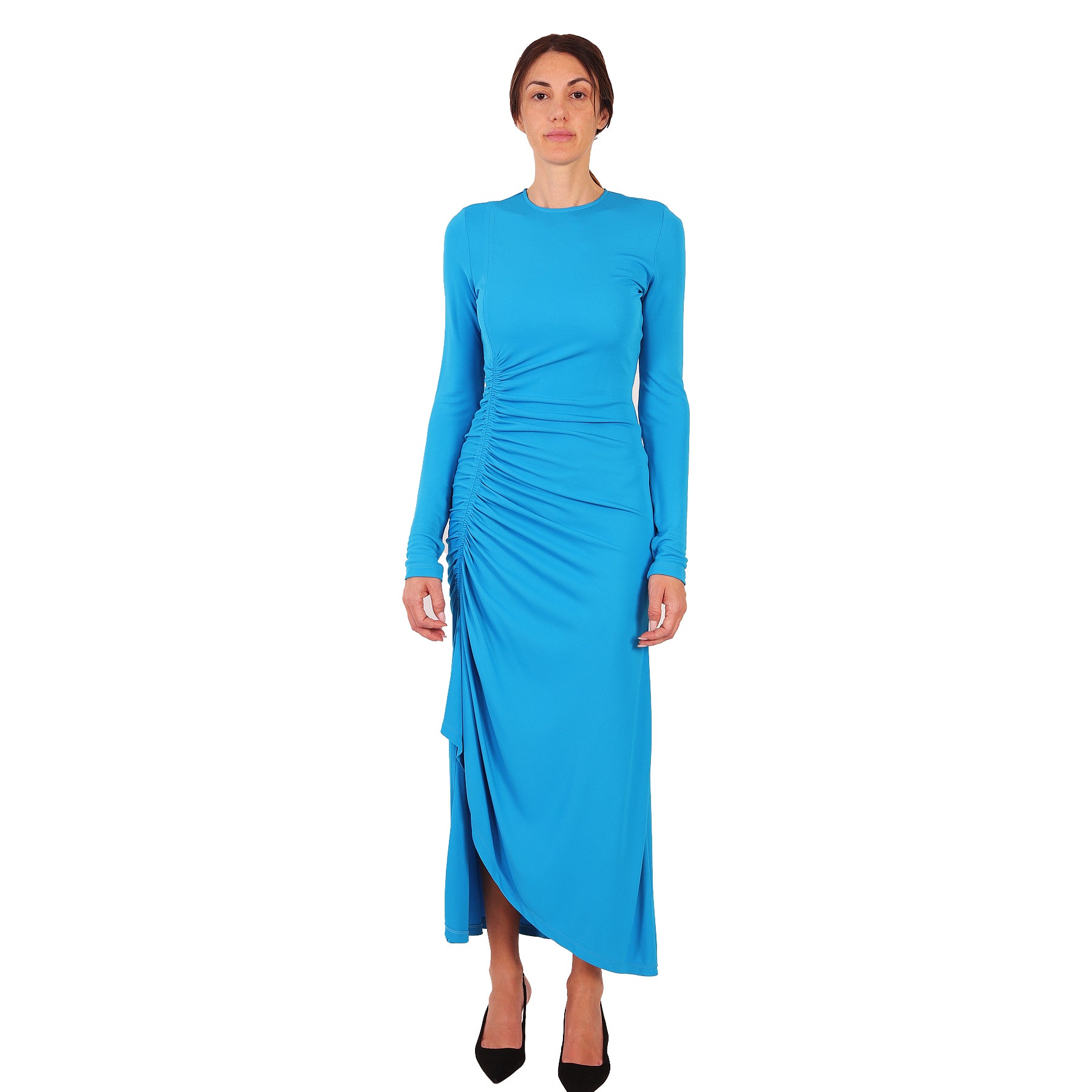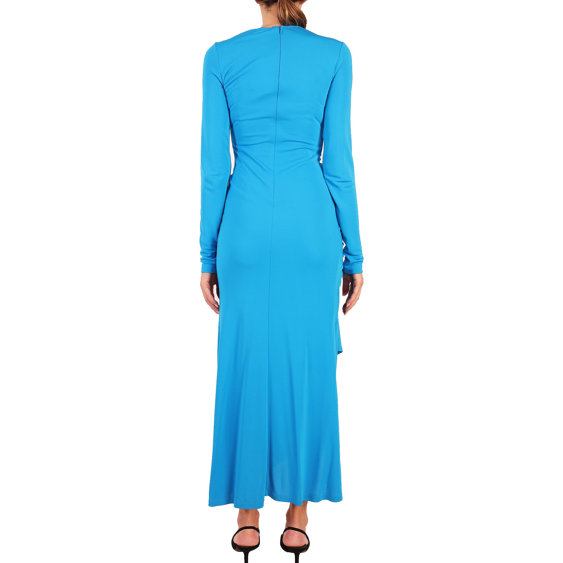 Abito Givenchy, in viscosa, colore azzurro, spacco laterale, scollo rotondo, chiusura con zip sulla schiena