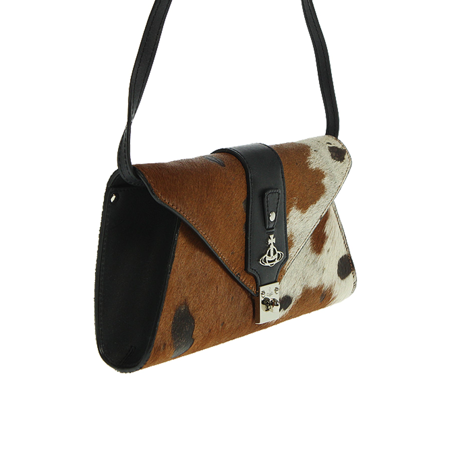 Borsa Vivienne Westwood, in cavallino, marrone e nera, chiusura con gancio, tracolla rimovibile, taschino interno