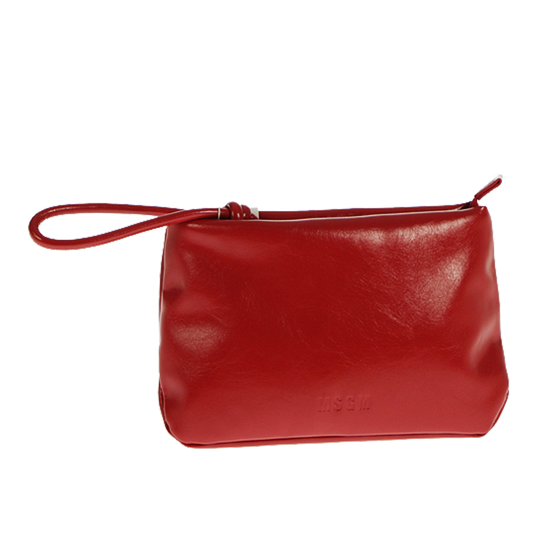 Borsa Msgm, modello puffy pouch, in ecopelle lucida, rossa, chiusura con zip, taschino interno, logo impresso sul davanti