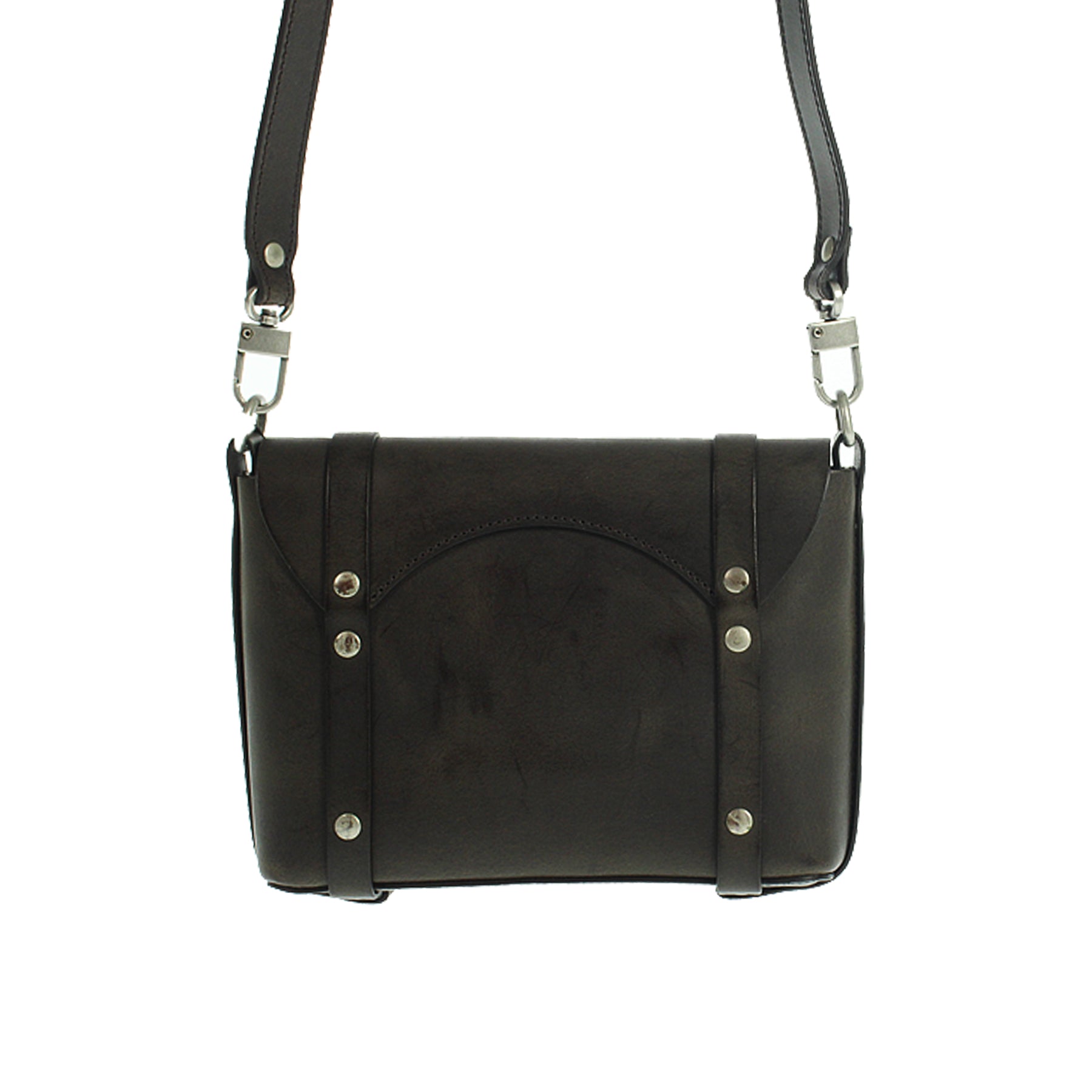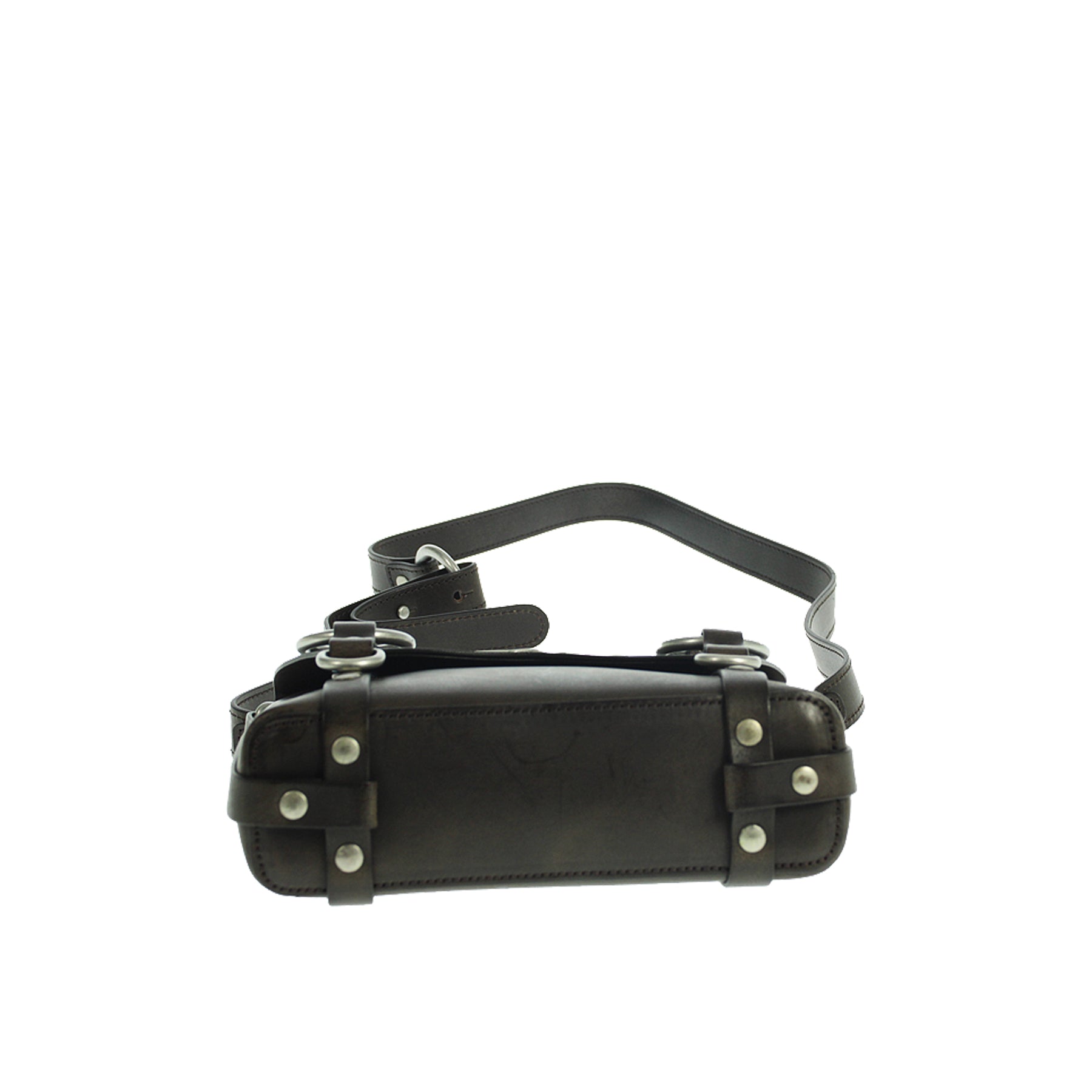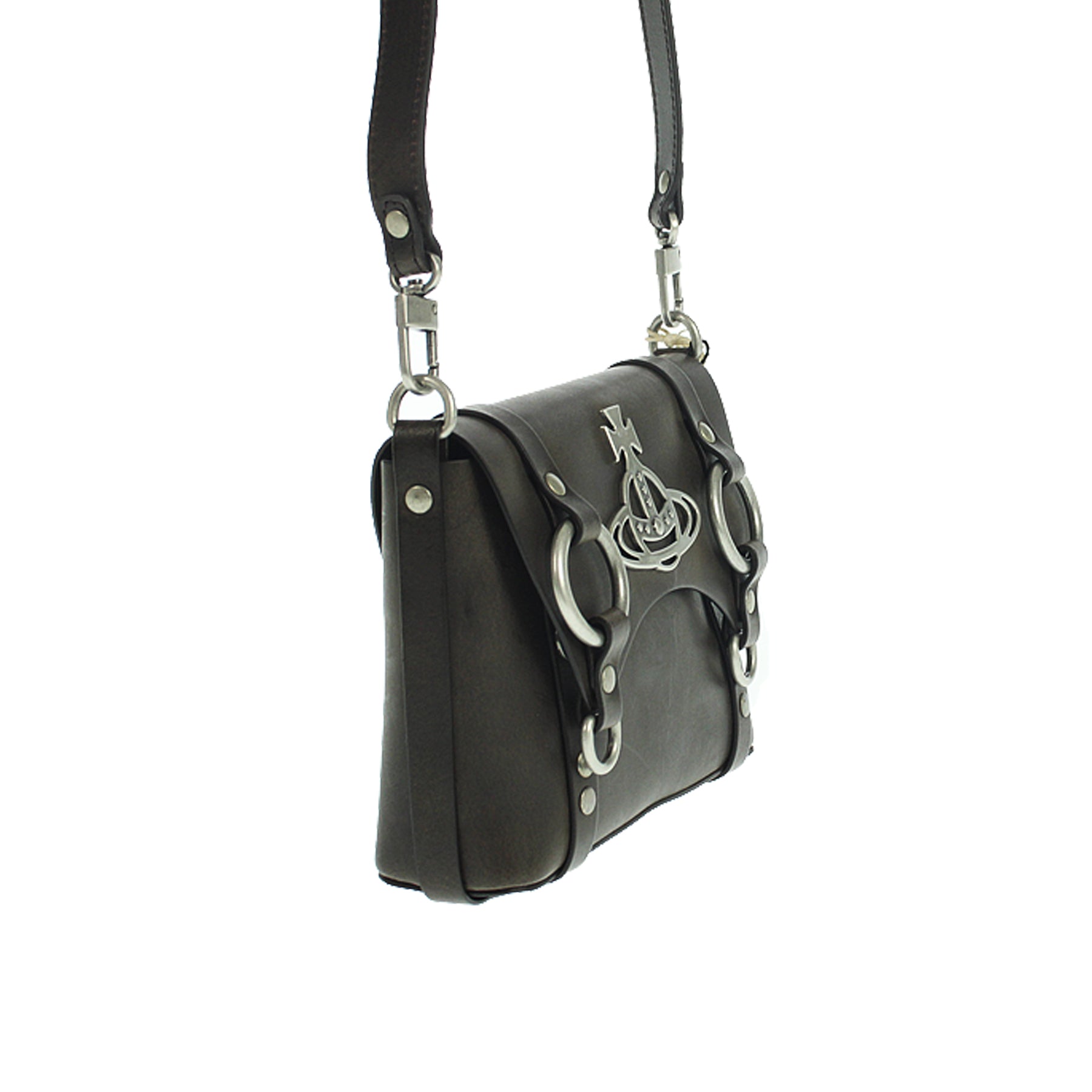 Borsa Vivienne Westwood, modello betty mini, in vernice nera, chiusura bottoni magnetici, doppi manici, taschino interno