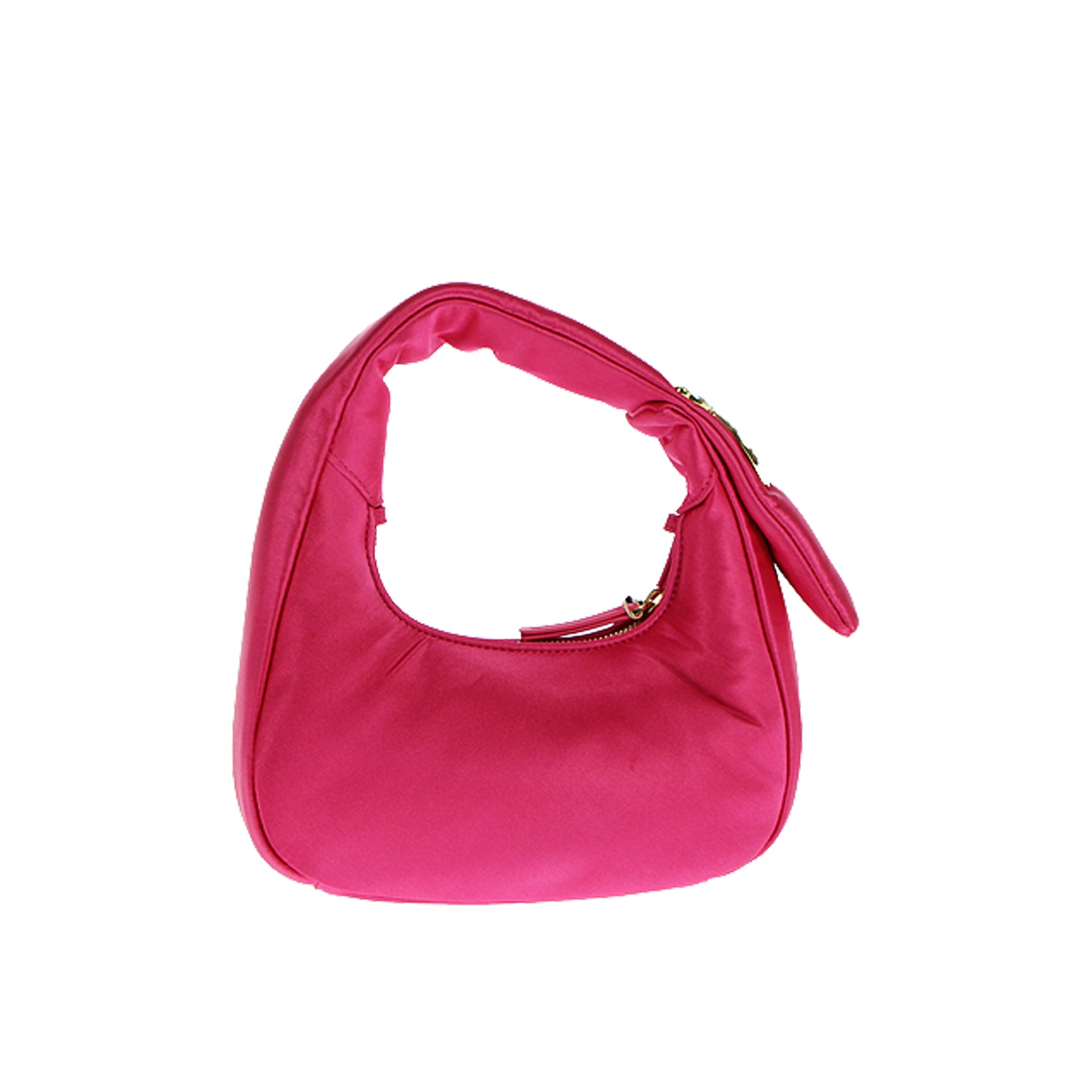 Borsa a mano Pinko, in tessuto, colore fucsia, a forma di mezzaluna, chiusura con cerniera, altezza cm 24, larghezza cm 24, profondità cm 9